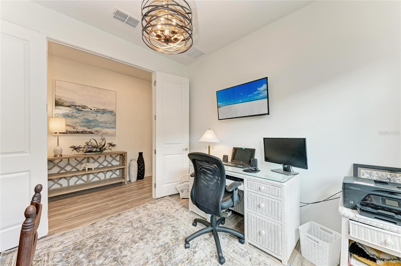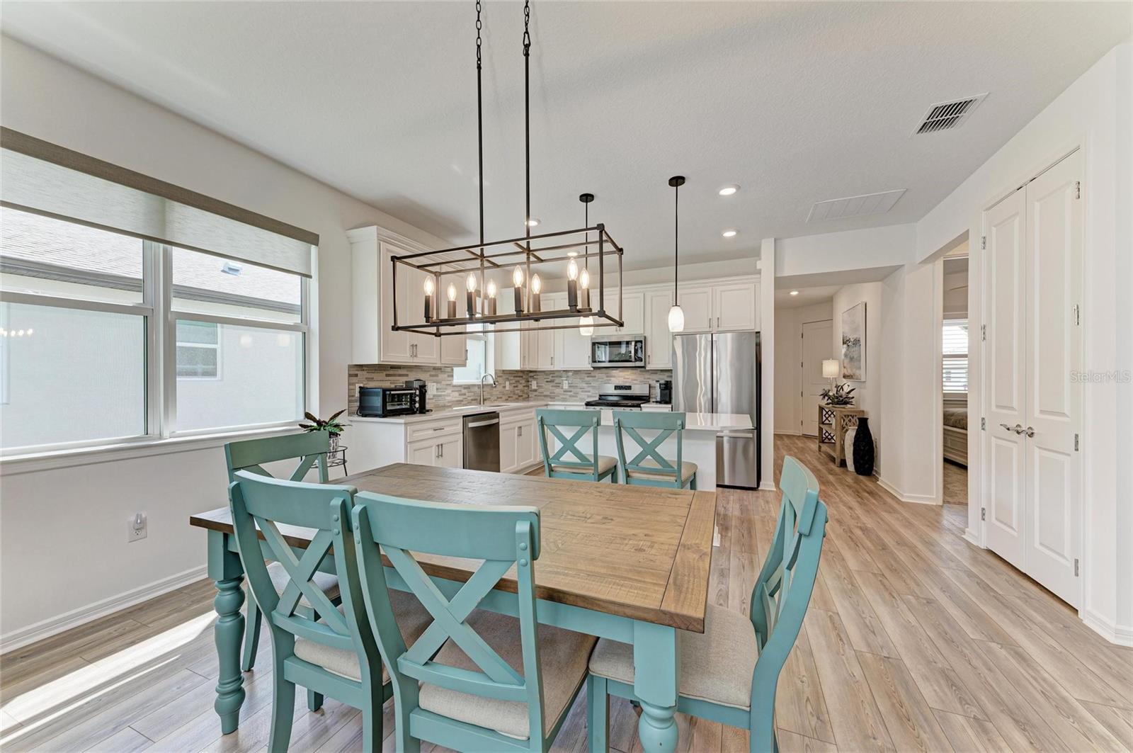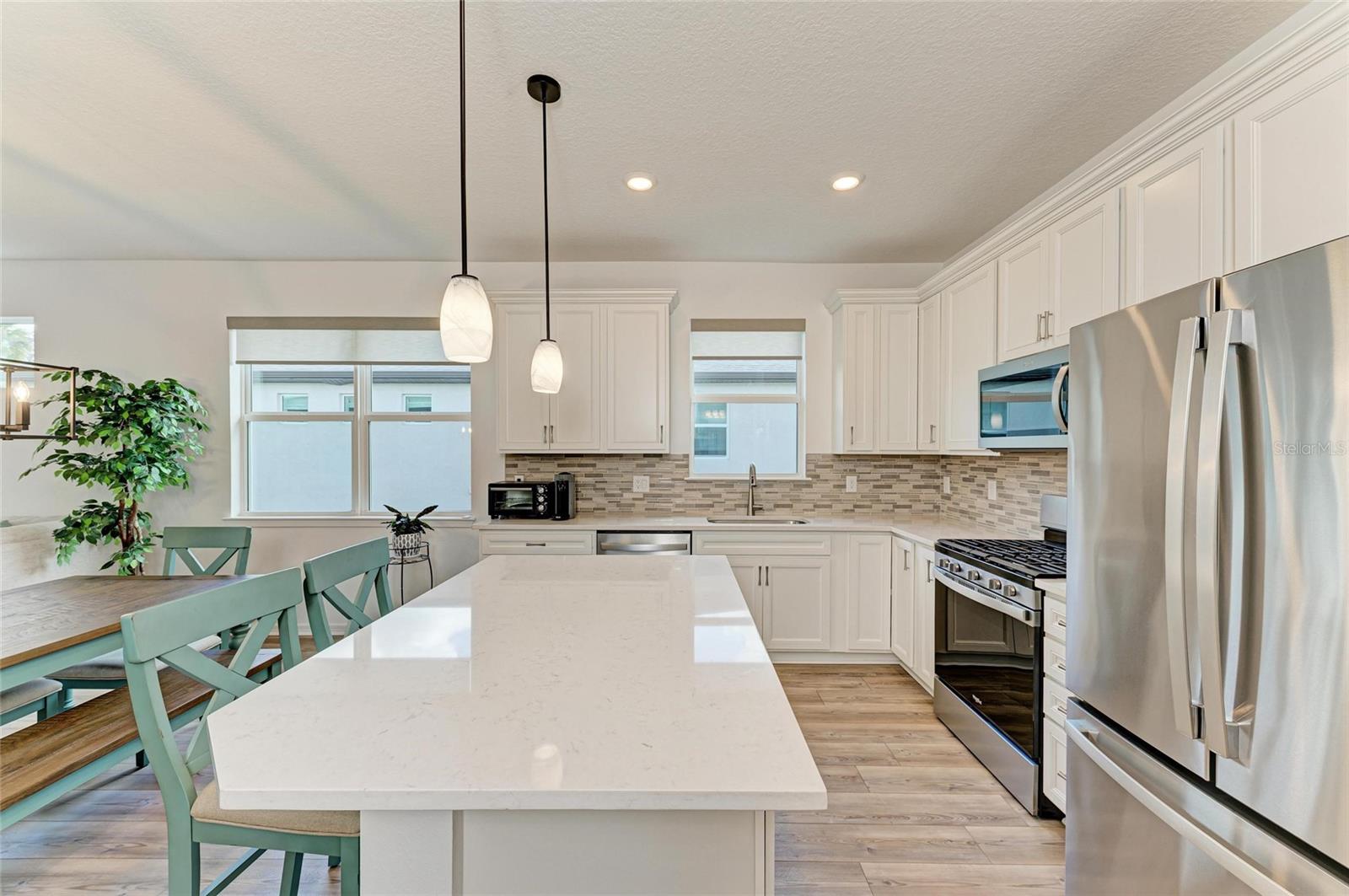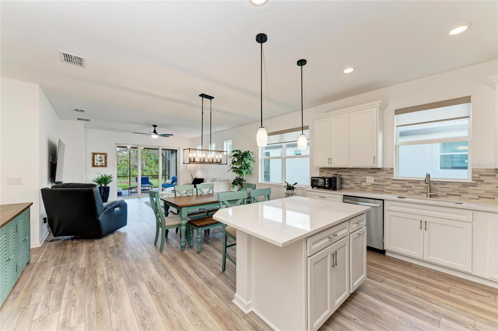 Welcome home to the Ellenwood Villa at Del Webb Bayview—where every day brings a new adventure. We're excited to share some fantastic news: this Ellenwood Villa is now available at a remarkable new price! Del Webb Bayview is designed to help you make the most of your retirement. Located just 30 minutes from Sarasota, St. Petersburg, and Tampa, our community offers a perfect blend of peaceful living and vibrant city access. It's a wonderful place for active adults aged 55 and over to connect with neighbors and enjoy cultural and recreational attractions. Th?is Ellenwood Villa truly combines luxury and comfort. This stunning home features thoughtful details and ample space, complete with numerous upgrades for an elegant and easy lifestyle. The heart of the villa is its designer kitchen, which is sure to inspire any chef. It boasts a spacious island with a large single-bowl sink, beautiful cabinets, sleek quartz countertops, a convenient pantry, and Whirlpool stainless steel appliances, including an upgraded gas range. The bathrooms echo this elegance with matching cabinets and quartz countertops, a walk-in shower, and dual sinks in the Owner's bath for both style and functionality. Every detail in the Ellenwood Villa has been carefully selected to enhance your living experience. You'll find luxury vinyl plank flooring in the main living areas and enclosed flex room for style and durability, durable tile in the baths and laundry room, and stain-resistant carpet in the bedrooms for comfort. Additional upgrades include electric storm screens on the lanai for security, beautiful remote custom blinds on the windows, and added premium ceiling fans for year-round comfort. Plus, there's a new washer and dryer, epoxy flooring in the garage, and extra storage shelves, perfect for luggage or holiday items. One of the villa's most charming features is its serene views of both the lake and surrounding woods. Whether you're enjoying your morning coffee or entertaining guests, these peaceful vistas will surely leave a lasting impression. We invite you to discover this exceptional opportunity to own a home in Del Webb Bayview. Come and experience a new level of retirement living in a community designed for those who want to stay active and connected.