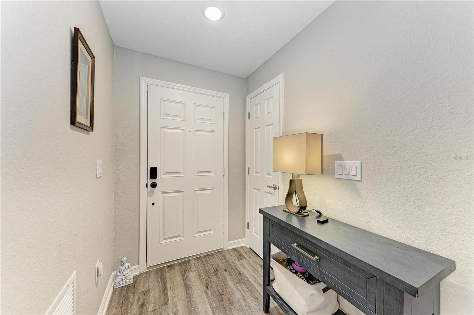 This beautiful 3-bedroom, 2-bathroom home is a true gem, located near a cul de sac with a fenced in backyard makes this home a perfect blend of style, comfort, and functionality. With a spacious open concept and vaulted ceilings in the main living area, it invites a sense of airiness and light. The luxury vinyl flooring throughout adds both elegance and practicality, while the upgraded kitchen is a chef's dream with soft close cabinets & drawers, quartz countertops, stainless steel appliances, and a large island perfect for gatherings. The home has been meticulously updated with plantation shutters and freshly painted in a neutral tone, giving it a bright and modern feel. The bathrooms are equally upgraded, featuring the same stylish cabinetry in a dark tone and quartz countertops, with attention to detail in the fixtures. The front and back porches offer wonderful spaces for enjoying your morning coffee or relaxing in the evening and bird watching. Furniture is negotiable, making this move-in ready home even more appealing. This vibrant community offers an array of amenities designed for both relaxation and recreation. Enjoy sunny days by the heated pool, engage in friendly competition on the pickleball and basketball courts, or let the kids explore the playground. For those who love outdoor activities, scenic walking trails wind around tranquil lakes, offering a peaceful escape in nature. Plus, with schools, shopping, and entertainment just a short drive away, everything you need is conveniently within reach, making this community the perfect place to live and play.