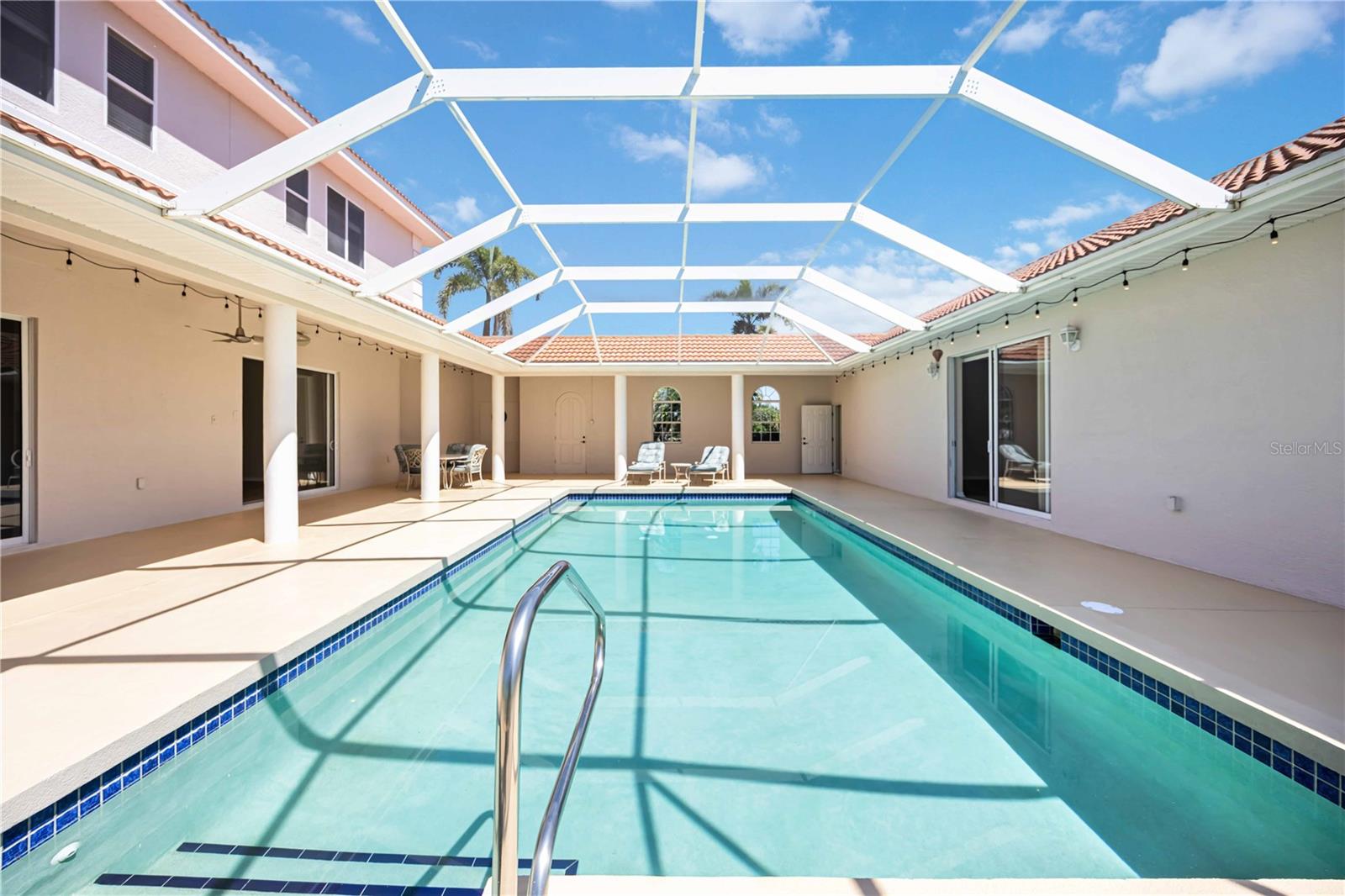 One or more photo(s) has been virtually staged. Indulge in the pure exhilaration that awaits you as you approach this jaw-dropping Spanish Mediterranean-Style Estate nestled on a generous 1.22-acre lot in the enchanting community of Foxbrook. This masterpiece offers an unparalleled living experience, with a staggering 5,093 square feet of air-conditioned opulence, featuring 5 bedrooms, 5.5 bathrooms, and two 2-car garages. As you enter the meticulously landscaped grounds, the sense of wonder is palpable. A paver circle driveway sets the stage for the breathtaking journey ahead, surrounded by a lush tapestry of Palm, Oak, and Fruit trees, including Mango, Fig, Pomegranate, Orange, Papaya, Guava, and Sugar Apple. The backyard is a true paradise, offering a professionally lit tennis and/or pickleball court, a screened-in lanai with stainless steel screws, and a sparkling private pool with a full private bathroom with shower, promising endless hours of outdoor fun and entertainment. Upon stepping inside, the sheer magnitude of this home's allure becomes evident. A sprawling floor plan invites you to explore its multitude of living spaces, each more impressive than the last. The main floor boasts a separate Living Room, Den, and Family Room, as well as a colossal bonus room currently serving as a large flex room overlooking pool that can be used as a game room, mother-in-law suite, personal fitness/yoga room, or office business center. This extraordinary space is equipped with a full bar, an expansive entertaining area, sliders leading to the pool area, a personal home theatre where you can watch your favorite entertainment or sporting events, and surround sound speakers, creating an unrivaled gathering spot for you and your guests. The grandeur continues in the gourmet Kitchen, a true culinary haven featuring granite countertops, elegant wood cabinets, double ovens, a new cooktop stove, and an abundance of counter space. The adjacent Butler's Pantry provides additional prep space, while the separate Dining Room offers a stately setting for formal gatherings. Indulge in your favorite music throughout the Dining Room, large flex room, and Pool Area, courtesy of the surround sound speakers. Ascending the staircase reveals five exquisitely designed bedrooms. The Primary Bedroom and Bath is a true sanctuary, boasting a walk-in closet, shower & dual sinks. Two additional bedrooms offer full bathrooms with walk-in showers, while the other two bedrooms can serve as a idyllic guest suites, with one offering direct access to the outdoor balcony overlooking the front yard. This magnificent home is outfitted with state-of-the-art amenities, including three HVAC units, a 5-ton replaced in 2021 and a 4-ton and 2.5-ton unit, both replaced in 2024. Smart Thermostats for the 1st and 2nd floor units ensure ultimate comfort. Foxbrook is more than just a neighborhood; it is a vibrant, charming community, with an acre lot size or more, offering a blend of modern amenities and small-town charm. With low HOA fees and no CDD fees, this is an opportunity not to be missed. Parrish is a growing area with access to all major Tampa Bay cities, beaches, and interstates, as well as top-rated schools, shopping, and hotels, all within a 10-minute drive. Prepare to be captivated by the ultimate resort-style living experience. This is a dream estate awaiting your personal touch. Do not let this once-in-a-lifetime opportunity slip away. Schedule your private showing today and immerse in the grandeur that awaits.
