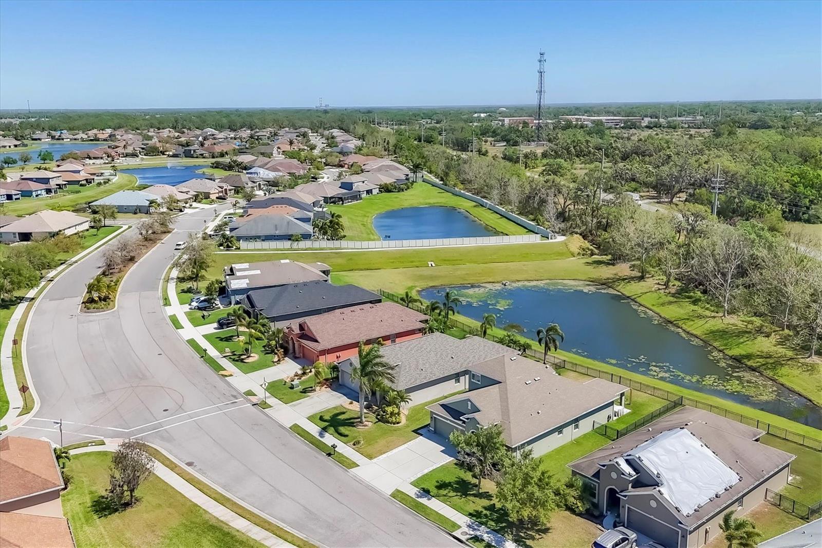 Discover sophisticated living in the exclusive gated Copperstone community! This stunning 3-bedroom, 2.5-bathroom single-family home spans 2,411 sq. ft., masterfully combining custom elegance with everyday comfort. Ideally located off I-75 in Parrish, it offers effortless access to Tampa Bay and St. Petersburg while nestled in a tranquil, family-oriented neighborhood. Enter through a welcoming foyer featuring custom millwork and practical hooks for a seamless drop-zone to keep life organized. Gleaming ceramic tile floors and abundant natural light flow throughout, enhanced by bespoke accent wall molding and designer lighting that elevate every room. The refined study, adorned with wainscoting and a striking accent wall, is perfect for work-from-home or quiet relaxation. The gourmet kitchen is a chef’s delight, boasting stainless steel appliances, expansive countertops, and a large center island that opens to the airy dining and living areas. A chic fireplace adds warmth, making it ideal for entertaining or cozy nights in. Step outside to the partially covered brick-paver patio, a serene escape with picturesque pond and tree-lined views. The main-floor primary suite is a luxurious retreat, featuring a bold accent wall, a spacious walk-in closet, and a spa-like ensuite with dual vanities, a soaking tub, and a sleek glass-enclosed shower. Two additional first-floor bedrooms provide versatility for family, guests, or a home office, complemented by a stylish full bathroom and a convenient powder room. A well-appointed laundry room adds everyday ease. Upstairs, a generous 16x24 bonus room with a walk-in closet offers endless possibilities—think media lounge, playroom, or private hideaway. The home is rounded out with a 2-car garage, energy-efficient double-pane windows, and insulated block construction for cost savings. Relish Copperstone’s premier amenities, including two sparkling pools, a playground, tennis and basketball courts, and exclusive fishing spots. With top-rated schools and a prime location, this move-in-ready masterpiece, showcasing custom millwork and tailored design, is a rare opportunity. Schedule your private tour today!