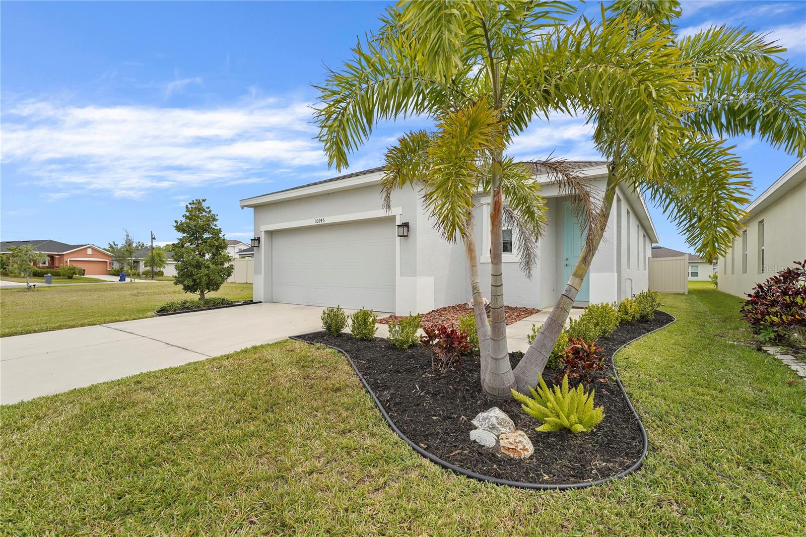 Welcome to this beautifully upgraded three-bedroom, two-bath home in the sought-after Summerwoods community. Boasting an open and airy floor plan with soaring 9'4" ceilings, this home is designed for both comfort and style. The spacious great room seamlessly flows into the dining area and kitchen, where you'll find stunning granite countertops, a large center island, beveled subway tile backsplash, 42” wall cabinets in both the kitchen and laundry room, crown molding, and a kitchen exhaust vented to the outside. Stylish pendant lighting adds an elegant touch, while recessed lighting in the living room and master bedroom enhances the bright, welcoming atmosphere. Fresh interior paint, along with newly painted front and laundry room doors, gives the home a crisp, modern feel. The owner’s suite offers a serene retreat with a large walk-in closet and an en-suite bath featuring dual vanities, upgraded Corian countertops, and tiled shower and bath walls. Two additional bedrooms share a well-appointed full bathroom, providing plenty of space for family or guests. This home is packed with thoughtful upgrades, including durable tile flooring in the living and dining areas set in a stylish brick pattern, complemented by an upgraded trim package with 5 1/4" baseboards and nickel lever lock door handles. Stay comfortable year-round with ceiling fans in every room, including the covered lanai. The pre-wired HDMI, Ethernet/internet cables, and additional power plugs in the living room and master bedroom make it easy to stay connected. Step outside to the covered lanai and enjoy the privacy of a fully fenced backyard with a 6’ vinyl fence, perfect for outdoor gatherings or relaxing evenings. The garage offers extra convenience with a utility sink, two 4’x8’ hanging storage racks, and extra exterior outlets. Additional upgrades include new hardwired smoke alarms, high-quality exterior security cameras, and custom blinds throughout the home for the perfect balance of light and privacy. Summerwoods is a resort-style community offering a community pool, splash pad, playground, scenic walking trails, and a dedicated dog park. Located near I-75 and 301, this home provides easy access to Tampa, St. Pete, Sarasota, and local favorites like Anna Maria Island and Ellenton Premium Outlets. Experience the perfect blend of luxury, convenience, and modern living—schedule your private tour today and make this exceptional home yours!