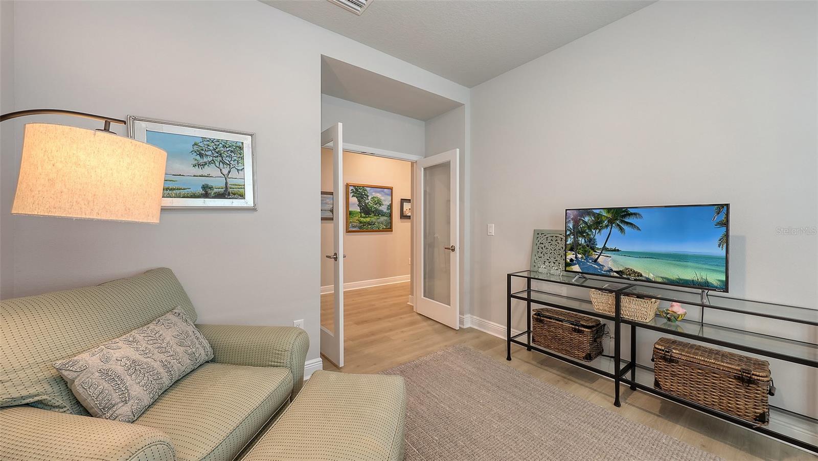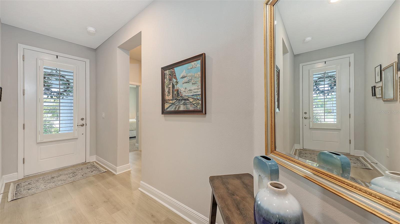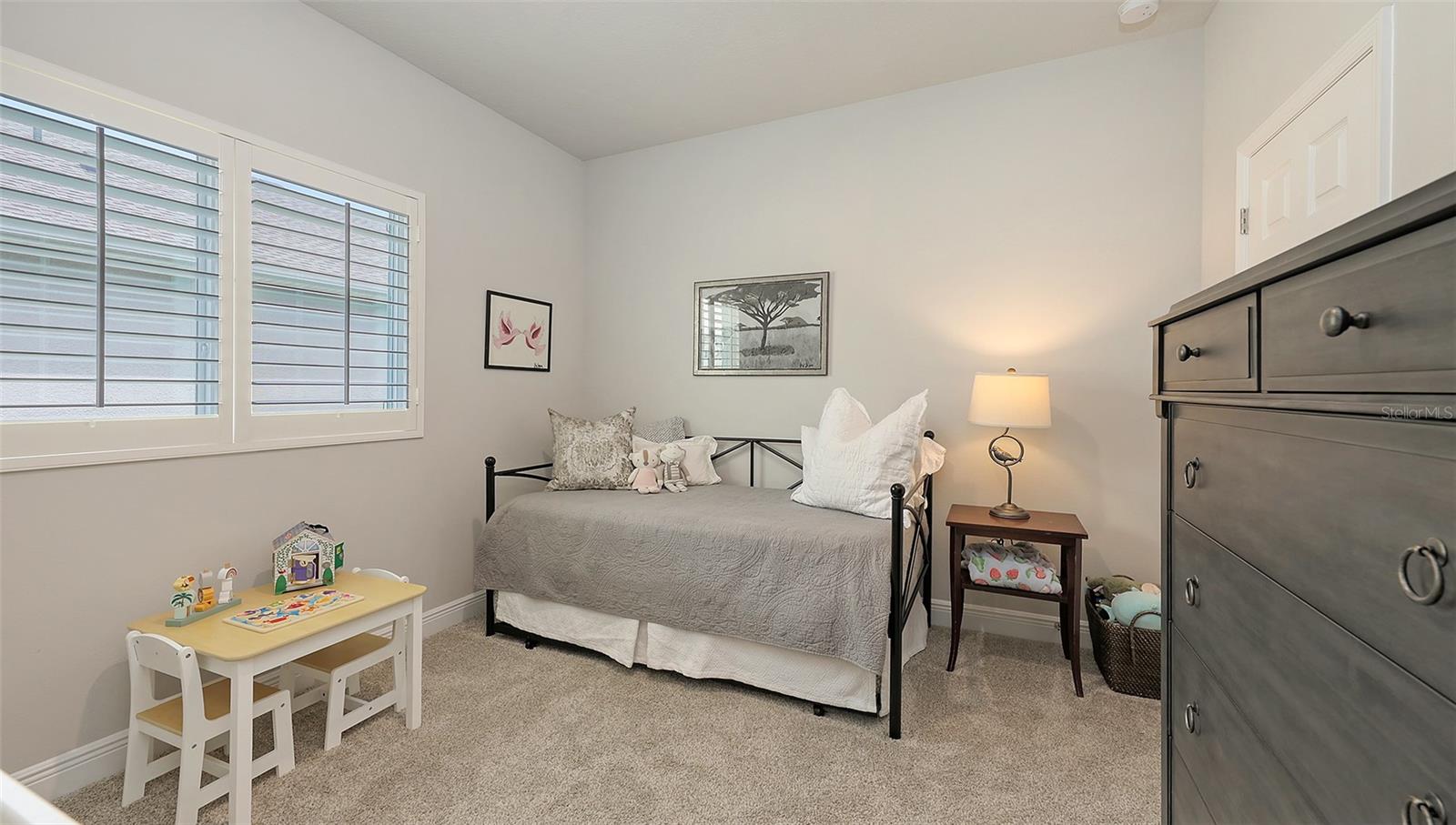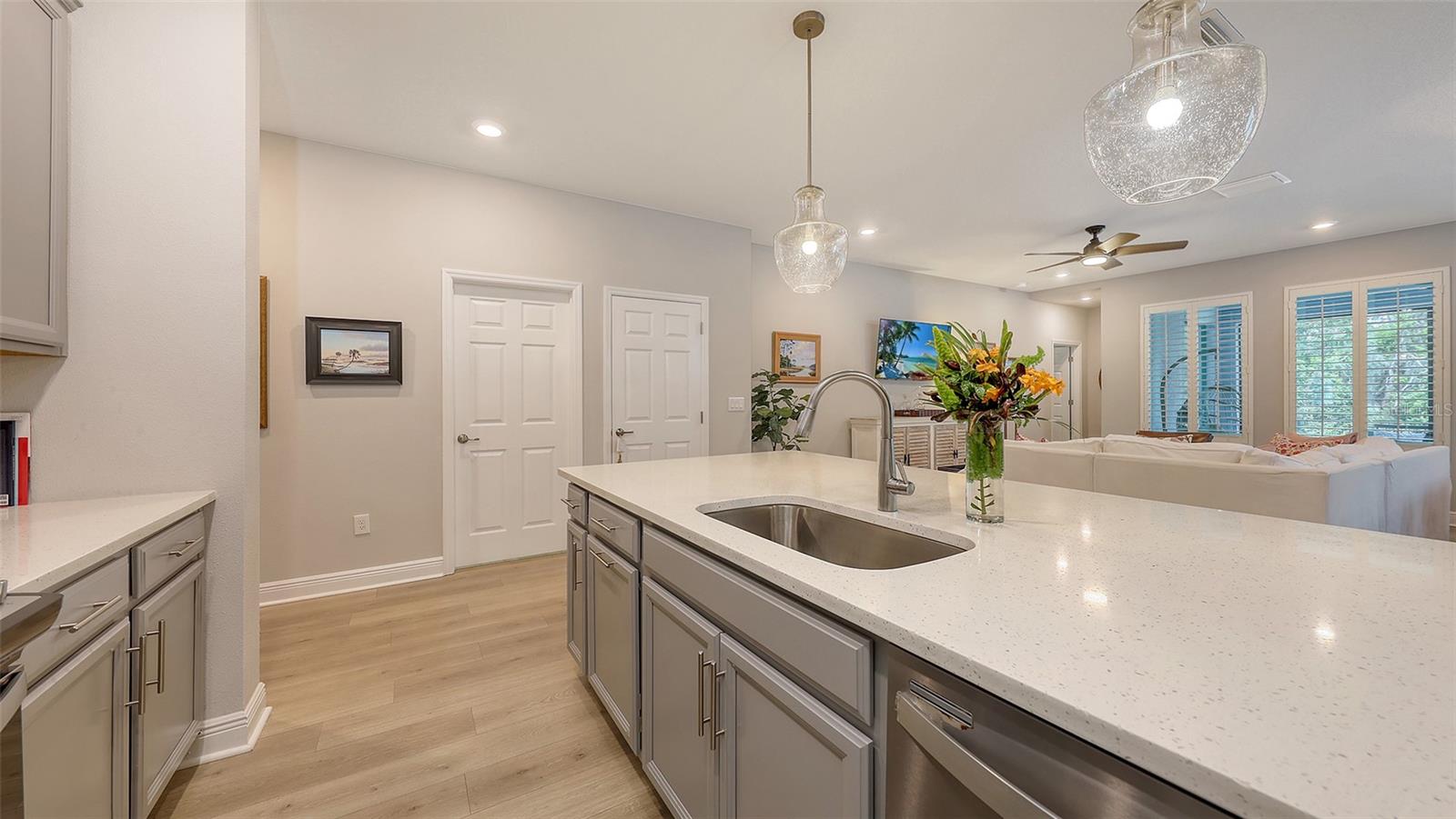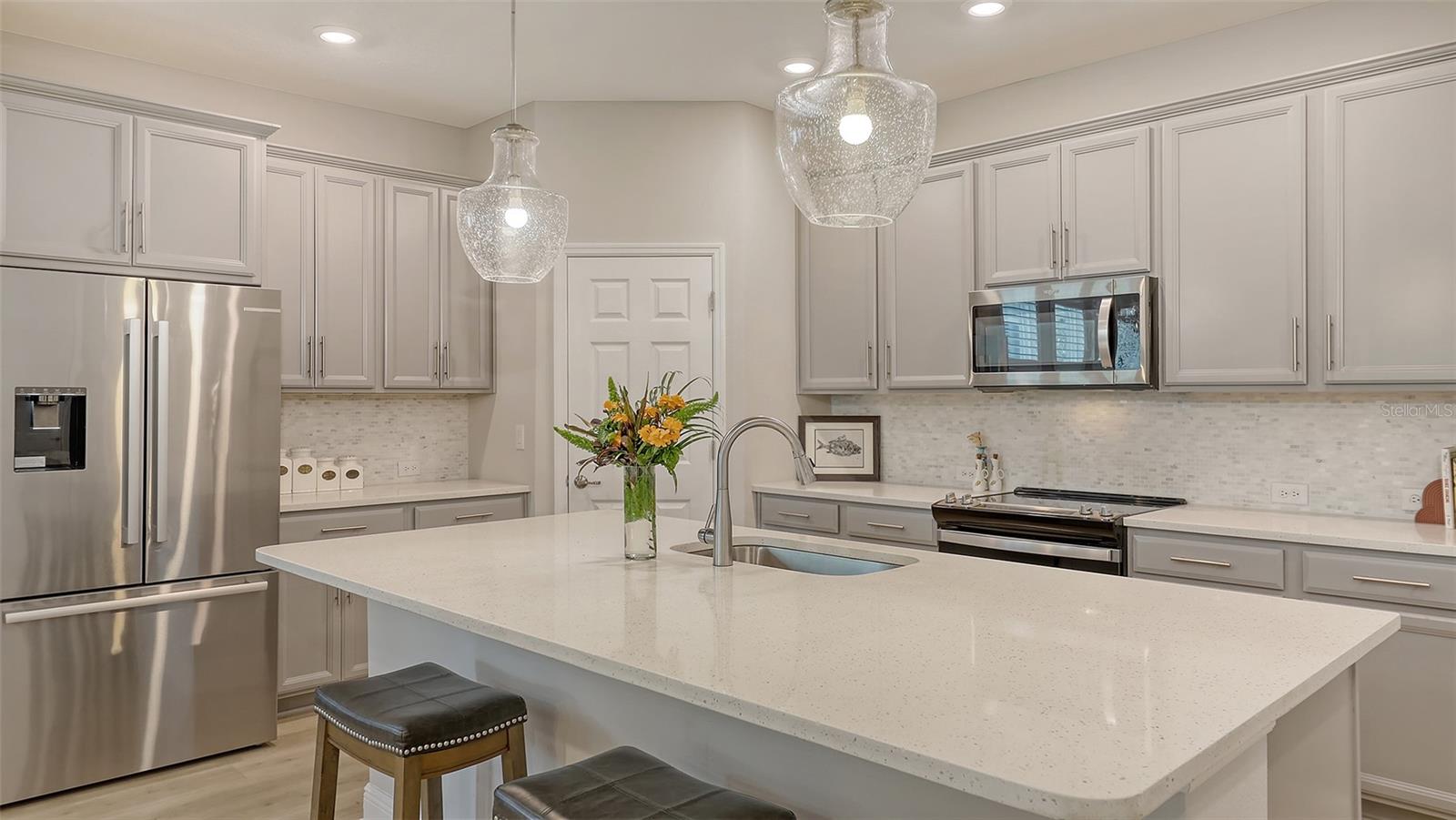METICULOUSLY UPGRADED 3 Bedroom + Den, David Weekley Home in the desirable North River Ranch community of Parrish. Popular Ensenada floorplan, built in 2022. Thoughtfully enhanced after completion with $40,000 in upgrades. INCREDIBLE DEAL! No need to wait on building. A move-in ready home with TIMELESS FINISHES THROUGHOUT and many enhancements. Open-concept design creates a bright and airy atmosphere with volume ceilings, recessed lighting, upgraded light fixtures, and plantation shutters. Wood-look laminate plank flooring flowing throughout the main living areas. Gourmet kitchen with light gray 42” cabinetry with crown molding, quartz countertops, stylish backsplash, Bosch and Whirlpool stainless steel appliances, walk-in pantry and a large center island with designer pendant lighting. Primary suite with coffered ceiling and a large walk-in closet custom designed by "Tailored Closets," with direct access to the laundry room. Beautiful ensuite bath featuring a dual vanity with framed mirror, private water closet, linen closet and a spacious walk-in shower with floor-to-ceiling tile, frameless glass and built-in niche. Versatile den located off the foyer with double glass French doors can be used as a home office, playroom, studio, media room, 4th bedroom or anything to fit you needs. Two additional bedrooms and a full bathroom are tucked away in a private hallway off the foyer, offering privacy for family or guests. Enjoy outdoor relaxation on the spacious screened lanai, plus an additional stone-paver patio. The FULLY FENCED BACKYARD features wrought iron fencing with puppy pickets. Additional features include a laundry room with built-in cabinets, an LG front-loading washer and dryer, and a two-car garage with epoxy flooring. The master-planned North River Ranch community offers resort-style living with 3 community pools with cabanas, fitness center, miles of walking and biking trails, soccer fields, playgrounds, dog parks, fire pits, bike share program, and multiple clubhouses and social spaces. Conveniently located close to the new Parrish Community Park and the new Publix Plaza and just a short drive to dining, shopping, top-rated schools, and family-friendly activities. Parrish is a rapidly growing area with easy access to St. Pete, Tampa, Lakewood Ranch, Sarasota, and the stunning Gulf Coast beaches. WHY WAIT TO BUILD? You can move into this incredible home today.