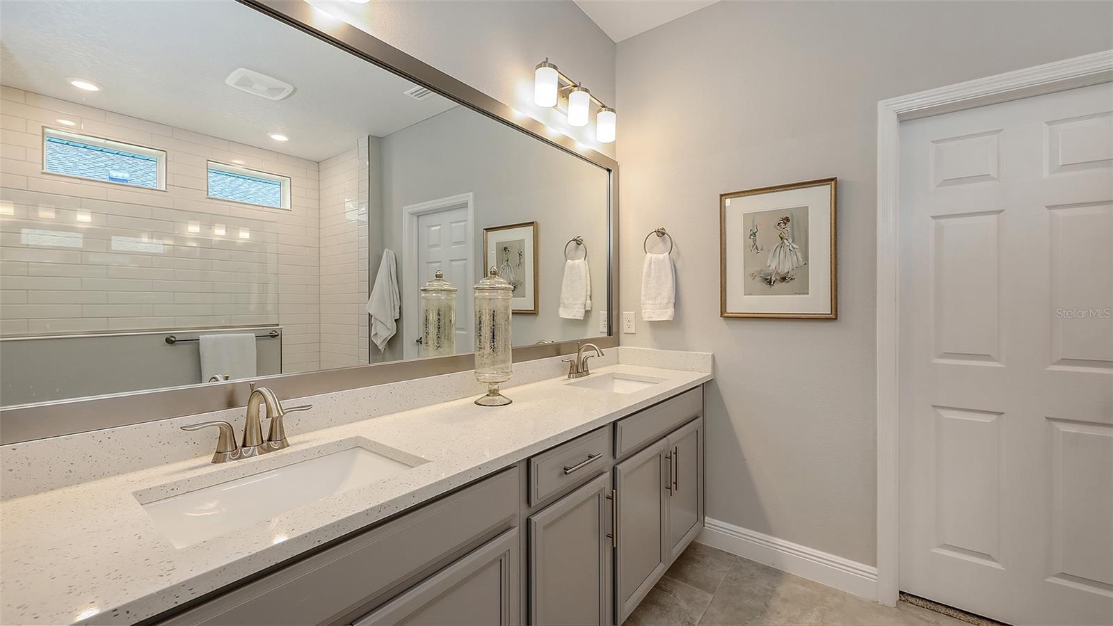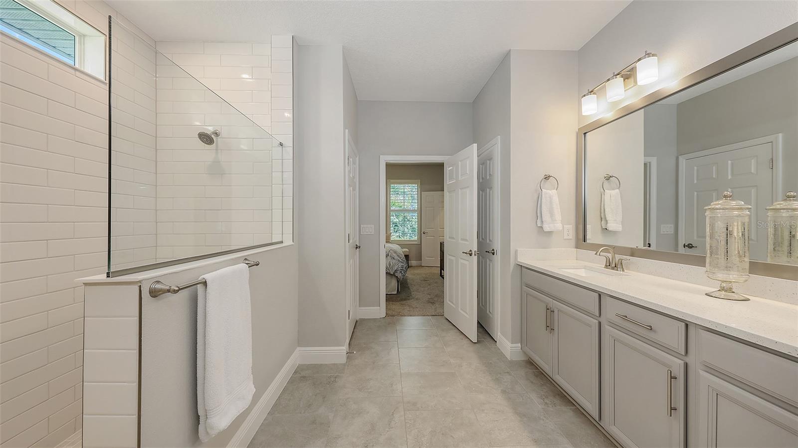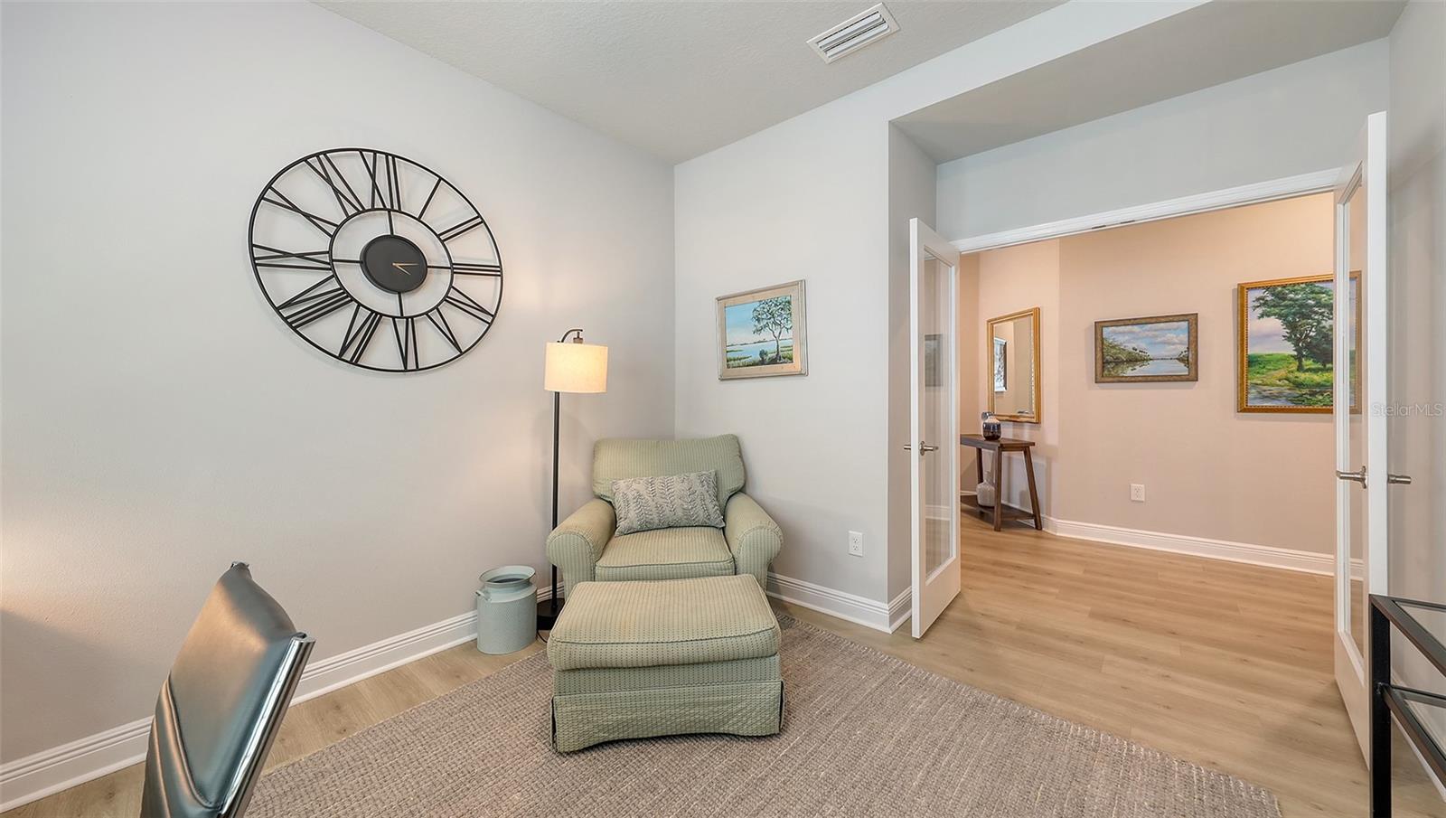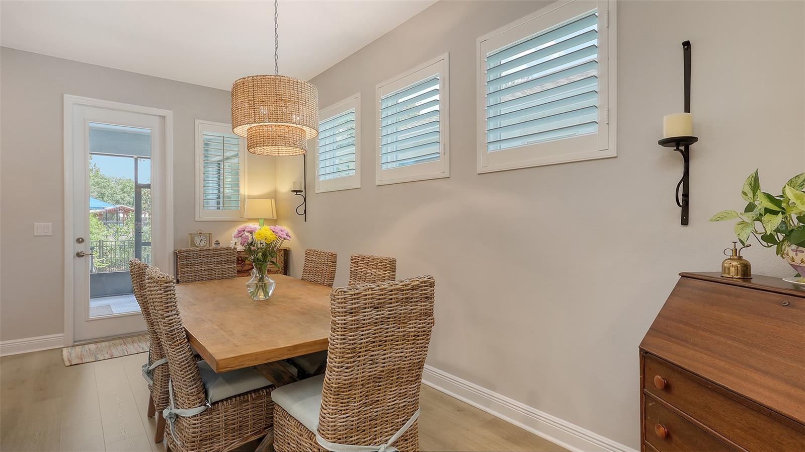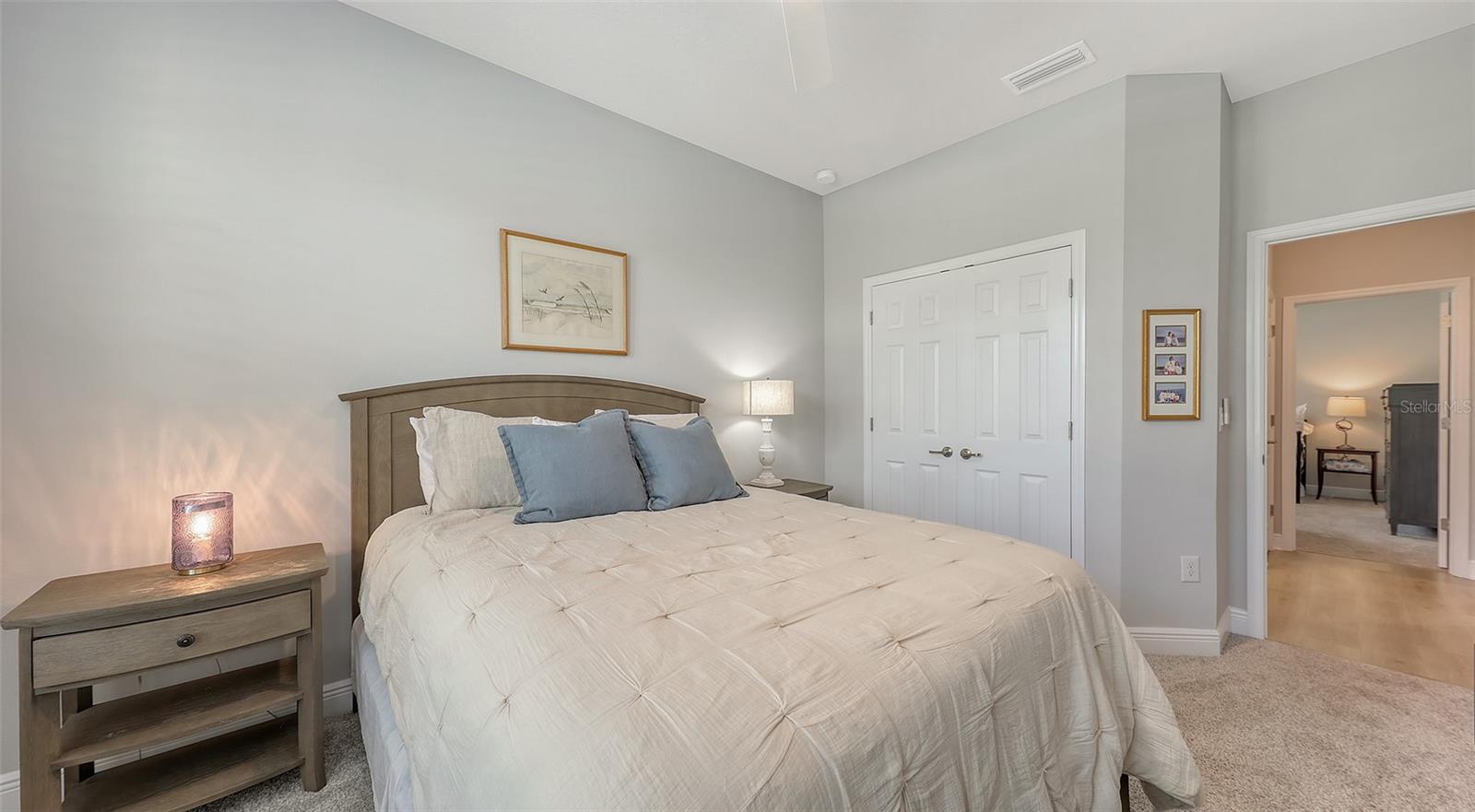 METICULOUSLY UPGRADED 3 Bedroom + Den, David Weekley Home in the desirable North River Ranch community of Parrish. Popular Ensenada floorplan, built in 2022. Thoughtfully enhanced after completion with $40,000 in upgrades. INCREDIBLE DEAL! No need to wait on building. A move-in ready home with TIMELESS FINISHES THROUGHOUT and many enhancements. Open-concept design creates a bright and airy atmosphere with volume ceilings, recessed lighting, upgraded light fixtures, and plantation shutters. Wood-look laminate plank flooring flowing throughout the main living areas. Gourmet kitchen with light gray 42” cabinetry with crown molding, quartz countertops, stylish backsplash, Bosch and Whirlpool stainless steel appliances, walk-in pantry and a large center island with designer pendant lighting. Primary suite with coffered ceiling and a large walk-in closet custom designed by "Tailored Closets," with direct access to the laundry room. Beautiful ensuite bath featuring a dual vanity with framed mirror, private water closet, linen closet and a spacious walk-in shower with floor-to-ceiling tile, frameless glass and built-in niche. Versatile den located off the foyer with double glass French doors can be used as a home office, playroom, studio, media room, 4th bedroom or anything to fit you needs. Two additional bedrooms and a full bathroom are tucked away in a private hallway off the foyer, offering privacy for family or guests. Enjoy outdoor relaxation on the spacious screened lanai, plus an additional stone-paver patio. The FULLY FENCED BACKYARD features wrought iron fencing with puppy pickets. Additional features include a laundry room with built-in cabinets, an LG front-loading washer and dryer, and a two-car garage with epoxy flooring. The master-planned North River Ranch community offers resort-style living with 3 community pools with cabanas, fitness center, miles of walking and biking trails, soccer fields, playgrounds, dog parks, fire pits, bike share program, and multiple clubhouses and social spaces. Conveniently located close to the new Parrish Community Park and the new Publix Plaza and just a short drive to dining, shopping, top-rated schools, and family-friendly activities. Parrish is a rapidly growing area with easy access to St. Pete, Tampa, Lakewood Ranch, Sarasota, and the stunning Gulf Coast beaches. WHY WAIT TO BUILD? You can move into this incredible home today.