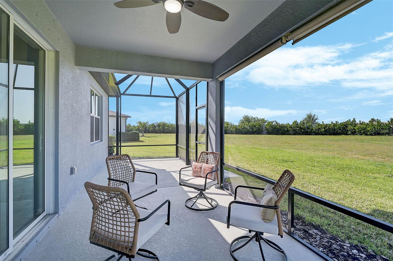 Luxurious 55+ Living in Del Webb BayView - Move-In Ready! Welcome to this exquisitely designed single-family home nestled on a private cul-de-sac in the highly coveted Del Webb at BayView community. Built in 2022, this stunning 2-bedroom, 2-bathroom residence offers 1,405 sq ft of thoughtfully designed living space, perfect for those seeking a vibrant and active lifestyle. This home features the Contour model by Pulte Homes, known for its smart layout and modern elegance, providing both comfort and functionality. Step inside to discover an inviting formal entryway that flows seamlessly into the open-concept living area. The modern kitchen is a chef's dream, featuring granite countertops, a spacious island, Whirlpool stainless steel appliances, and stylish cabinetry, making both everyday cooking and entertaining an absolute pleasure. The kitchen effortlessly connects to the café area and gathering room, providing a warm and welcoming ambiance. The owner’s suite serves as a peaceful retreat, complete with a generous walk-in closet, dual sinks, and a walk-in shower with a bench seat and rain shower head. A secondary bedroom and additional bath offer flexibility for guests or hobbies. While the flex room can be used as a dedicated office, den, or creative space to suite your needs. Each room is equipped with ceiling fans, ensuring year-round comfort. Outdoor living is a delight with the extended 30-foot screened lanai, offering a private space to unwind and enjoy the spacious backyard. The epoxy-coated garage floor adds durability and style, while the home’s move-in-ready condition means you can start enjoying your new lifestyle immediately. The owner is open to selling the existing furniture as an additional option, making this an even more convenient move-in opportunity for interested buyers. Del Webb BayView offers an exceptional living experience with resort-style amenities designed for active adults. The centerpiece of the community is the Driftwood Clubhouse, a 22,562 sq ft social hub filled with activities, workshops, and events. Residents enjoy a well-equipped fitness center, on-site dining at the Sailfish Bar & Grille, and a wealth of outdoor recreation options including pickleball, tennis, bocce, shuffleboard, and walking trails. You can also unwind by the zero-entry pool, hot tub, or resistance pool, making every day feel like a vacation. The community fosters a vibrant social life with a full-time lifestyle director who organizes trips, classes, and events, while the pet-friendly environment includes a dedicated dog park and ample green spaces. Located centrally and just a short drive from downtown Sarasota, St. Petersburg, and Tampa, this home offers both tranquility and convenience. The low HOA fees cover internet, cable, lawn maintenance, and mulching, allowing you to enjoy a worry-free lifestyle. Skip the wait for new construction and move right into this exceptional home in one of Florida’s premier 55+ communities. Schedule your private showing today and start living your best life in Del Webb BayView!