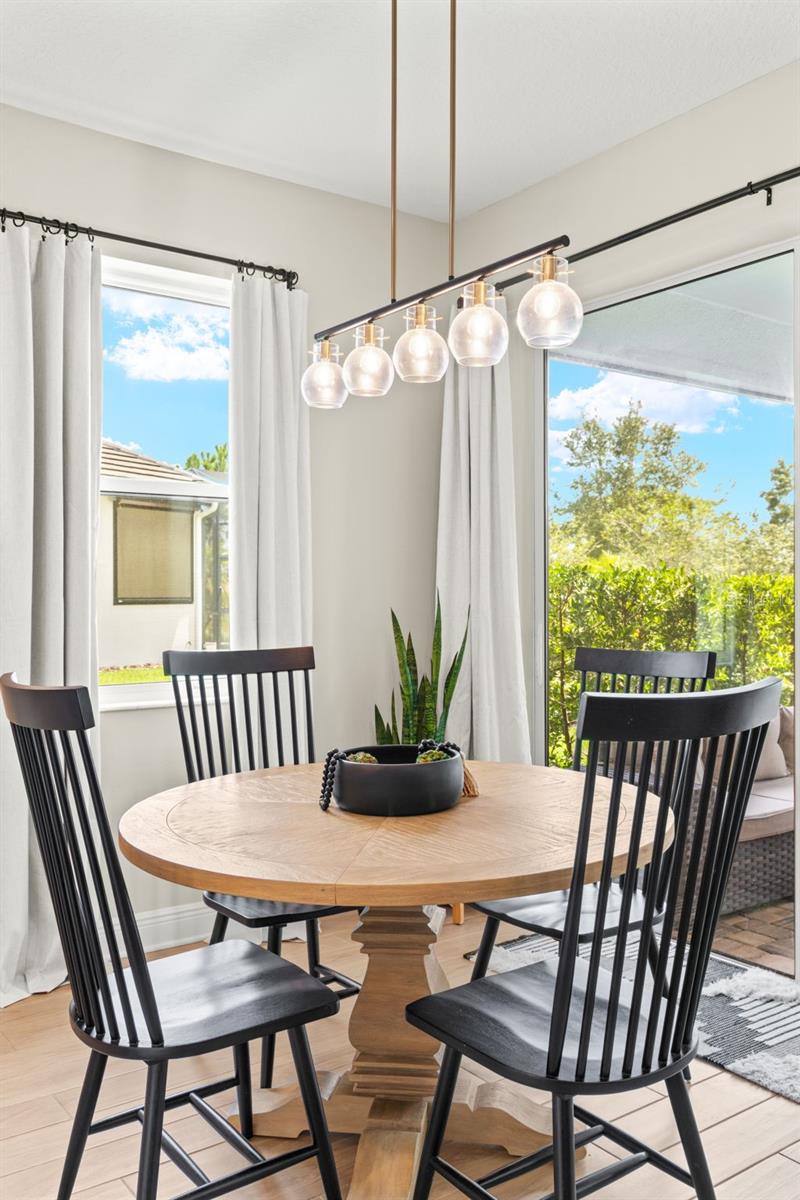 Welcome to your dream home in Cypress Glen, nestled within the sought-after gated community of River Wilderness! This immaculate 4-bedroom, 3-bathroom residence showcases the highly desirable Calusa floor plan by MI Homes, offering a seamless blend of modern luxury, comfort, and style. Step inside to discover a bright, open-concept layout designed for both everyday living and elegant entertaining. The heart of the home is the chef’s kitchen, featuring crisp white cabinetry with abundant storage, granite countertops, high-end stainless steel appliances, and a spacious pantry. New upgraded lighting throughout the home adds a refined ambiance, while newly added accent walls in the family room, master bedroom, and entryway elevate the interior design. The master suite is a serene retreat with a large walk-in closet and a spa-like en-suite bathroom complete with a beautifully tiled shower and double vanity. Each guest bathroom also features tiled showers, continuing the upscale finishes throughout. Enjoy indoor-outdoor living year-round with the newly screened-in patio overlooking a peaceful and private backyard adorned with lush, professionally designed landscaping. The garage features epoxy-coated floors for a polished and durable finish. Located in a quiet, peaceful neighborhood, this home offers maintenance-free living with lawn care included—so you can truly relax and enjoy your surroundings. River Wilderness residents have the option to join the private Golf and Country Club or enjoy exclusive community amenities, including a private boat ramp. Perfectly situated between Tampa, St. Pete, and Sarasota, this location provides convenient access to top-tier dining, shopping, and major interstates. Or stay close to home with all that up and coming Parrish has to offer with many new restaurants and shopping nearby! Whether you're looking for a tranquil retreat or a stylish space to entertain, this home checks all the boxes. Don’t miss your chance to own this stunning, move-in ready home—schedule your private showing today!