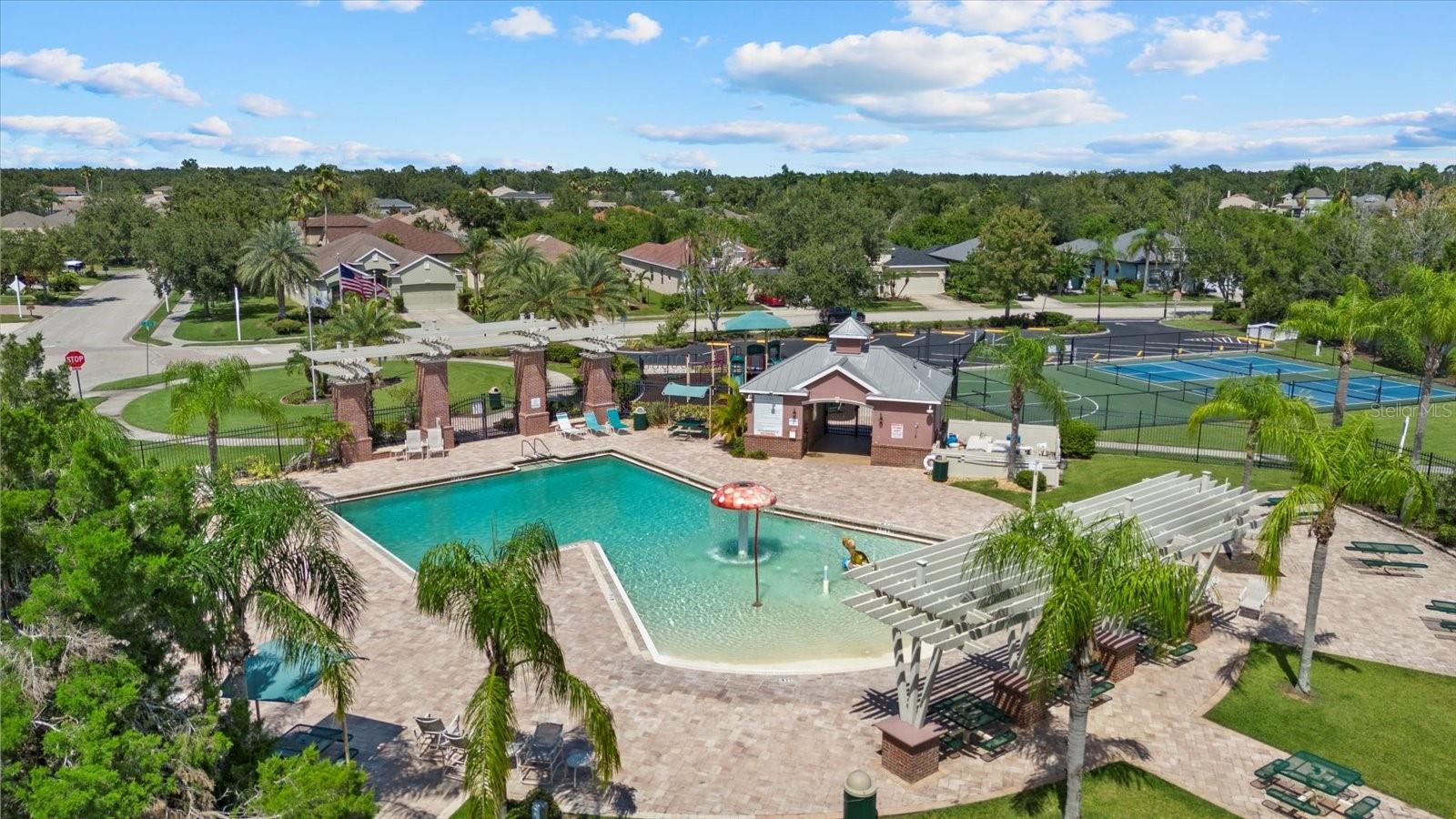 MOTIVATED SELLERS - Listing is under appraisal amount!! Can you say instant equity? Don't miss this amazing opportunity to own a beautifully upgraded waterfront 3/3 PLUS DEN home in the sought-after community of Lexington Estates built by the custom builder Bruce Williams. This exceptional residence features a one-of-a-kind Grecian Key-shaped pool and spa that has been resurfaced and is surrounded by a new panorama screen enclosure that overlooks the lake with a lit up fountain at night. The backyard is an entertainer’s dream, complete with a custom Paradise Grills lighted Tiki Bar with hibachi grill, outdoor TV with bluetooth app technology, and an extended patio area ideal for gatherings. This home is sure to be your oasis after a long day. Step inside to an open floor plan that is showcased by soaring vaulted ceilings and crown molding. The kitchen offers generous space with granite backsplash and a large custom curved granite breakfast bar, a spacious pantry, and a breakfast nook with an aquarium window overlooking the pool. A formal dining room adds to the home’s appeal, along with numerous interior enhancements including plantation shutters, a desk off the kitchen, and UV film protection on the western-facing windows. Recent upgrades include a 2022 HVAC system, a 2021 roof, a water heater booster, and a Pentair pool system. The two-car side-load garage has been extended, features a painted floor, screened-in garage door, and an added portable A/C unit to use at your large custom work bench in the garage…every man’s dream. The front of the home boasts a concrete etched driveway and covered porch, framed by lush landscaping with river rock and curbing around the entire perimeter. (see full list of all upgrades in attachment) Additional improvements include updated kitchen appliances, granite, backsplash, under counter kitchen lighting and automated outdoor lighting, screened lanai. This meticulously maintained property offers the best of Florida living in a peaceful waterfront setting, with every detail thoughtfully designed for comfort, style, and functionality. This is the perfect place to call home in paradise. Quick access to I-75, St Pete and Tampa International airport. Lexington is located near great schools and plenty of restaurants and many famous beaches.