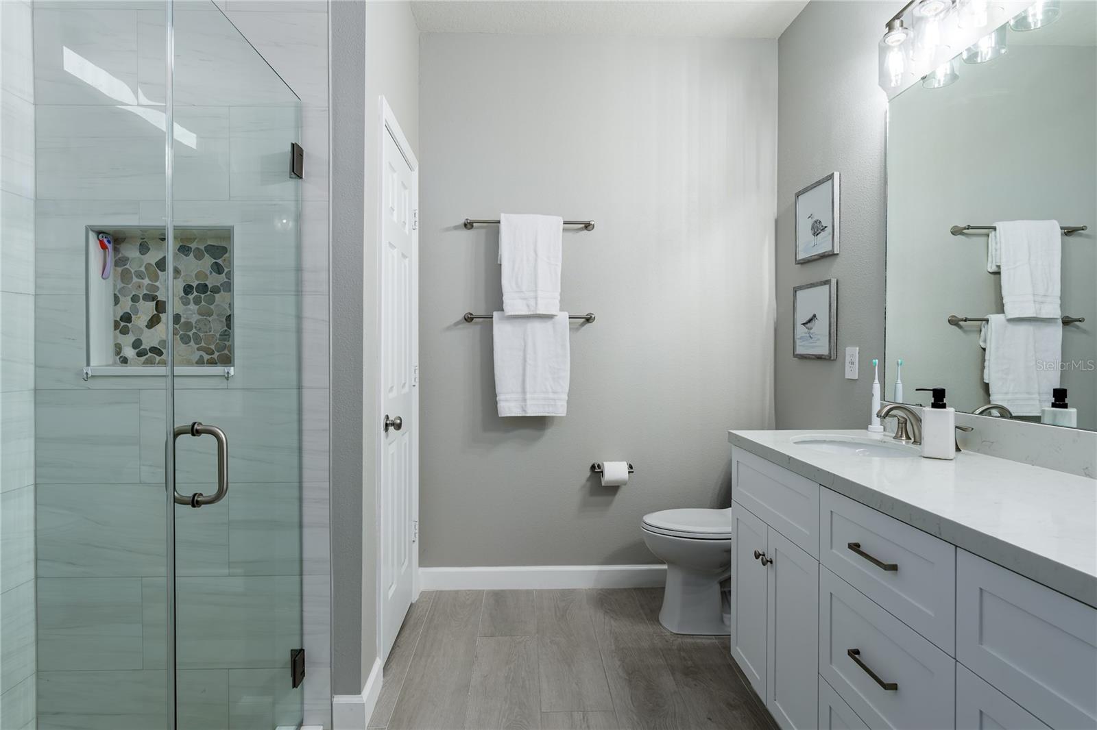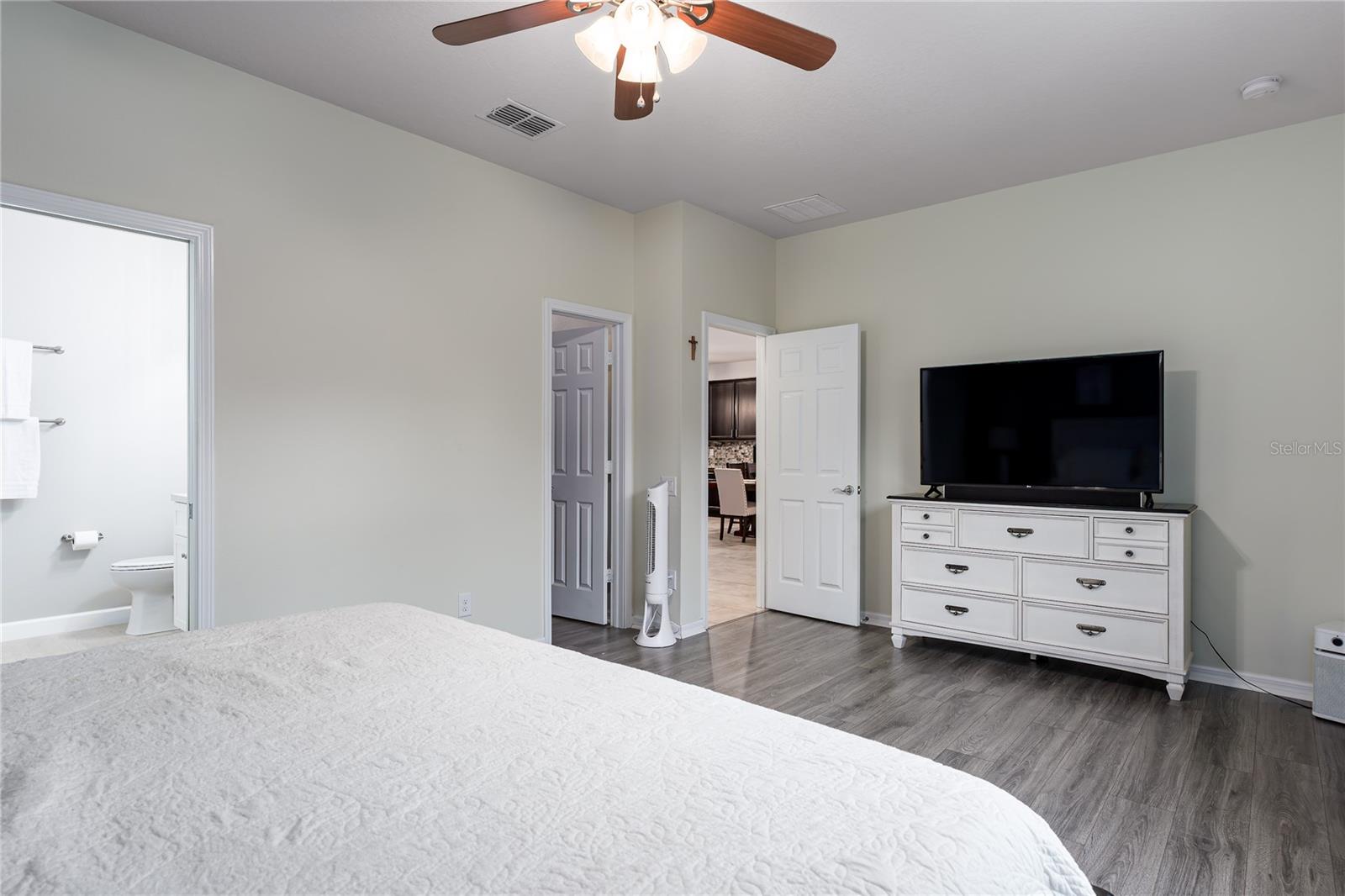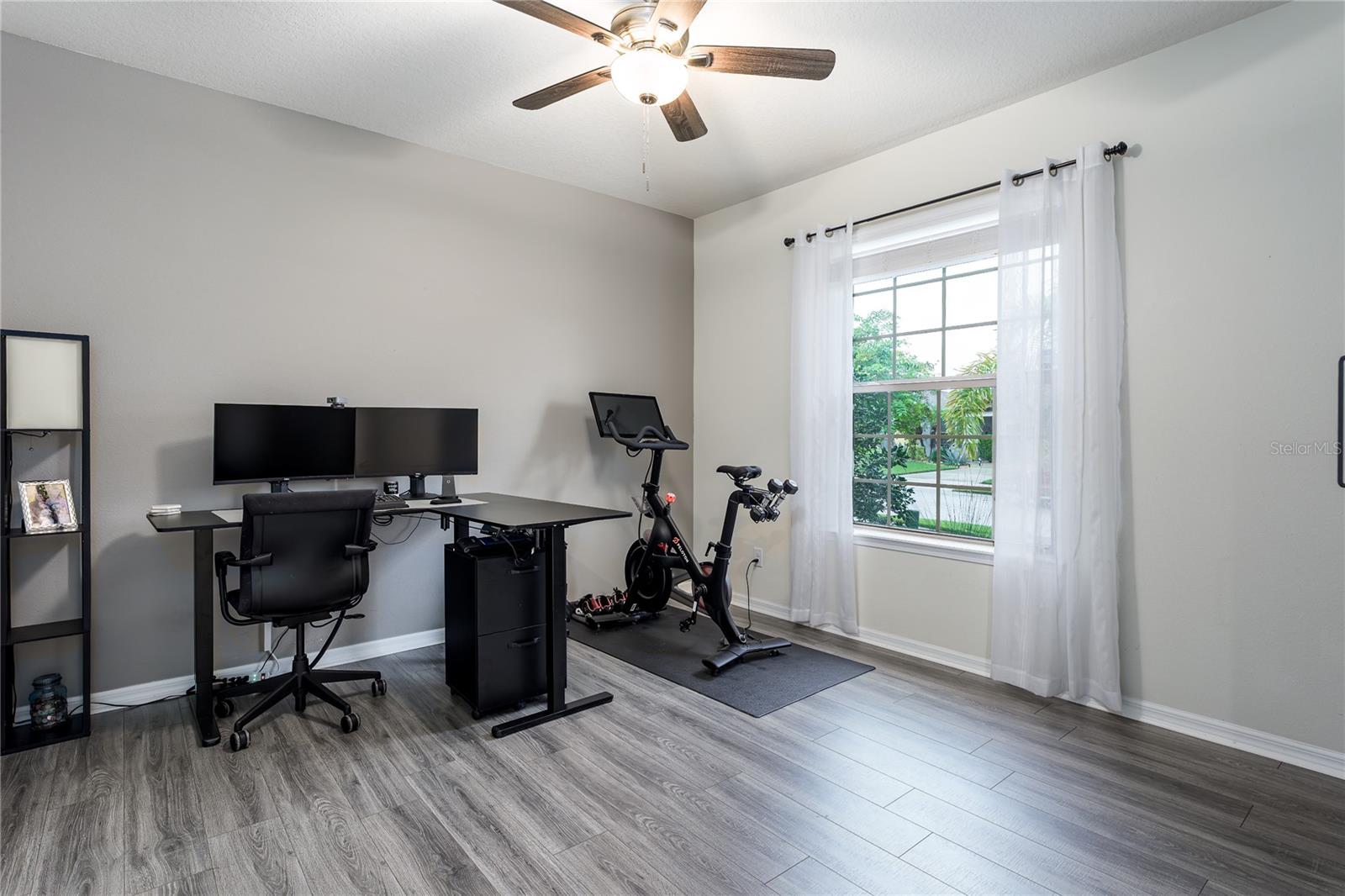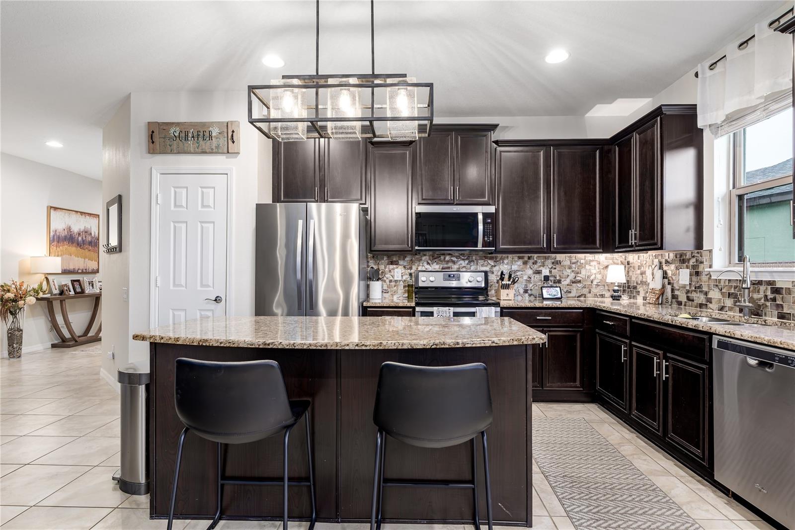 New Price! WELCOME HOME to 5716 110th Avenue E, a well-appointed 2014-built single-family residence located in the desirable Harrison Ranch community, centrally positioned in Parrish, FL. Offering 2,144 square feet under air, this 3-bedroom, 2-bathroom, 2-car garage home features a newly painted exterior (2025) and meticulously maintained landscaping (added 2025), providing excellent curb appeal. The interior layout includes a recently refreshed split floor plan (painted 2023), two spacious guest bedrooms with shared bath, a versatile den/office (suitable as a potential fourth bedroom), and a primary suite with an upgraded master bathroom (2024). The main living area is designed for flexibility and comfort, featuring an open-concept kitchen, dining, and living space. The kitchen is equipped with a large island, granite countertops, decorative backsplash, stainless steel appliances, and enhanced cabinetry. The living area offers an electric fireplace set against custom shiplap and provides access via a large slider to the covered lanai, open patio, and a fenced yard with water views. Additional features include a built-in 'mud' area adjoining the indoor laundry and custom shelving in the garage. Community amenities comprise over five miles of walking trails, swimming pool, tennis courts, basketball and pickleball courts, park, playground, fitness center, clubhouse, and reclaimed water irrigation. Conveniently situated near acclaimed schools, dining, and shopping venues, this property delivers an optimal blend of comfort, accessibility, and quality living. Schedule your showing today!