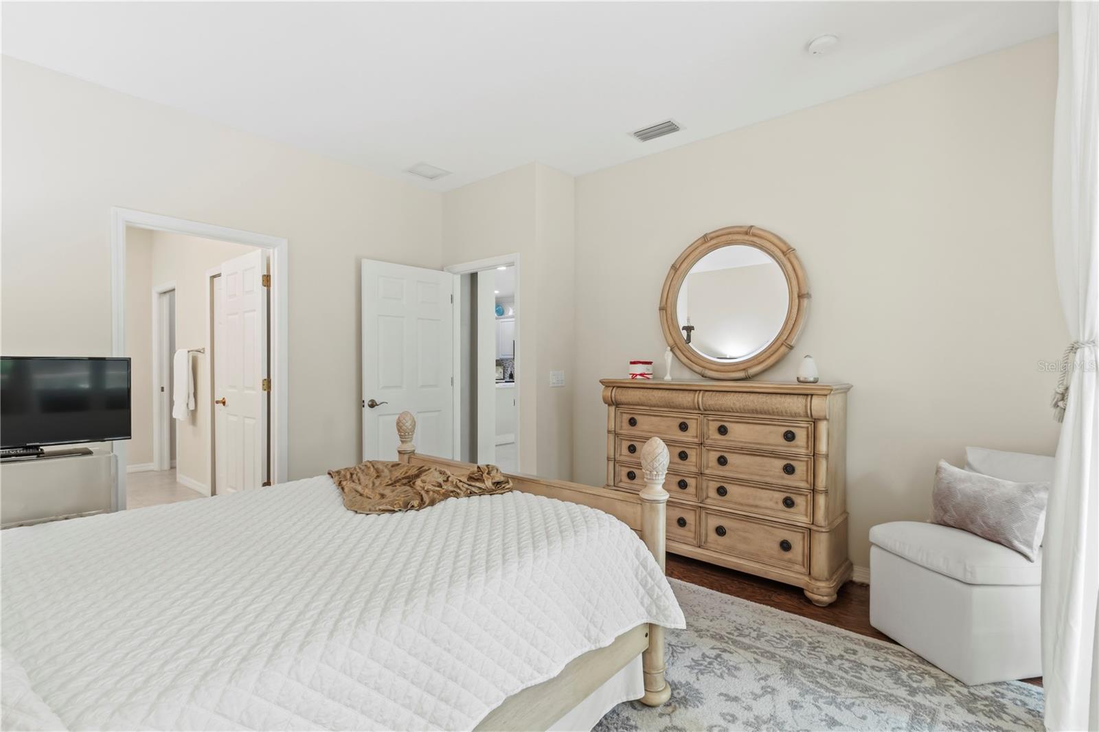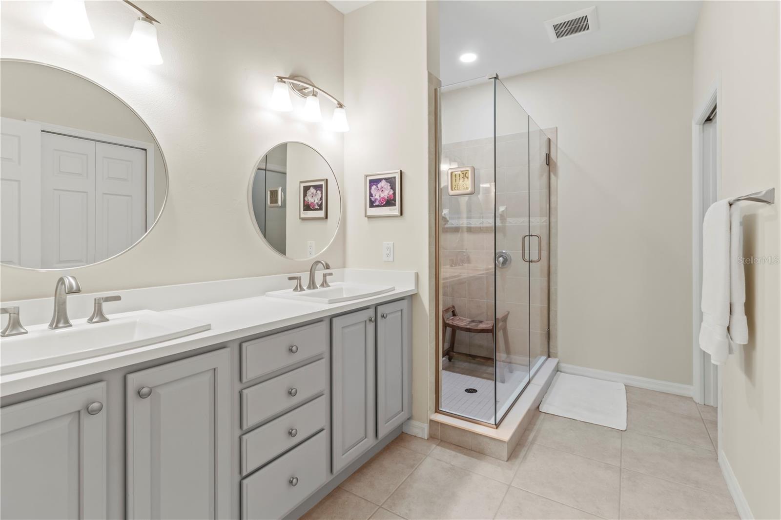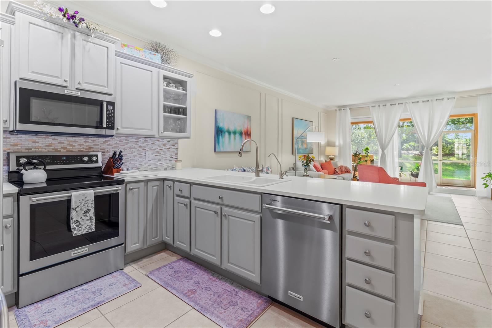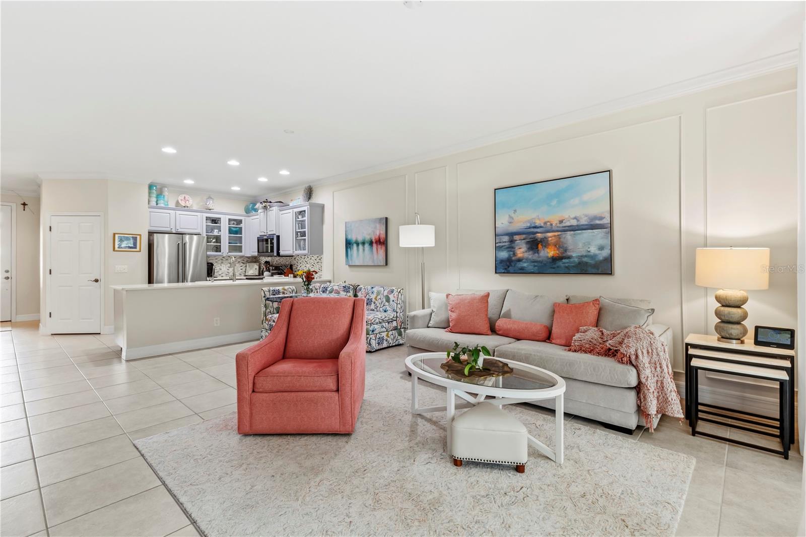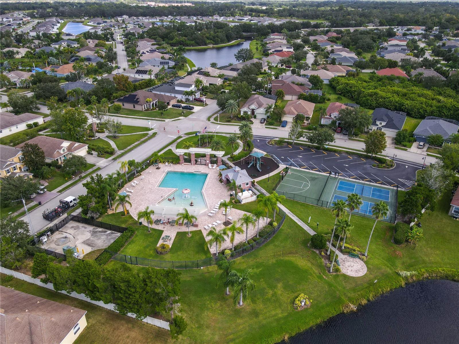 This beautifully updated modern villa is located in the highly sought-after Lexington Community in the rapidly growing Parrish area. This 2-bedroom, 2-bath villa offers a perfect blend of style and functionality. The kitchen has been thoughtfully updated with 2022 improvements, including sleek quartz countertops, a new backsplash, freshly painted wood cabinets with three glass-front panels, and brand-new KitchenAid appliances installed in July 2024. Additional standout features include custom hurricane-impact windows and sliding doors, installed in 2022, offering peace of mind, sound proofing and a transferable warranty. The spacious primary bedroom suite is a true retreat, with sliders leading to the private backyard lanai. The en-suite bathroom has a new shower enclosure, new dual sinks, faucets, and a quartz countertop. Other updates include the freshly painted primary bedroom & bath with a private toilet closet & whisper-quiet exhaust fan. The floor plan also includes a 2nd bedroom with a full-size closet and a hall bath with a tub/shower combo & an exhaust fan. The inviting living area features tile flooring, elegant crown molding, and a tall triple slider that fills the space with natural light. It opens to a newly painted double-screened lanai, complete with a knee wall and ready for grilling and entertaining. The well-maintained HVAC system, retractable front door screen, and newer water heater (2021) provide year-round comfort and efficiency. The interior laundry room includes a utility sink and ample space for a full-size washer and dryer. The epoxy-coated one-car garage offers plenty of storage space, along with electric garage door access. Included HOA Amenities: Come Splash, Play & Game On! – Community Pool, Playground & Sports Courts. All Conveniently located near Shopping, Ellenton Outlet Mall, Dining & Medical with easy access to St. Petersburg, Tampa, and Major highways I-75, I-275, and 301. Schedule your Appointment Today!!!! Buyer Bonus, the Seller has fully paid the CDD assessment.