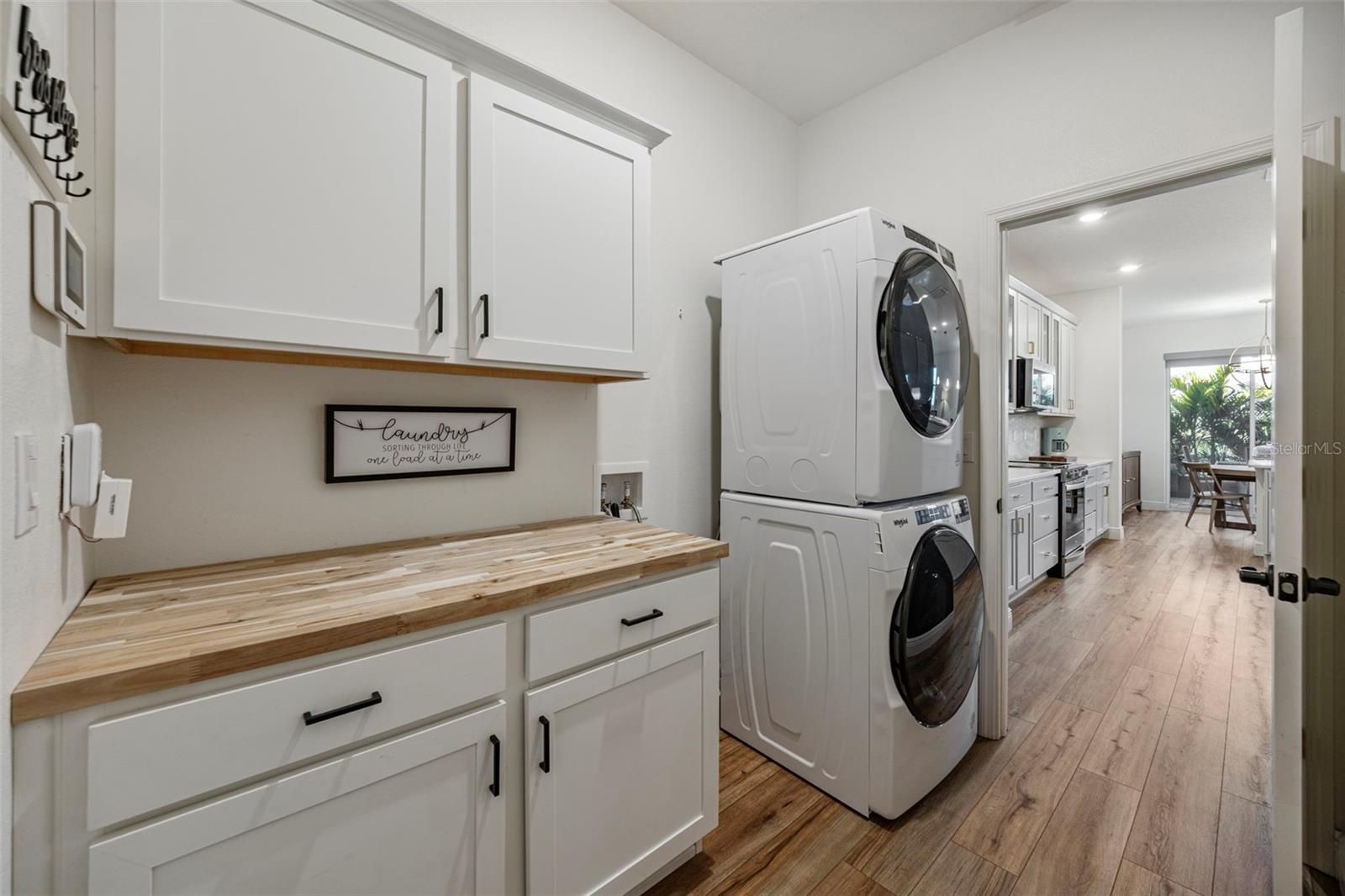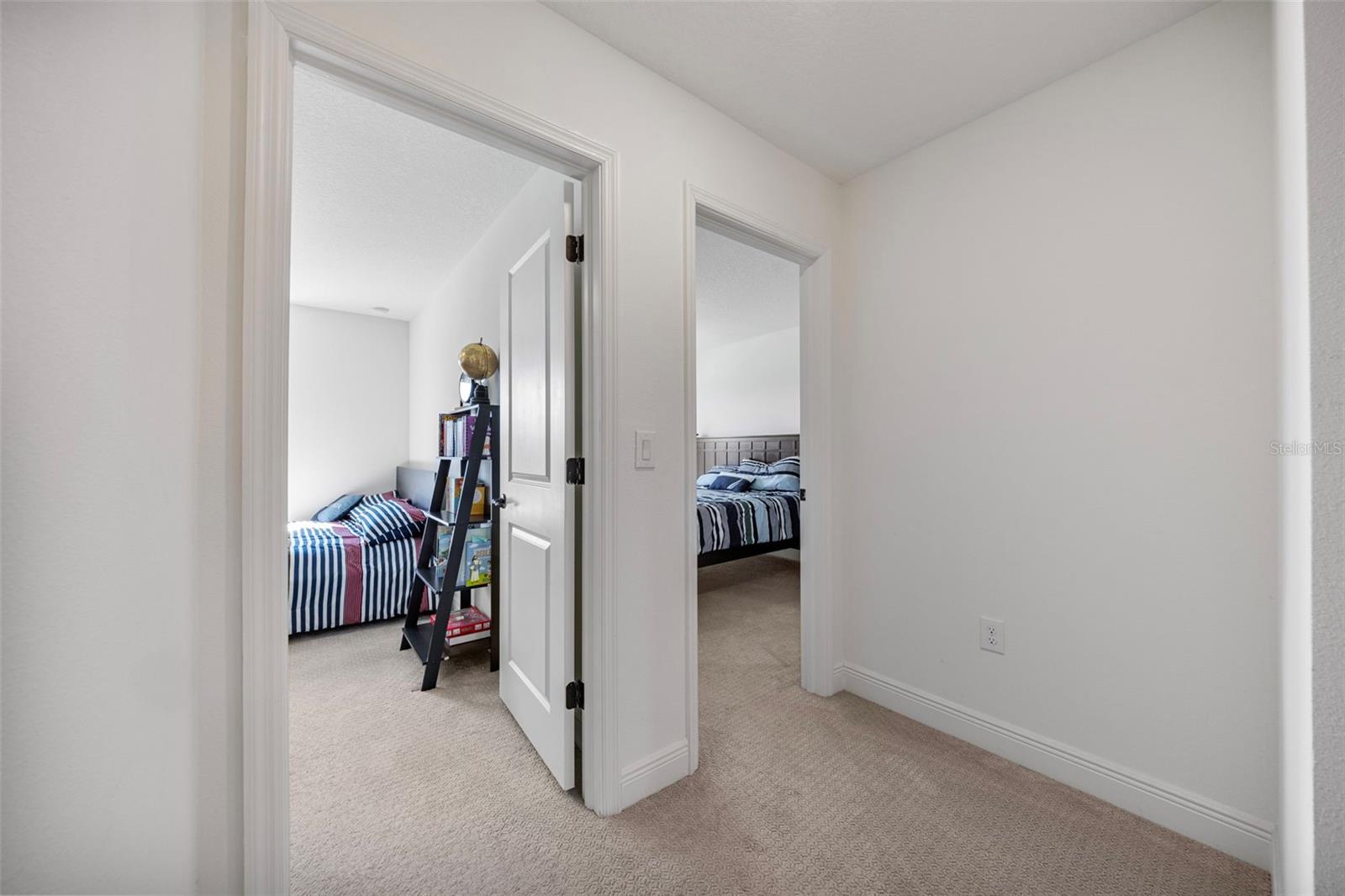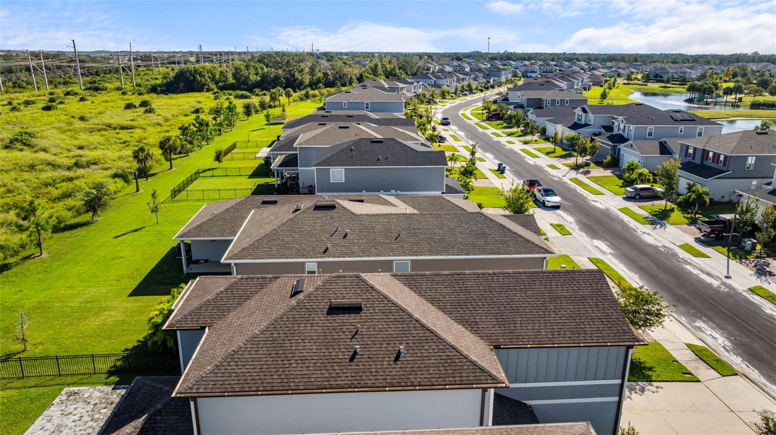 Step into modern comfort and style with this stunning two-story, 5-bedroom, 2.5-bathroom home offering over 2,500 sq. ft. of living space. Built in 2023, this home perfectly blends contemporary design with everyday functionality, all set in the sought-after North River Ranch community. From the moment you arrive, you’ll be impressed by the home’s beautiful curb appeal — featuring a paved driveway, charming blue shutters, and lush landscaping accented by mature palm trees. Inside, the rich wood-like LVP flooring on the first level creates a warm and inviting atmosphere, while the second floor features plush carpeting for added comfort. The first floor boasts a large bedroom which can be used as a "flexible space" such as a home office, bedroom, home gym or playroom. This floor also includes an open living and dining area with direct access to the screened-in, paved patio — perfect for relaxing or entertaining. The spacious kitchen is a chef’s dream, featuring stone countertops, a modern backsplash, bar seating, and stainless steel appliances. You’ll also find a convenient laundry room and two-car garage on this level. Upstairs, unwind in the large family room/loft, perfect for movie nights or a play area. The primary suite offers a walk-in closet and a luxurious en suite bathroom complete with dual sinks and a modern glass-enclosed shower. Three additional bedrooms, each with their own walk-in closet, and a full bathroom complete the upper floor. This community has everything you need! Enjoy resort-style living with low HOA fees and incredible community amenities, including 3 resort style pools, clubhouse, fitness center, dog park, walking trails, and playgrounds. With a vibrant social calendar and tons of community events you will experience community living at its best. Conveniently located just minutes from top-rated schools such as Barbara A. Harvey K-8, with their brand-new upper Campus right in the community and Parrish Community High School! Minutes from the recently opened HCA Florida North River Ranch Emergency and Market Walk with access to coffee shops, dining options, Publix Super Market, dentists and more! Easy access to I-75 and Highway 301. Only a short drive to the city of Tampa, St. Petersburg, Sarasota, and the beautiful Gulf Coast beaches. Welcome to your new home in North River Ranch!