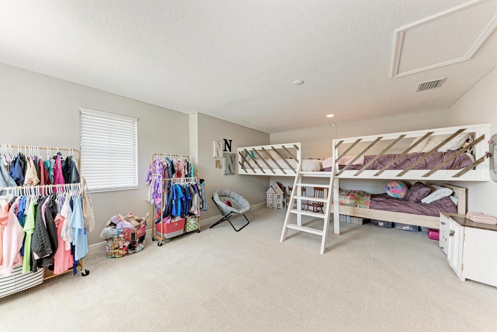 Welcome to a Florida-life stunner! This 5 bedroom home sits on one of the best lots in North River Ranch including a full pond view with a lush, wooded preserve beyond that. This custom home is loaded with upgrades, starting with ceramic tile flooring throughout the main level and stunning ceiling beams in the grand room. The kitchen offers a customized hutch vent hood, quartz counters, stainless appliances, counter depth refrigerator, extended massive island and table with seating for 11, walk in pantry, built in oven, glass door buffet cabinets, and a classic subway style backsplash. From the kitchen you can't miss the giant 24-foot wide 8-foot-tall compound sliding glass door. This door leads to your high-end outdoor paradise, including built in outdoor kitchen, Recteq Pellet Smoker, 36" Blackstone griddle, beverage fridge, stone surround, granite counters including a waterfall counter bar area, electric fireplace, 2 TV's and of course the heated saltwater pool/ spa wrapped with mature tropical privacy landscaping. The entire pool cage area has silver travertine pavers, glass tile champagne spa (spills over on all sides), 2 tile waterfall features, 3 full width entry stairs, LED color lighting and a full 50-foot clear view back screen panel (no horizontal or vertical bars). The views over the pond to the trees is simply amazing. Back inside- the main living area has 11-foot ceilings, a floor to ceiling stone feature wall with TV, custom lighting/pendants, 8-foot interior doors, glass pantry door, double glass den French doors, and double 8-foot-tall double front doors. The laundry is adjacent to the main living area and has a full set of wall-to-wall cabinets, sink and plenty of storage. From here you can enter the 3-car garage with epoxy flooring, storage hooks and fully finished with paint/trim throughout. The main floor also offers 2 additional bedrooms which have upgraded carpeting and good-sized closets. The bath nearest the garage has a full tile shower and glass shower door. There is also a full bathroom near the front door/front bedroom with a bathtub and tile surround. The primary bedroom is tucked back near the pool with a direct glass door from the bedroom to the lanai. This bedroom has a tray ceiling, wonderful natural light with all the windows and room for larger furniture. The primary bedroom leads down to dual closets and on to the custom primary bathroom. This bathroom has a stunning tile shower with a stone waterfall tile feature, niche for products, full width bench and glass door. There also is dual separate vanities, linen closet and private stool room. When heading upstairs you will notice the iron railing, and the soft feel of this carpeted area. The 4th bed has 2 closets and a great view. The 5th bedroom is also the loft area which could be used for other purposes. The full bathroom is positioned between the loft and this 4th bedroom. North River ranch offers several amenity centers but is closest to the Brightwood pavilion with large pool, 24-hour workout center, fire pits, soccer field, outdoor workout and trails throughout. You also get Camp Creek amenities, with 2 full size water slides, pickle ball courts, bike pump track and pavilion. A rated schools: Harvey and Middle and Parrish Community High and is just a short drive to all of Florida's premier beaches. Seller may consider owner financing with qualified buyers, and 30% down or more. The seller is a licensed Realtor.