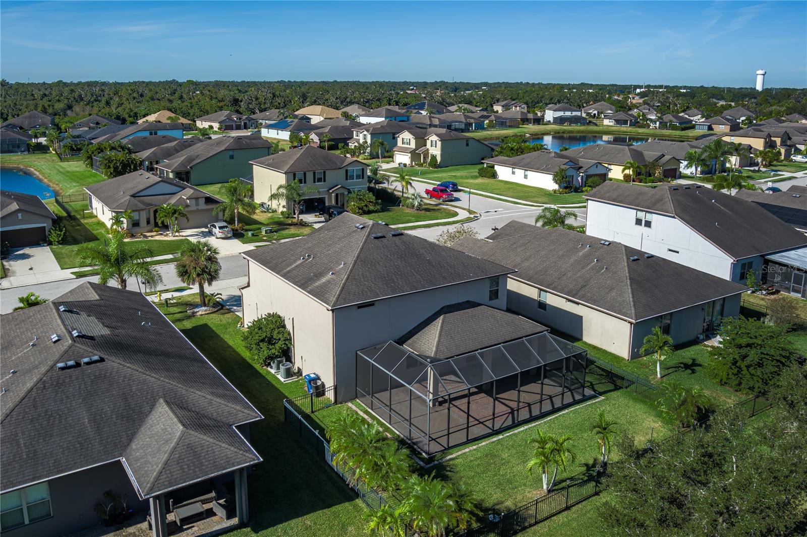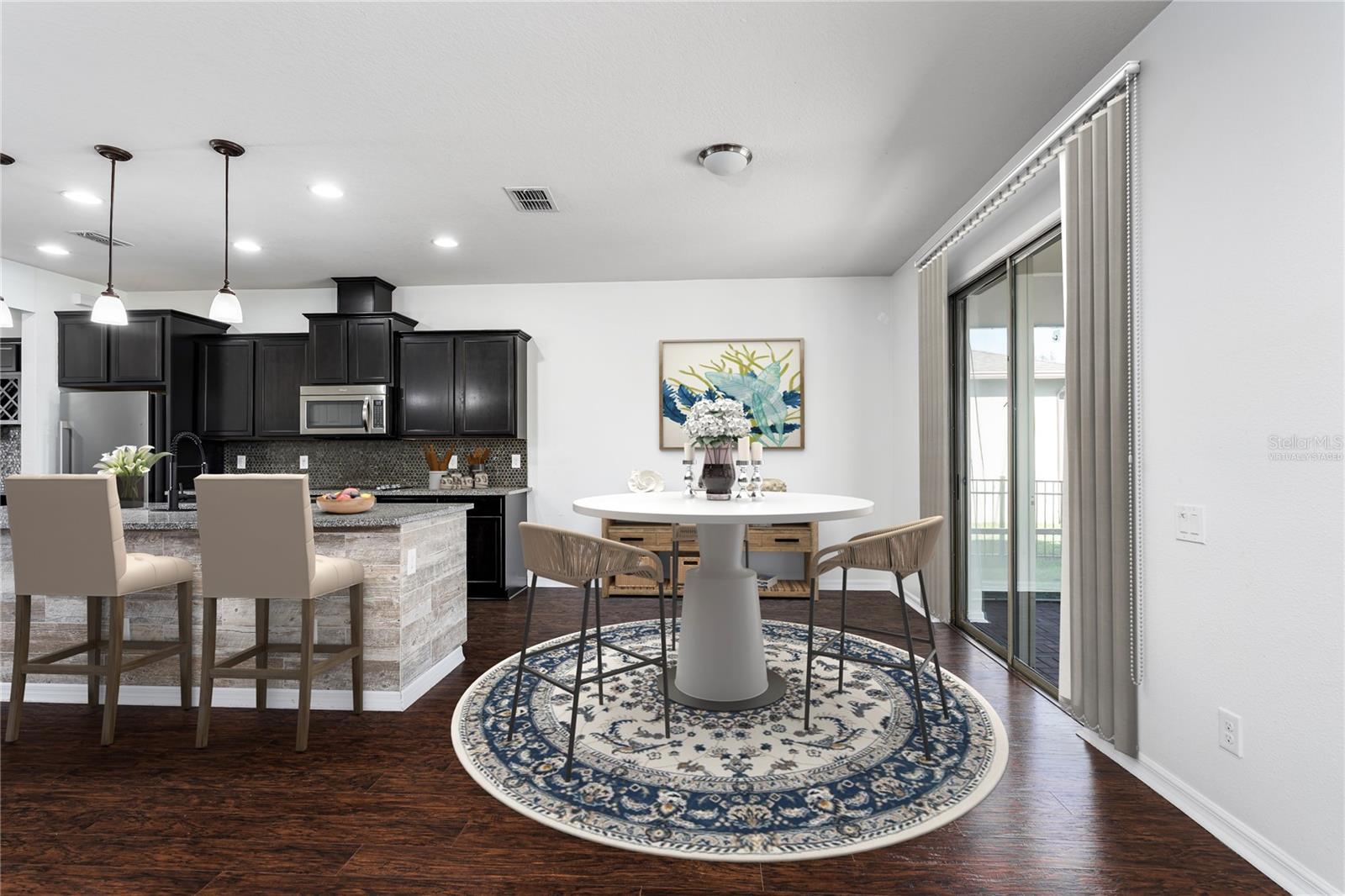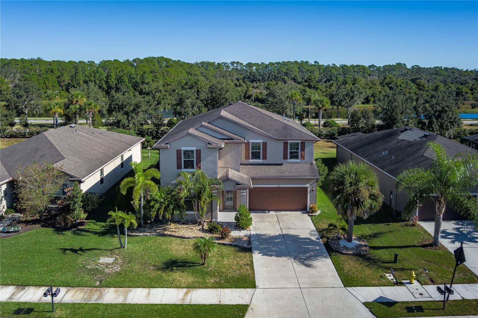Set in the heart of Parrish within the sought-after, resort-style community of Harrison Ranch, this meticulously maintained 4-bedroom, 2.5-bath home delivers space, comfort, and thoughtful upgrades throughout its impressive 3,211 square feet. The spacious kitchen is a chef’s delight, featuring granite countertops, stainless-steel appliances, a large island, generous pantry, and a custom coffee/wine bar with space for a wine fridge. The main floor also includes a private office or den, perfect for remote work or quiet study. Throughout the home, recessed lighting, modern light fixtures and ceiling fans create a bright, stylish atmosphere, while the second-floor laundry room adds everyday convenience. Upstairs, you’ll find oversized bedrooms, a versatile loft, and a luxurious primary suite with a bonus sitting area and large walk-in closet. The en suite bathroom is a true retreat, showcasing an enormous tiled shower, dual-sink vanity with granite counters, and elegant finishes throughout. Step outside to enjoy the incredible outdoor space—an expansive 21-ft x 36-ft screened brick paver lanai ideal for entertaining or relaxing, complemented by a fully fenced yard for added privacy. Additional highlights include a unique L-shaped storage space under the stairs, an extended driveway, and lush landscaping. Residents of Harrison Ranch enjoy access to resort-style amenities including a pool, clubhouse, fitness center, tennis courts, and scenic walking trails, all within minutes of shopping, dining, schools, and major commuter routes. This move-in-ready home combines space, sophistication, and exceptional outdoor living—perfect for the ultimate Florida lifestyle. ***An incredible bonus for qualified VA buyers; this home features an existing VA loan with a very low interest rate that is fully assumable—offering the opportunity for significant monthly savings compared to today’s rates.