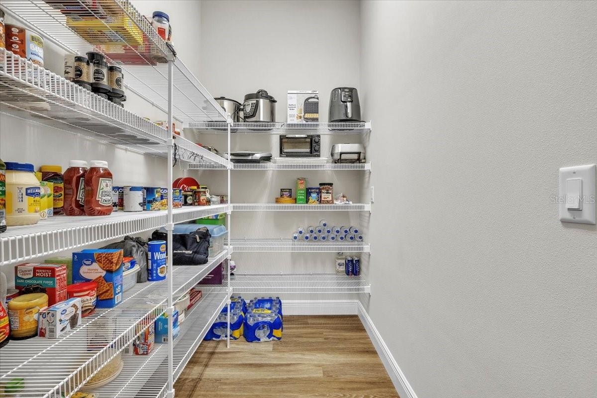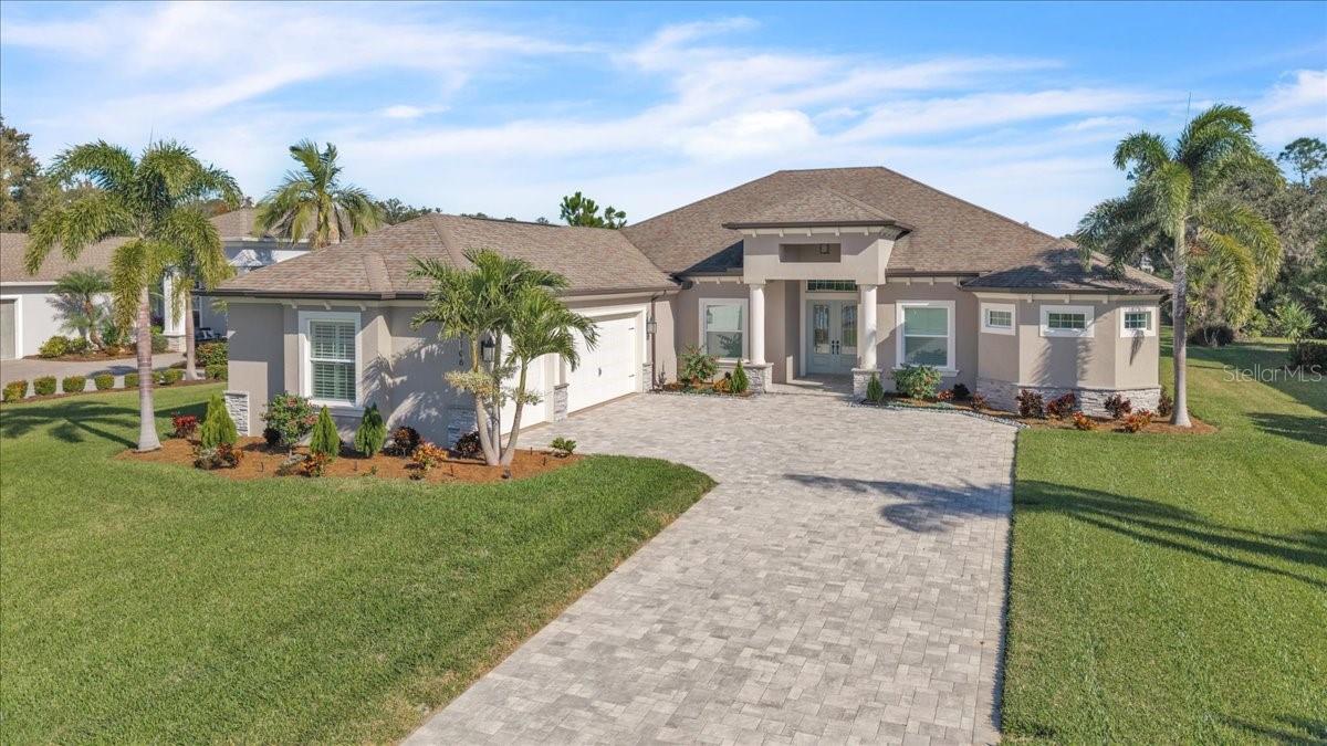 Nearly new former model home in the highly sought-after Twin Rivers community with serene lake views! This exceptional 3-bedroom, 3-bath residence with a 3-car garage offers a bright open-concept layout, high ceilings, and designer finishes throughout. The stunning kitchen anchors the home and is complemented by a hidden walk-in pantry, ideal for entertaining and everyday living. The spacious floor plan includes a private office and a versatile bonus room. Designed for comfort, efficiency, and peace of mind, the home features icing insulation, hurricane-impact windows and doors, and no flooding issues to worry about. The resort spa-inspired primary bathroom is a true retreat, featuring a freestanding soaking tub surrounded by natural rock tile, a temperature-controlled shower system, and an oversized rain shower head, creating a luxurious, spa-like experience at home. Outdoor living is equally impressive with a large covered lanai and panoramic screen enclosure, offering tranquil lake views and seamless indoor-outdoor enjoyment. The garage is a standout with epoxy flooring, custom built-in cabinetry, and a split-unit A/C, ideal for a workshop, gym, or climate-controlled storage. Meticulously maintained and thoughtfully upgraded, this former model home delivers luxury, functionality, and efficiency in one exceptional offering. Schedule your private showing today—this remarkable Twin Rivers home will not last.
