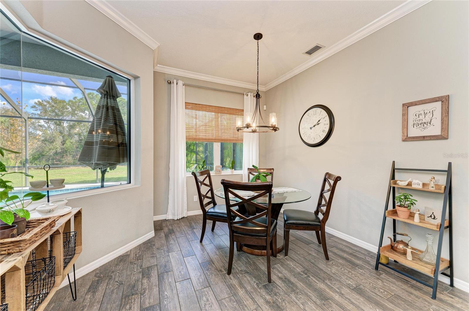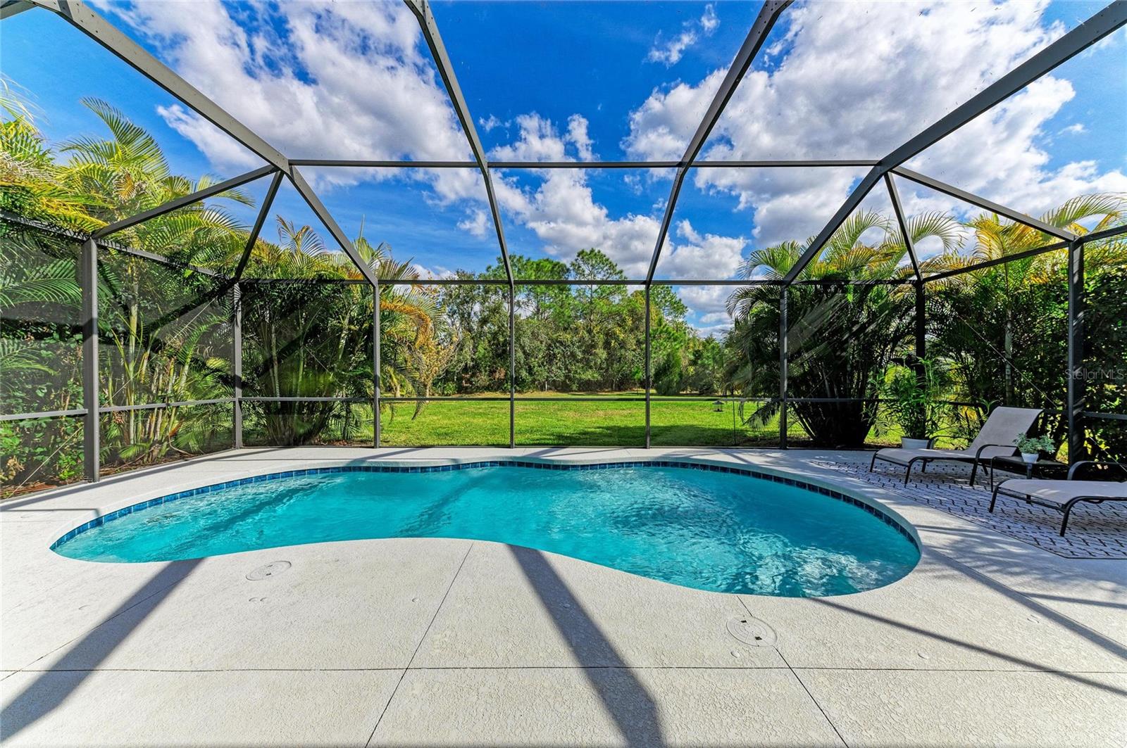 3 Bedrooms PLUS HUGE DEN Pool Home with 3 Car Garage! Welcome to this stunning quality-built and highly desired Aruba model by Medallion Home, a beautifully designed single-family residence that blends elegance, space, and indoor-outdoor living on an expansive 0.60 acre oversized lot with a serene conservation view. From the moment you arrive, you are greeted by double leaded-glass entry doors and a breathtaking barrel-tray ceiling in the foyer, setting the tone for the exceptional craftsmanship found throughout the home. Inside, the open and airy great room features soaring 10-foot ceilings with tray ceiling details, seamlessly flowing into the dining room and an impressive chef’s kitchen—perfect for entertaining. The kitchen is bright and expansive, showcasing stainless steel appliances with built-in microwave and oven, a separate cooktop, beautiful cabinetry with lighting, and a massive island that comfortably seats four. A spacious and charming breakfast nook with bay windows overlooks the sparkling pool and lush backyard, creating the perfect place to enjoy morning coffee. Triple sliding glass doors fully open to the outdoor living area with peaceful conservation views and privacy. The outdoor lanai space is already pre-plumbed with electrical and plumbing, offering endless potential for a future outdoor kitchen. This thoughtfully designed split floor plan includes three bedrooms plus a large office with double doors located at the front of the home—ideal for remote work or a private retreat. The two secondary bedrooms feature stylish custom concrete flooring, while arched windows at the front of the home with plantation shutters add architectural charm. The primary suite is a true sanctuary, offering two large walk-in closets and a luxurious spa-like bathroom with dual sinks, a vanity with a bank of drawers, a large soaking tub, and an exceptionally large walk-in shower. Additional highlights include a spacious laundry room with cabinets and a utility sink, and a three-car garage with epoxy floors, high ceilings and built-in storage from the ceiling, providing ample space for vehicles, hobbies, and organization. Located in the highly desirable Twin Rivers community, residents enjoy access to a park, picnic areas, long walking trails and a boat ramp into Gamble Creek, perfect for launching your boats, kayaks or canoes and embracing Florida’s outdoor lifestyle. No CDDs here and a low HOA! This home offers the perfect combination of luxury, functionality, and location—an exceptional opportunity to own a refined retreat in one of the area’s most sought-after communities.