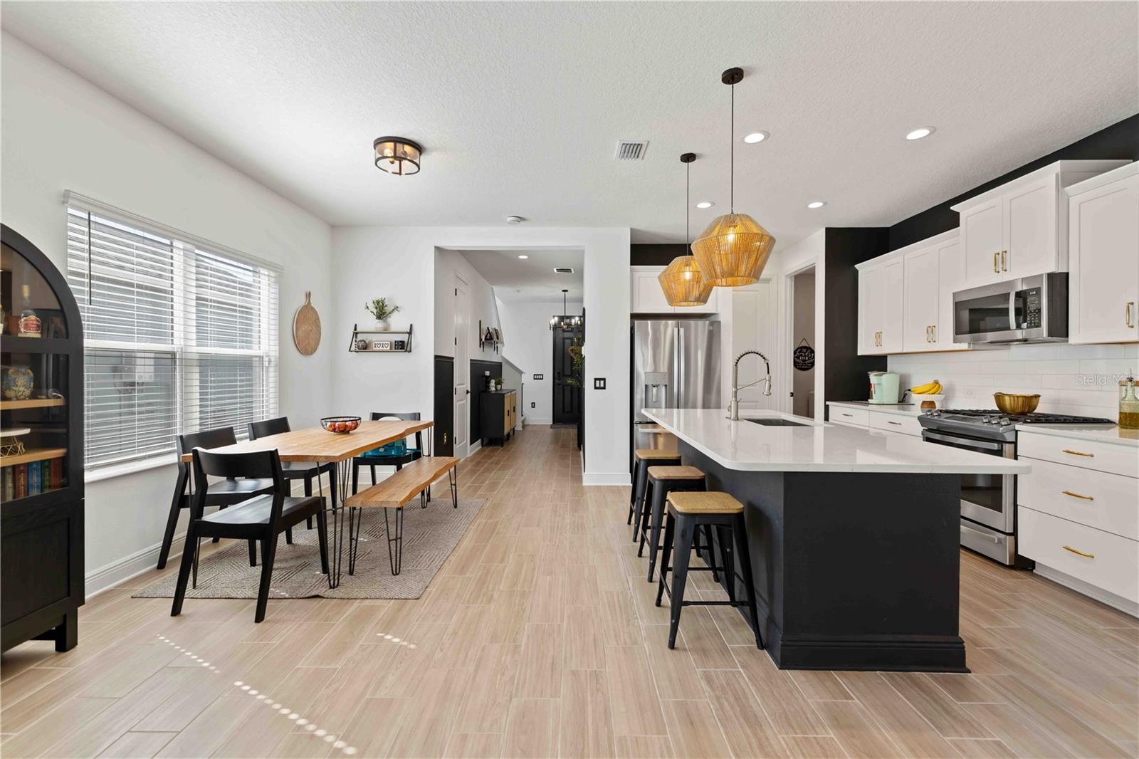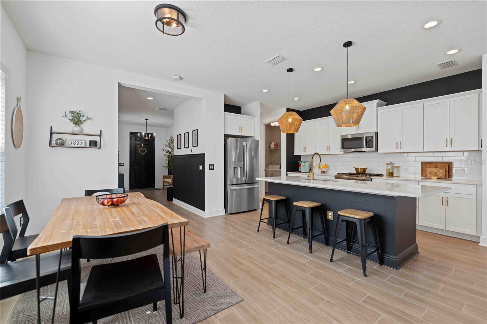 Welcome to 10116 Cross River Trail—an almost-new, 2025-built home that’s still under the builder’s warranty and truly move-in ready. Located in Wildleaf at North River Ranch, this 4-bedroom, 2.5-bath home is filled with thoughtful upgrades and offers the fresh, modern feel today’s buyers are looking for. From the moment you step inside, you’ll notice the light and bright interior, custom accent walls, stylish board-and-batten detailing, and upgraded light fixtures and ceiling fans that deliver a designer look—without the designer price tag. Loved the model home but didn’t have the time or energy to recreate it? Say less—this one is already done for you. The spacious layout features two separate living areas, perfect for movie nights, a playroom, home office, or entertaining without everyone on top of each other. Bonus: no carpet on the first floor. The kitchen is a standout with soft-close cabinetry, ample storage, and gas cooking with gas appliances, all flowing seamlessly into the main living space for everyday living and entertaining. The primary suite is conveniently located on the first floor, offering generous space, a large walk-in closet, and comfortable separation from the secondary bedrooms—making busy mornings a breeze. Step outside to the screened lanai, already pre-plumbed for an outdoor kitchen, ready to elevate your Florida lifestyle with minimal effort. Add the epoxied garage floor, and this home checks both the style and functionality boxes. As part of North River Ranch, residents enjoy access to three amenity centers, including the brand-new Camp Creek. Zoned for Barbara Harvey Elementary School and the future middle school, and featuring an incredibly low HOA of just $108 per year, this home offers exceptional value. If you want “like new” without the wait, this is it.