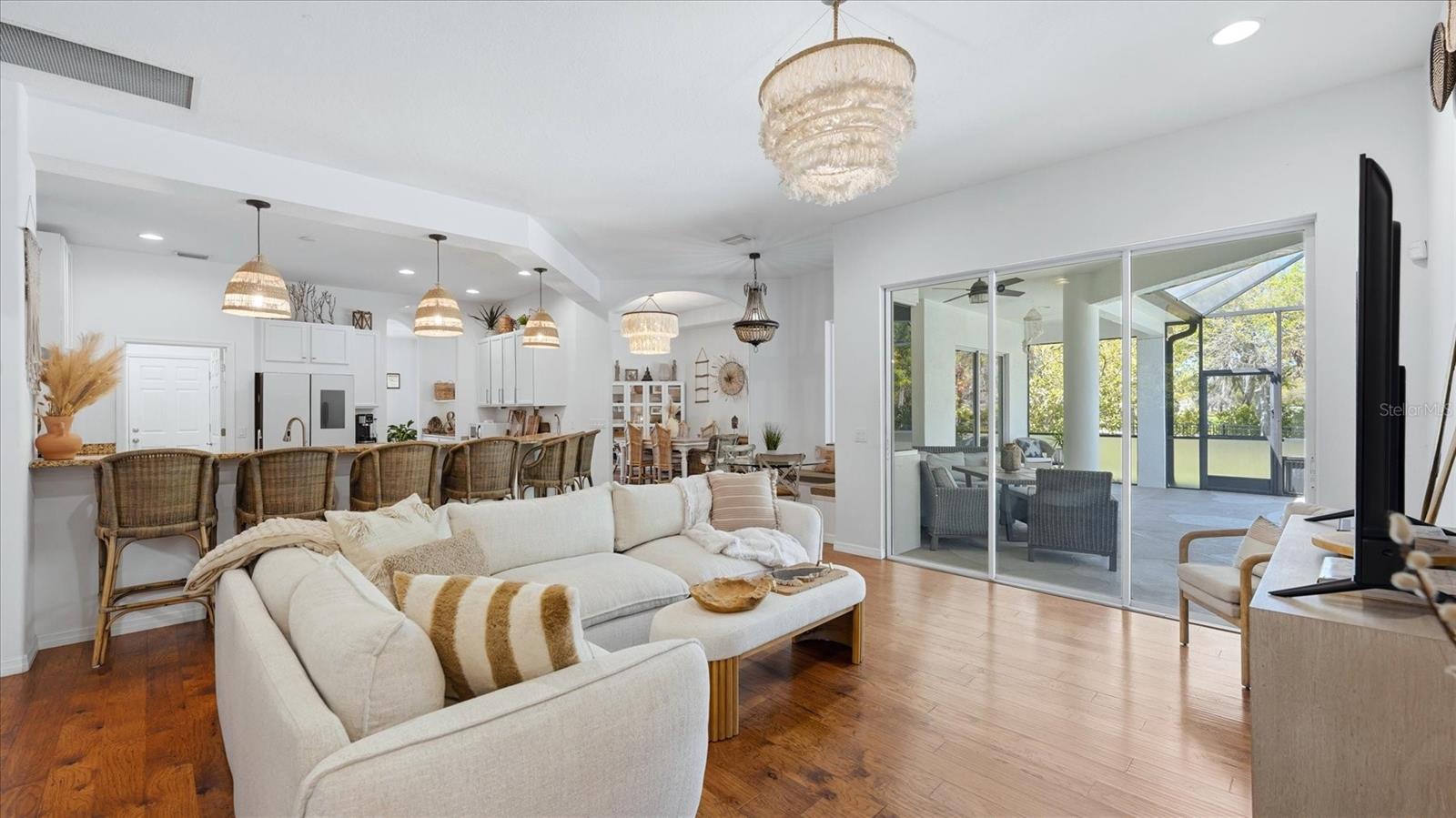 Poolside living, wide-open water views, and a bright, expansive layout set the tone in this 4-bedroom, 3-bath home with a dedicated den and a NEW ROOF (2023), perfectly positioned on a quiet, oversized cul-de-sac lot. Fresh exterior paint, updated landscaping, and the overall care throughout the property create a strong first impression from the moment you arrive. The double-door entry opens to a bright foyer with the den just off the front of the home, offering a flexible space for a home office, reading room, playroom, or quiet sitting area. Nearby, the formal dining room provides a comfortable setting for both everyday meals and special gatherings, with high ceilings and warm flooring that continue into the main living areas. The formal dining room and first living area flow seamlessly together, creating an inviting space for gathering and entertaining. Farther into the home, the kitchen, breakfast nook, and second living area come together in a way that feels connected yet distinct. The kitchen features granite countertops, abundant white cabinetry, newer appliances, and a long breakfast bar that adds extra seating and serving space. The breakfast nook is wrapped in windows and built-in bench seating, bringing in natural light and giving this space its own inviting feel. Both living areas also feature sliding glass doors that open directly to the lanai, extending the living space and keeping the pool and water view part of the everyday experience. The primary suite is a true retreat, with private sliding glass doors that open directly to the screened lanai and pool, creating a seamless connection to the outdoor space. Two walk-in closets provide ample storage, while the en suite bathroom includes dual vanities, a soaking tub, and a separate walk-in shower. The additional bedrooms are thoughtfully positioned on the opposite side of the home, creating a layout that works well for guests, family, or flexible use. Two additional full bathrooms feature wide vanities and granite countertops, providing both function and convenience. The laundry room is located just off the kitchen and includes extensive built-in cabinetry to keep everything organized and easily accessible. The 3-car garage offers exceptional space for vehicles, storage, golf carts, bikes, tools, beach gear, and all the extras that come with everyday life. Out back, the screened lanai opens into your own Florida-style retreat. The covered area creates space for dining, lounging, and grilling, while the pool sits at the center beneath the expansive screen enclosure. Beyond the lanai, the fenced backyard stretches toward a peaceful water view and a backdrop of greenery, adding a sense of openness and a view that stands out. River Plantation offers residents a community pool, basketball court, tennis courts, and nature trails, adding even more to the lifestyle this home already delivers. With its spacious layout, beautiful updates, private pool, and oversized cul-de-sac setting, this is a property that brings together comfort, function, and the kind of outdoor living that makes Florida feel so special.