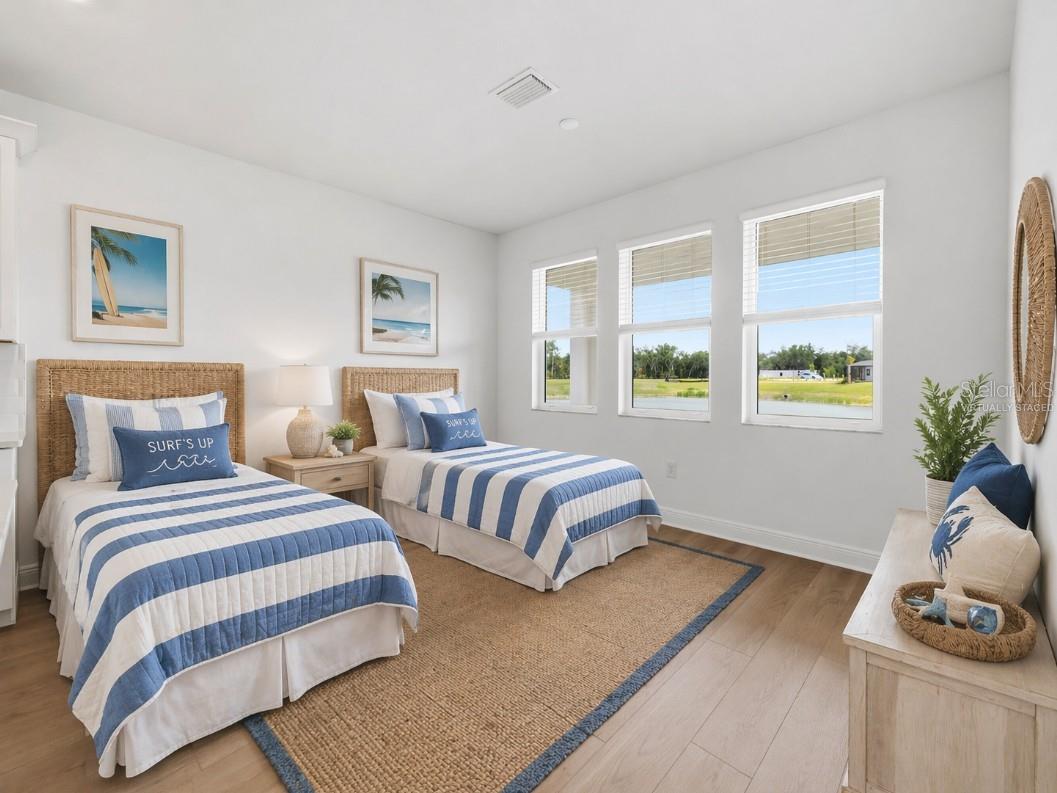 Welcome to The Madison by MI Homes at Creek’s Edge at Twin Rivers — a home that truly checks all the boxes, and honestly, Parrish has seen nothing like this. With 5 bedrooms, 4 bathrooms, and a spacious two-story layout, this one offers the perfect blend of elegance, comfort, and everyday functionality. The first floor is beautifully designed for both everyday living and entertaining, with a defined dining room and a gourmet kitchen featuring gorgeous finishes, premium cabinetry, and a large island that naturally becomes the heart of the home. Large sliding glass doors lead out to the lanai, making it easy to enjoy peaceful Florida evenings and bring the outdoors in. There is also a first-floor bedroom and full bathroom, making this layout ideal for multigenerational living or guests. Hurricane impact windows add safety, security, and energy efficiency throughout the home. Upstairs, the owner’s suite is a true retreat with plenty of room to unwind, along with double vanities and a private water closet. You’ll also find three additional bedrooms, two full bathrooms, and a flexible bonus space that could easily serve as a playroom, home office, media room, or second living area. One of the bedrooms features its own ensuite bath, and all include walk-in closets. Luxury tile in the owner’s suite adds even more style, class, and ambiance. And then there is the lifestyle. Located in Twin Rivers, this home offers the space so many buyers are craving, with larger homesites, a more spread-out feel, and a community known for its natural beauty, custom feel, and strong sense of neighborhood. Twin Rivers is loved for its winding roads, mature scenery, and the kind of setting that gives you room to breathe while still being close to everything Parrish has to offer. Every inch of The Madison feels spacious, elevated, and thoughtfully designed for the way people really live today. Stylish, functional, and incredibly inviting, this is the kind of home that stands out — and truly, Parrish has seen nothing like it.