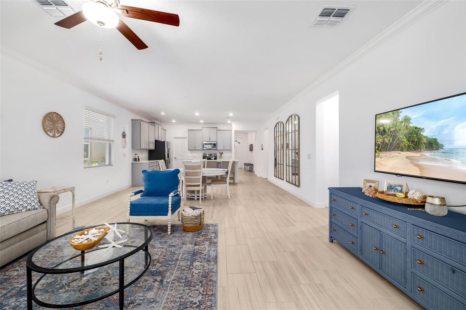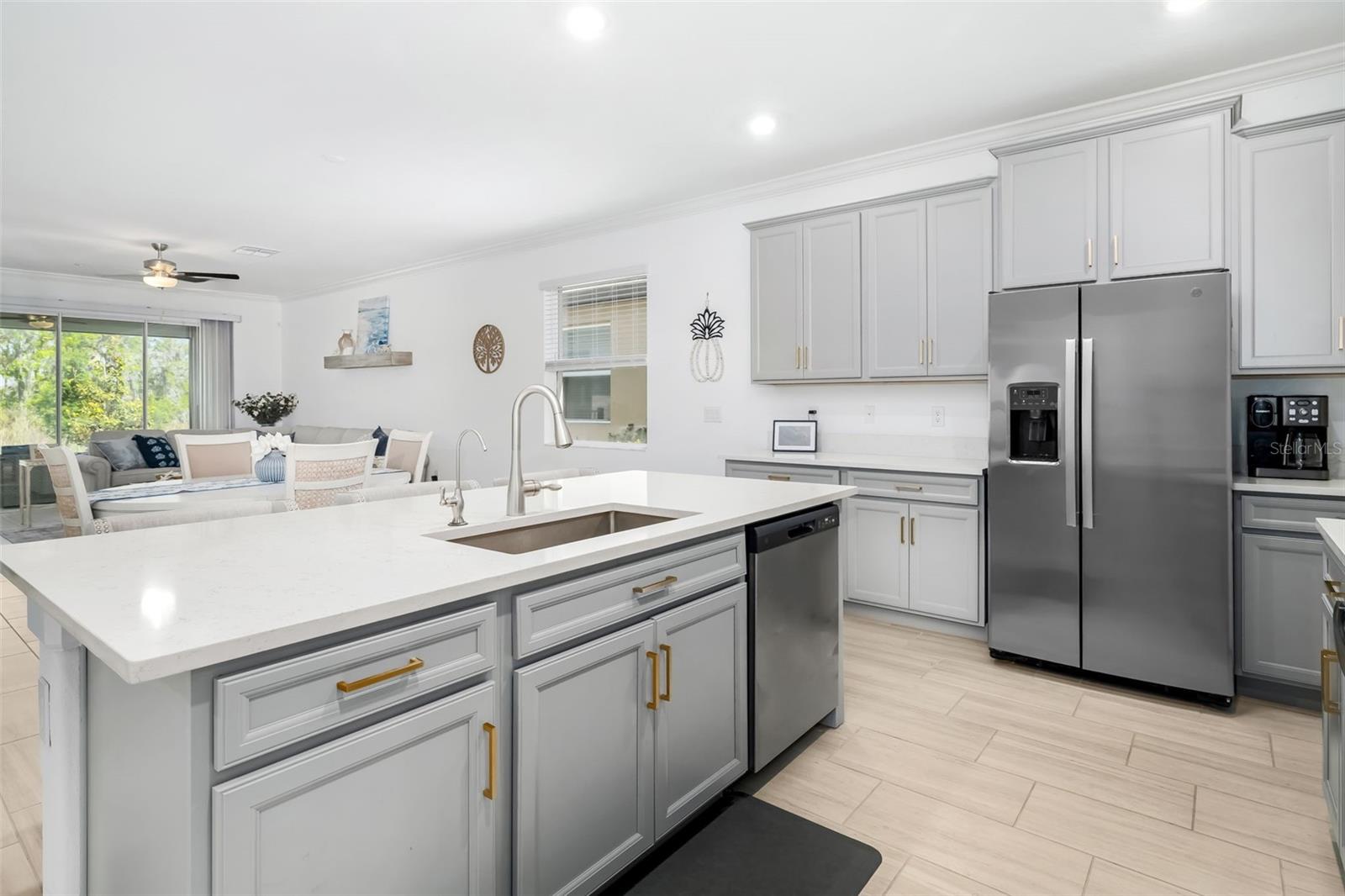 Are you exasperated with the traffic along 301 and Moccasin Wallow? Have you counted the lights along Moccasin Wallow - more coming -- Well golf Course Road is off of Ft Hamer and then you turn into Twin Rivers and straight down to the Enclave. No waiting a long time to get out of or into the sub division - Welcome to The Enclave at Twin Rivers, a sought-after gated neighborhood tucked within the larger Twin Rivers community. Built by Lennar, this enclave offers spacious single-family homes with over 2,000 sq. ft. and access to exceptional resort-style amenities. Residents enjoy the River House at Twin Rivers where you can launch your kayak or boat and explore the river, plus picnic areas, playgrounds, scenic walking trails, basketball courts, tennis courts, sports fields, soccer fields, and abundant open green space. And now to the home itself. This beautifully designed residence offers a rare 3-car garage configuration with a separate third bay near the front entry—ideal for a golf cart, motorcycle, workshop, craft room, fitness space, or extra storage. Step inside to discover a flexible front den that can serve as a home office, media room, or easily become a 4th bedroom. A convenient guest half bath is perfectly placed nearby. Continue into the heart of the home where a modern kitchen with a large center island opens seamlessly to the spacious family room—perfect for entertaining and everyday living. Sliding doors lead to the screened lanai overlooking a peaceful creek setting, creating the perfect place for morning coffee or evening relaxation. The private primary suite is thoughtfully tucked away, while two additional bedrooms and a full bath are located on the opposite side of the home for comfort and privacy. The gated entrance to The Enclave closes nightly for added peace of mind, then reopens each morning for easy access to daily life. This is more than a home—it is Florida living with space, security, nature, and amenities all in one of Parrish’s most desirable communities.