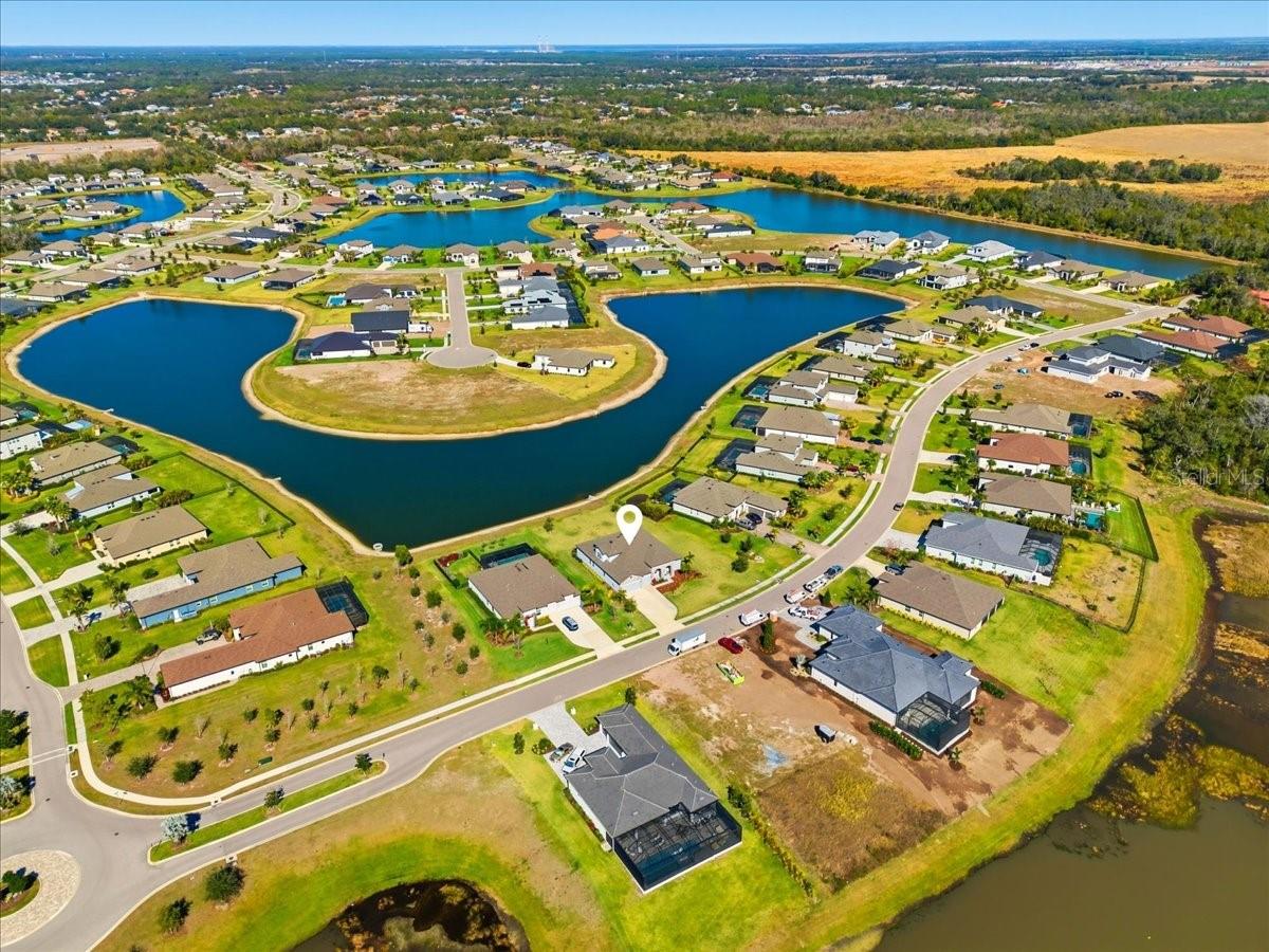 One or more photo(s) has been virtually staged. Welcome to Twin Rivers, where upscale living, nature, and resort-style amenities come together seamlessly. A home with an unmatched lifestyle centered around recreation, nature, and community connection. Residents enjoy playgrounds, sports courts, miles upon miles of scenic walking/hiking trails, parks, and private access to the majestic Manatee River—perfect for kayaking, fishing, and outdoor adventures. Conveniently located near Lakewood Ranch, Sarasota, St. Petersburg, and Tampa, Twin Rivers offers easy access to top-rated schools, fine dining, and luxury shopping experiences, — while maintaining the tranquility of a private, nature-inspired setting. You truly haven’t lived until your toes have touched the warm nurturing white sand beaches of Florida’s Gulf coast! This stunning 4 bedroom and 4 bath residence offers an elegant balance of modern design, spacious comfort, and elevated Florida living. Wake up to soak in serene views of the picturesque lake from the wall of glass facing your private backyard. Whether it’s morning coffee or evening vino, you’ll never regret time spent admiring the views. Inside, expansive open-concept living areas create a bright, sophisticated atmosphere ideal for both everyday relaxation and stylish entertaining. The heartbeat of the home is the gourmet chef's kitchen with a sprawling island, double ovens, soft-close lux cabinetry, a designer backsplash, and statement pendant lighting. Throughout the home, sky-high ceilings appointed with a modern array of fixtures and soaring 9 foot doors envelop you in a cozy and inviting retreat. Each beautifully appointed suite will make your guests feel like they’re being pampered in hotel quality accommodations. This is more than a home. It’s a lifestyle defined by comfort, connection, and Florida luxury. (Pool pictures are renderings.)