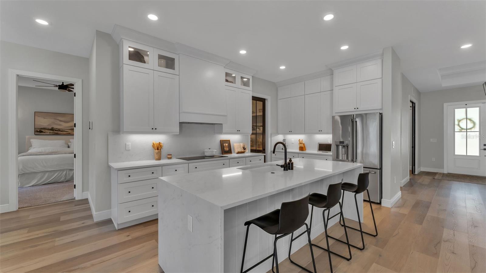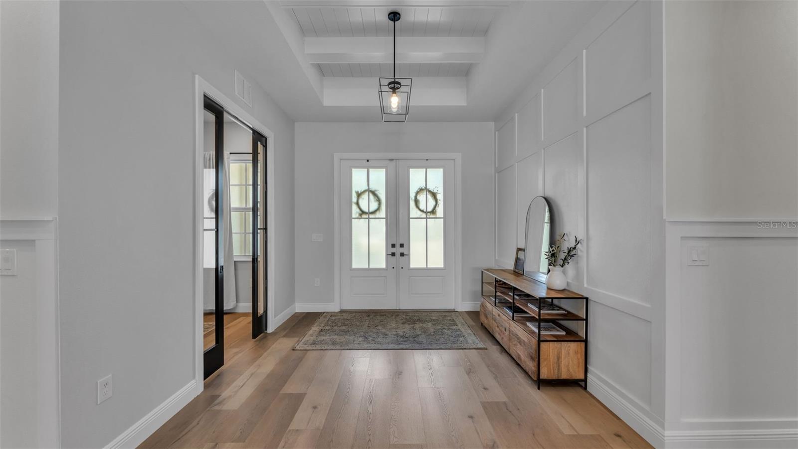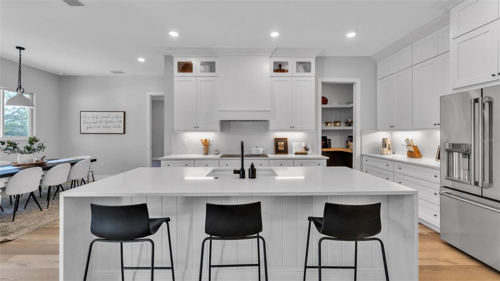 Beautifully maintained and thoughtfully custom built by the owner himself, this 4 bedroom, 3 bath home with a 3 car garage was designed with both everyday living and entertaining in mind. From the moment you pull up, you can feel the care that has gone into it. Impact windows, spray foam block insulation, 8 foot garage doors, and soffit lighting add efficiency, durability, and curb appeal. The covered entry, paver driveway, mature trees, and manicured landscaping create such a welcoming first impression, and the generous lot backs up to conservation for extra privacy with plenty of room to add a future pool and outdoor living space. Inside, the open floor plan feels bright and inviting with clean architectural lines and thoughtful details throughout. The foyer welcomes you with soaring ceilings, beautiful wall detailing, and natural light pouring in through double glass front doors. Decorative beams and a statement light fixture add warmth and character right away. The living room is open yet cozy, anchored by a tray ceiling with wood accents, a sleek fireplace with custom built-ins, and large sliding glass doors that lead seamlessly to the covered patio and backyard. It is a space that truly feels like the heart of the home. The kitchen blends timeless style with everyday function. A spacious island, ceiling height cabinetry, under cabinet lighting, sleek countertops, stainless steel appliances, matte charcoal fixtures, recessed lighting, and a walk in pantry make it as practical as it is beautiful. Just off the kitchen, the butler’s pantry adds even more storage and prep space with wood countertops, custom cabinetry, open shelving, a wall oven, and a beverage fridge. One of my favorite features is the dedicated playroom and flex space. Whether you need a playroom, media room, workout space, or second living area, this room gives you the flexibility to truly make the home work for your lifestyle. The primary suite feels like a private retreat with a spa inspired bath that includes a freestanding soaking tub, a full tile feature wall, an expansive walk-in shower with glass enclosure and pebble style flooring, and a long dual sink vanity with arched mirrors and modern fixtures. The additional bedrooms are bright, generously sized, and give great closet space. The guest bath is finished beautifully with a stone countertop vanity, matte charcoal fixtures, an arched mirror, and a tiled tub and shower combination. Everyday life is made easier with a custom mudroom and laundry area featuring floor to ceiling built-ins and a warm wood folding counter to keep everything organized. There is also a dedicated home office with built in cabinetry and a spacious wood desktop, creating a polished and functional workspace. Located near the Manatee River and Gamble Creek, the community provides walking trails, picnic areas, parks, sports fields, a basketball court, and wide open green space, bringing nature and recreation right to your doorstep. Every detail in this home was intentionally designed to combine comfort, style, and functionality. You truly need to see it in person to appreciate it. Schedule your private showing and come experience it for yourself.