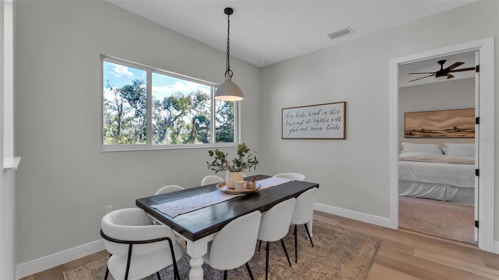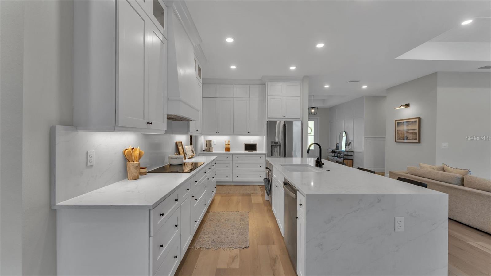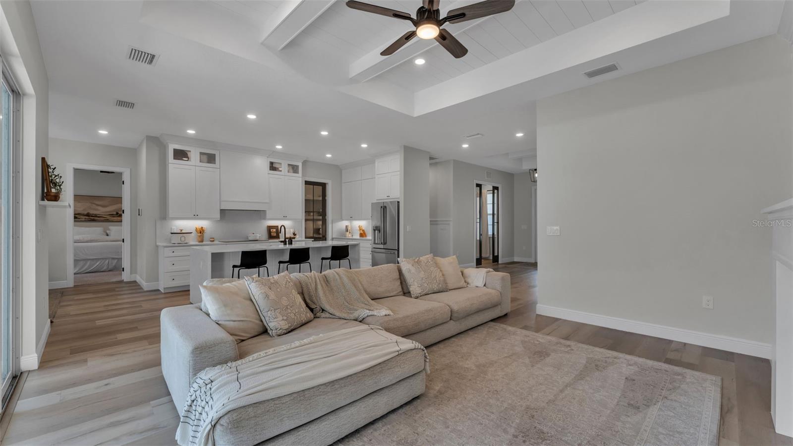 Beautifully maintained and thoughtfully custom built by the owner himself, this 4 bedroom, 3 bath home with a 3 car garage was designed with both everyday living and entertaining in mind. From the moment you pull up, you can feel the care that has gone into it. Impact windows, spray foam block insulation, 8 foot garage doors, and soffit lighting add efficiency, durability, and curb appeal. The covered entry, paver driveway, mature trees, and manicured landscaping create such a welcoming first impression, and the generous lot backs up to conservation for extra privacy with plenty of room to add a future pool and outdoor living space. Inside, the open floor plan feels bright and inviting with clean architectural lines and thoughtful details throughout. The foyer welcomes you with soaring ceilings, beautiful wall detailing, and natural light pouring in through double glass front doors. Decorative beams and a statement light fixture add warmth and character right away. The living room is open yet cozy, anchored by a tray ceiling with wood accents, a sleek fireplace with custom built-ins, and large sliding glass doors that lead seamlessly to the covered patio and backyard. It is a space that truly feels like the heart of the home. The kitchen blends timeless style with everyday function. A spacious island, ceiling height cabinetry, under cabinet lighting, sleek countertops, stainless steel appliances, matte charcoal fixtures, recessed lighting, and a walk in pantry make it as practical as it is beautiful. Just off the kitchen, the butler’s pantry adds even more storage and prep space with wood countertops, custom cabinetry, open shelving, a wall oven, and a beverage fridge. One of my favorite features is the dedicated playroom and flex space. Whether you need a playroom, media room, workout space, or second living area, this room gives you the flexibility to truly make the home work for your lifestyle. The primary suite feels like a private retreat with a spa inspired bath that includes a freestanding soaking tub, a full tile feature wall, an expansive walk-in shower with glass enclosure and pebble style flooring, and a long dual sink vanity with arched mirrors and modern fixtures. The additional bedrooms are bright, generously sized, and give great closet space. The guest bath is finished beautifully with a stone countertop vanity, matte charcoal fixtures, an arched mirror, and a tiled tub and shower combination. Everyday life is made easier with a custom mudroom and laundry area featuring floor to ceiling built-ins and a warm wood folding counter to keep everything organized. There is also a dedicated home office with built in cabinetry and a spacious wood desktop, creating a polished and functional workspace. Located near the Manatee River and Gamble Creek, the community provides walking trails, picnic areas, parks, sports fields, a basketball court, and wide open green space, bringing nature and recreation right to your doorstep. Every detail in this home was intentionally designed to combine comfort, style, and functionality. You truly need to see it in person to appreciate it. Schedule your private showing and come experience it for yourself.