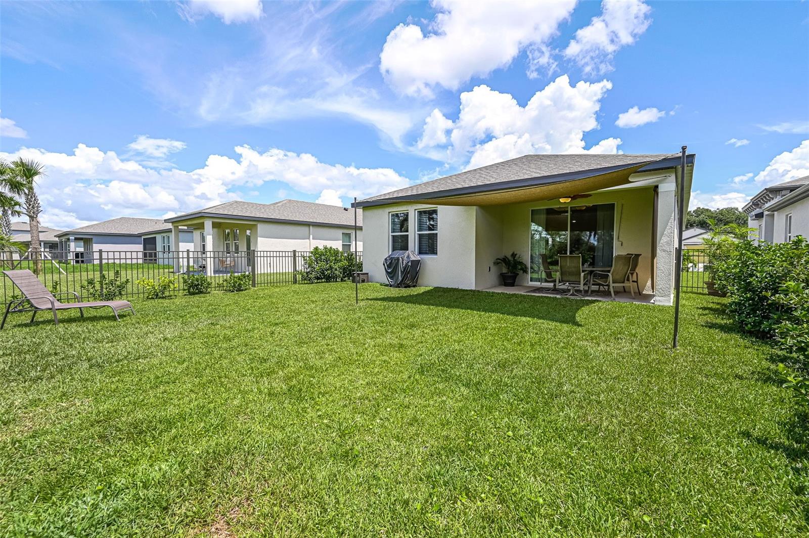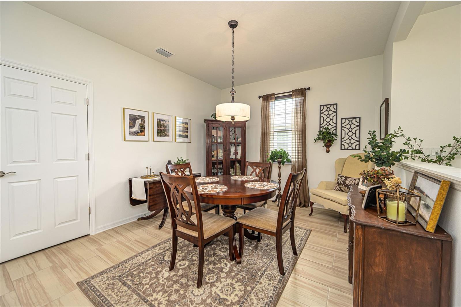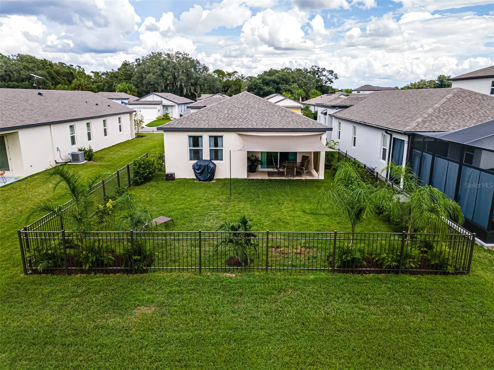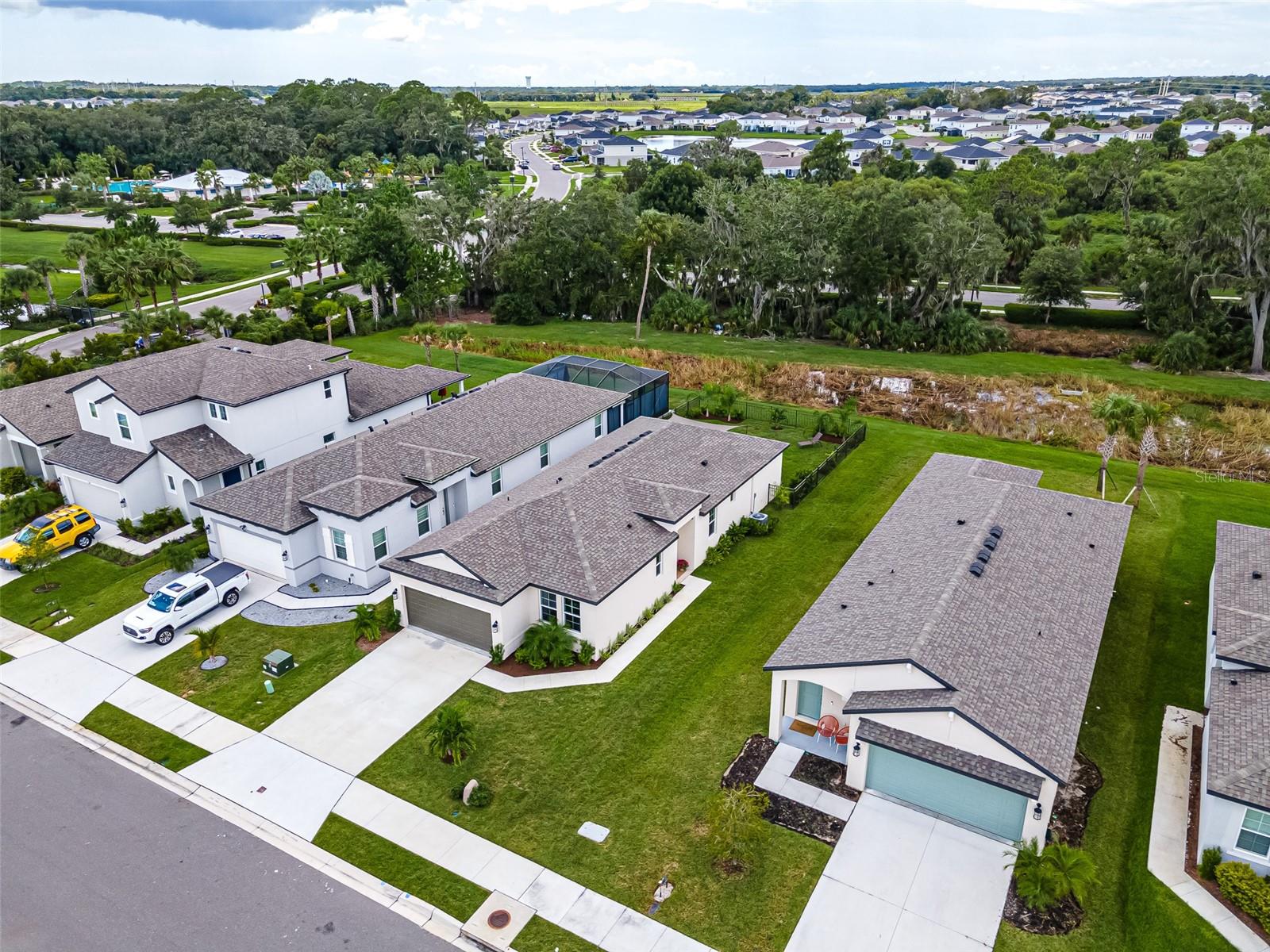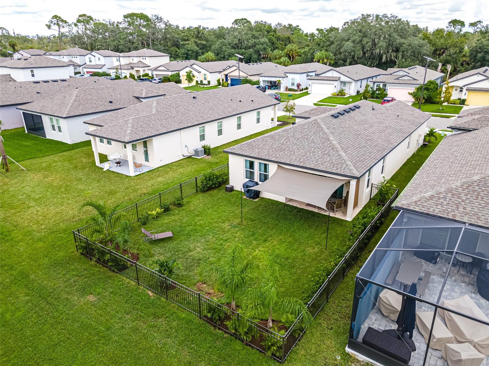 Welcome to this stunning move in ready energy efficient M/I home in the highly sought after gated enclave within Summerwoods. This impressive 3 BR/2BA home offers just over 1512 sq ft of meticulously designed living space with peaceful conservation views offering a serene outdoor escape. Why wait for new construction delays or be added to builders' waitlists, this gated section of Summerwoods consists of just over 142 homes and all construction is completed. As you enter the main foyer you’re greeted with upgraded gorgeous tile plank flooring throughout and a beautiful kitchen that is the centerpiece of this home. The modern kitchen is a chef’s delight and is perfectly designed for entertaining in mind with a large quartz island, beautiful backsplash to compliment the elegant quartz countertops, stainless steel appliances, 42” cabinets all while overlooking the dining space and great room. The great room has been fitted with beautiful coffered tray ceilings, recessed lighting with an upgraded dimmer switch and sliding glass doors that opens up to a peaceful and private outdoor living space. The large primary suite just off the great room has an en suite bathroom with his and her sinks, walk-in shower, separate toilet room, spacious walk-in closet and beautiful tray ceilings. The property features upgraded 2” blinds and 3 1/4” baseboards throughout, beautiful drapery, timeless light fixtures, ceiling fans and a well appointed laundry room with cabinets for extra storage. Enjoy seamless indoor-outdoor living with a fenced in backyard, newly installed shade sail awning, beautiful new landscaping in the front and back of the home and an upgraded French drain system. The garage has been equipped with a new epoxy floor, utility sink for convenience, hurricane shutters for extra peace of mind and an added overhead storage above the garage, perfect for storing holiday decor. Situated conveniently to I-75 and 301, this property offers quick access to white sandy beaches and nearby cities such as Bradenton, Sarasota, Tampa, and St Petersburg. The surrounding area of Parrish continues to grow with new dining options, shopping centers, excellent schools, and a future HCA 200-bed hospital with a new Publix shopping center. The community of Summerwoods features a resort-style pool, splash pad, dog park, pavilion and shaded nature and walking trails perfect for daily exercise. Don’t miss this opportunity to make this incredible Summerwoods home yours today.