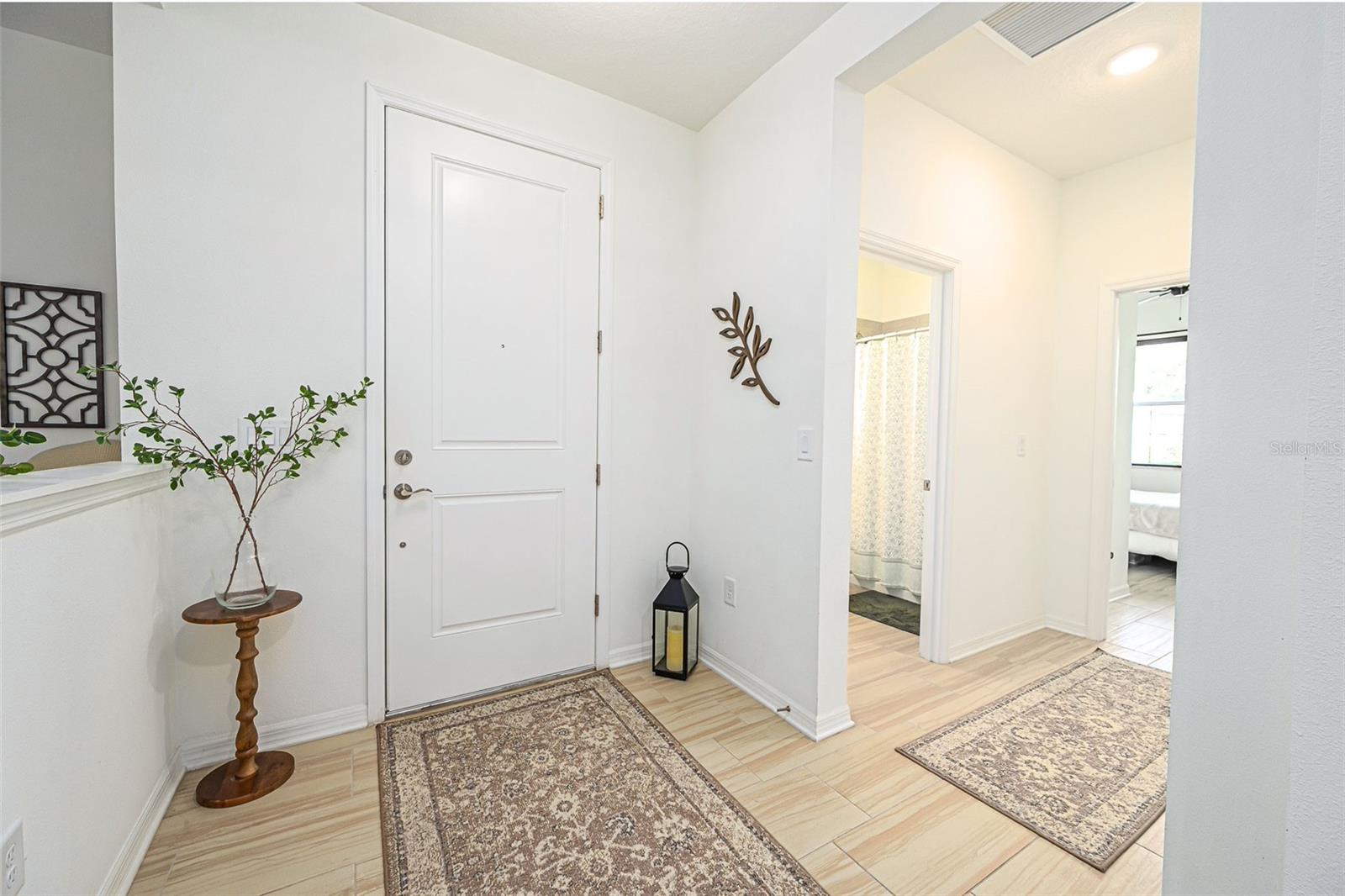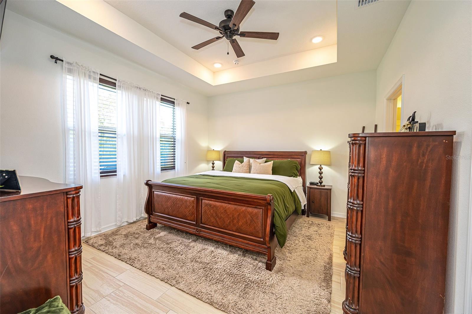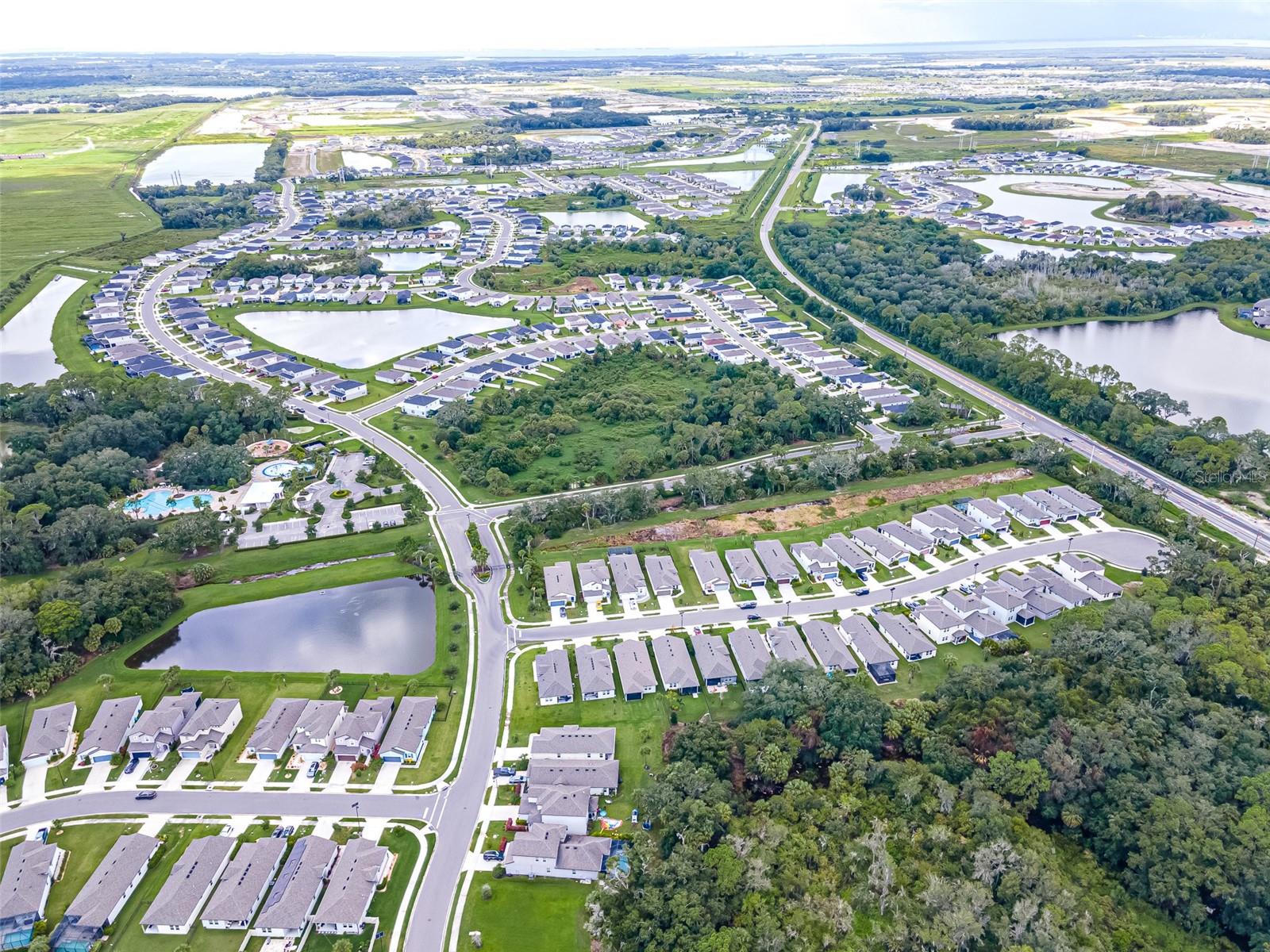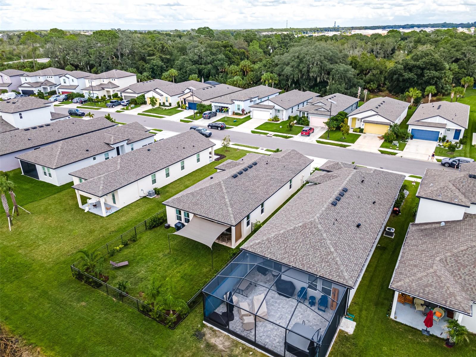 Welcome to this stunning move in ready energy efficient M/I home in the highly sought after gated enclave within Summerwoods. This impressive 3 BR/2BA home offers just over 1512 sq ft of meticulously designed living space with peaceful conservation views offering a serene outdoor escape. Why wait for new construction delays or be added to builders' waitlists, this gated section of Summerwoods consists of just over 142 homes and all construction is completed. As you enter the main foyer you’re greeted with upgraded gorgeous tile plank flooring throughout and a beautiful kitchen that is the centerpiece of this home. The modern kitchen is a chef’s delight and is perfectly designed for entertaining in mind with a large quartz island, beautiful backsplash to compliment the elegant quartz countertops, stainless steel appliances, 42” cabinets all while overlooking the dining space and great room. The great room has been fitted with beautiful coffered tray ceilings, recessed lighting with an upgraded dimmer switch and sliding glass doors that opens up to a peaceful and private outdoor living space. The large primary suite just off the great room has an en suite bathroom with his and her sinks, walk-in shower, separate toilet room, spacious walk-in closet and beautiful tray ceilings. The property features upgraded 2” blinds and 3 1/4” baseboards throughout, beautiful drapery, timeless light fixtures, ceiling fans and a well appointed laundry room with cabinets for extra storage. Enjoy seamless indoor-outdoor living with a fenced in backyard, newly installed shade sail awning, beautiful new landscaping in the front and back of the home and an upgraded French drain system. The garage has been equipped with a new epoxy floor, utility sink for convenience, hurricane shutters for extra peace of mind and an added overhead storage above the garage, perfect for storing holiday decor. Situated conveniently to I-75 and 301, this property offers quick access to white sandy beaches and nearby cities such as Bradenton, Sarasota, Tampa, and St Petersburg. The surrounding area of Parrish continues to grow with new dining options, shopping centers, excellent schools, and a future HCA 200-bed hospital with a new Publix shopping center. The community of Summerwoods features a resort-style pool, splash pad, dog park, pavilion and shaded nature and walking trails perfect for daily exercise. Don’t miss this opportunity to make this incredible Summerwoods home yours today.