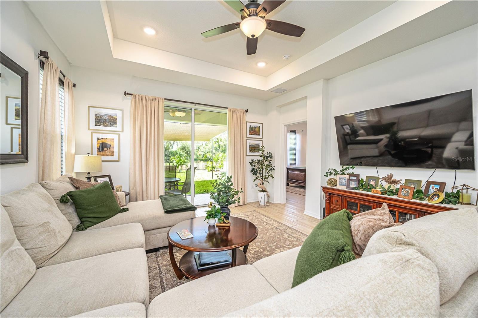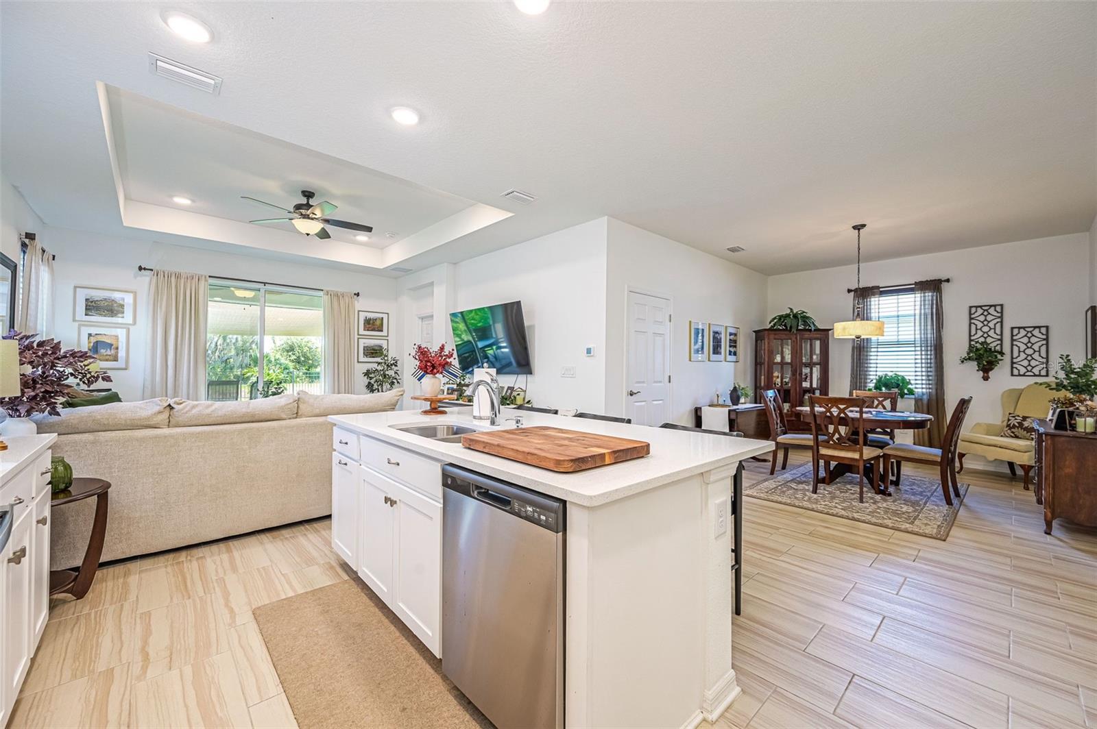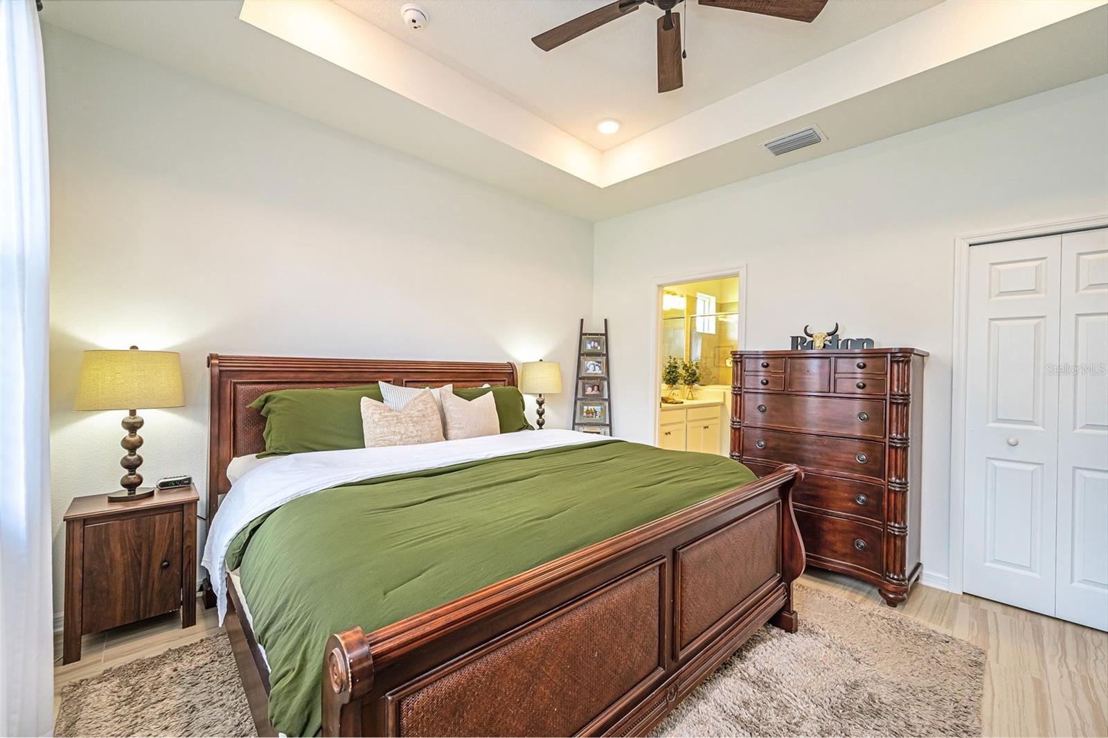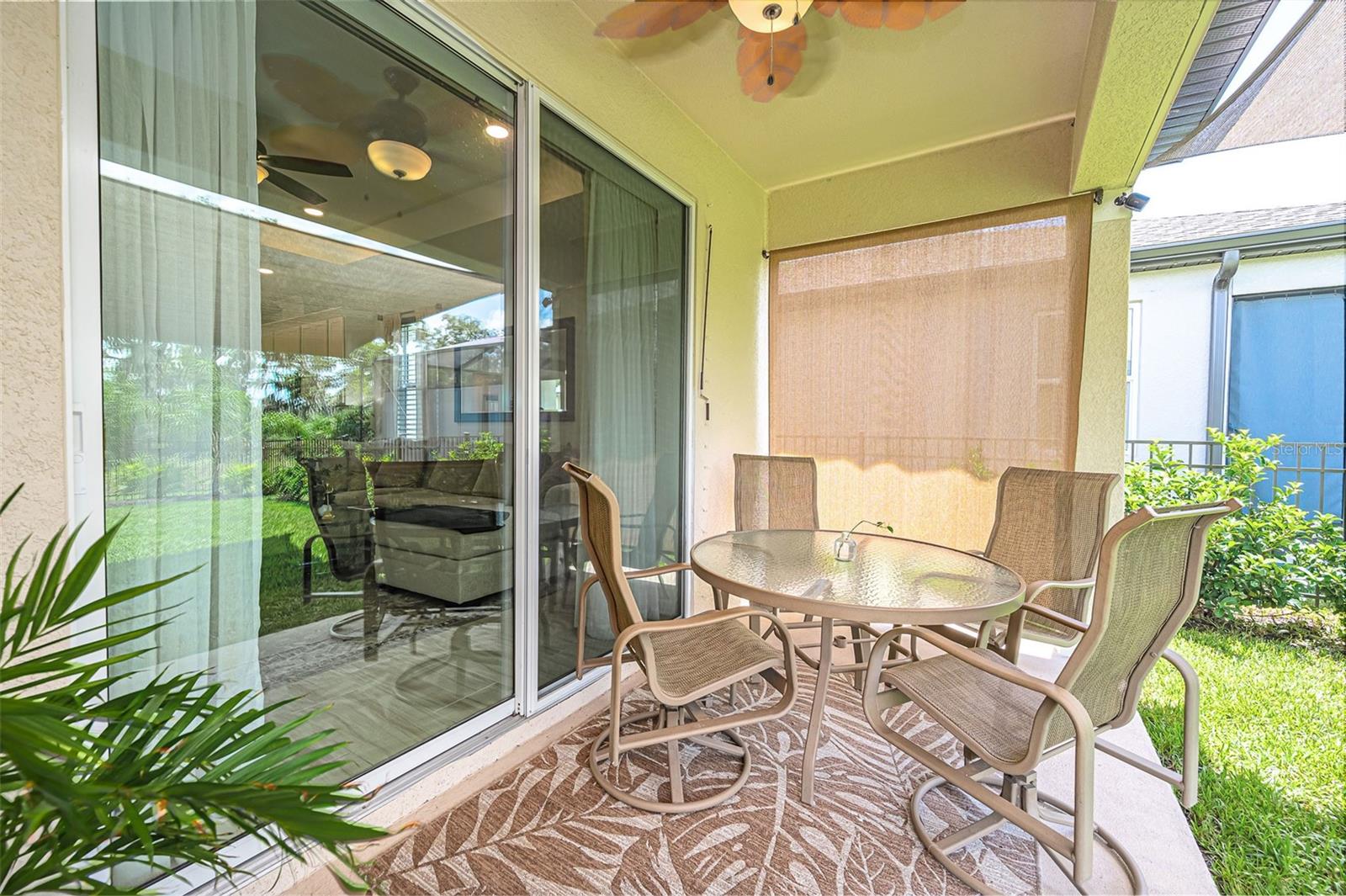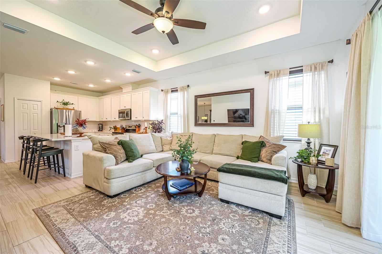 Welcome to this stunning move in ready energy efficient M/I home in the highly sought after gated enclave within Summerwoods. This impressive 3 BR/2BA home offers just over 1512 sq ft of meticulously designed living space with peaceful conservation views offering a serene outdoor escape. Why wait for new construction delays or be added to builders' waitlists, this gated section of Summerwoods consists of just over 142 homes and all construction is completed. As you enter the main foyer you’re greeted with upgraded gorgeous tile plank flooring throughout and a beautiful kitchen that is the centerpiece of this home. The modern kitchen is a chef’s delight and is perfectly designed for entertaining in mind with a large quartz island, beautiful backsplash to compliment the elegant quartz countertops, stainless steel appliances, 42” cabinets all while overlooking the dining space and great room. The great room has been fitted with beautiful coffered tray ceilings, recessed lighting with an upgraded dimmer switch and sliding glass doors that opens up to a peaceful and private outdoor living space. The large primary suite just off the great room has an en suite bathroom with his and her sinks, walk-in shower, separate toilet room, spacious walk-in closet and beautiful tray ceilings. The property features upgraded 2” blinds and 3 1/4” baseboards throughout, beautiful drapery, timeless light fixtures, ceiling fans and a well appointed laundry room with cabinets for extra storage. Enjoy seamless indoor-outdoor living with a fenced in backyard, newly installed shade sail awning, beautiful new landscaping in the front and back of the home and an upgraded French drain system. The garage has been equipped with a new epoxy floor, utility sink for convenience, hurricane shutters for extra peace of mind and an added overhead storage above the garage, perfect for storing holiday decor. Situated conveniently to I-75 and 301, this property offers quick access to white sandy beaches and nearby cities such as Bradenton, Sarasota, Tampa, and St Petersburg. The surrounding area of Parrish continues to grow with new dining options, shopping centers, excellent schools, and a future HCA 200-bed hospital with a new Publix shopping center. The community of Summerwoods features a resort-style pool, splash pad, dog park, pavilion and shaded nature and walking trails perfect for daily exercise. Don’t miss this opportunity to make this incredible Summerwoods home yours today.