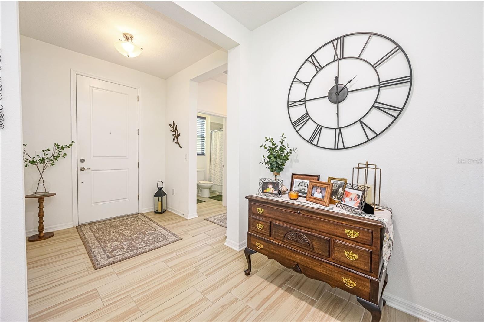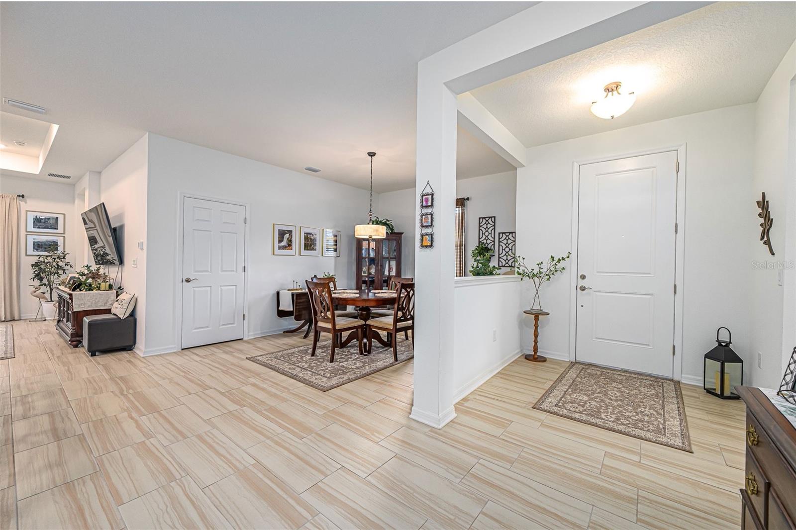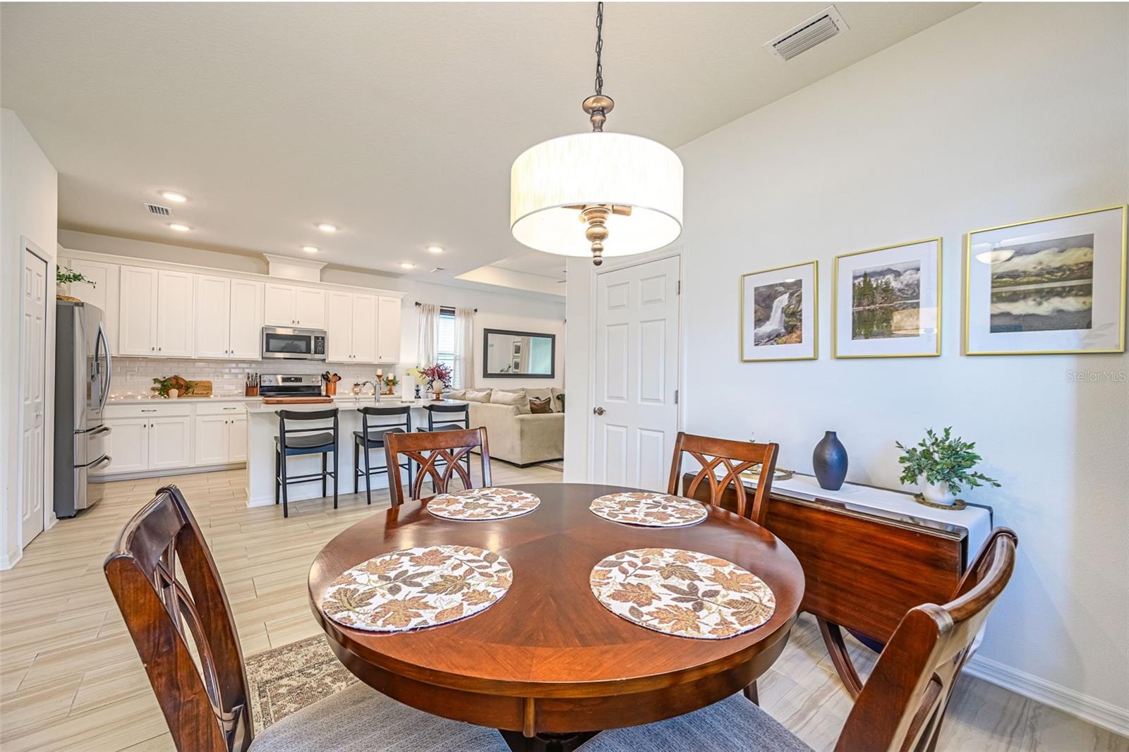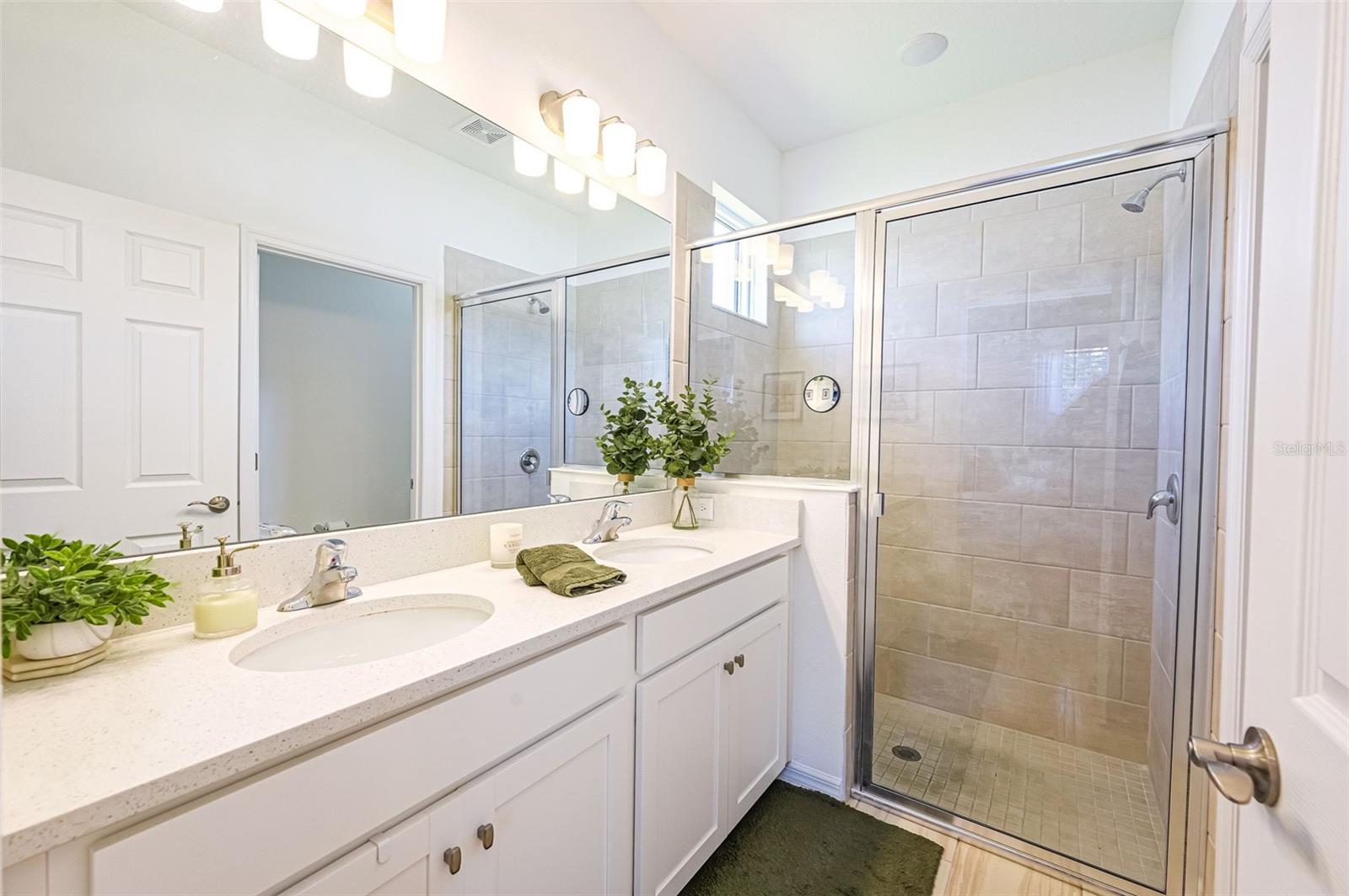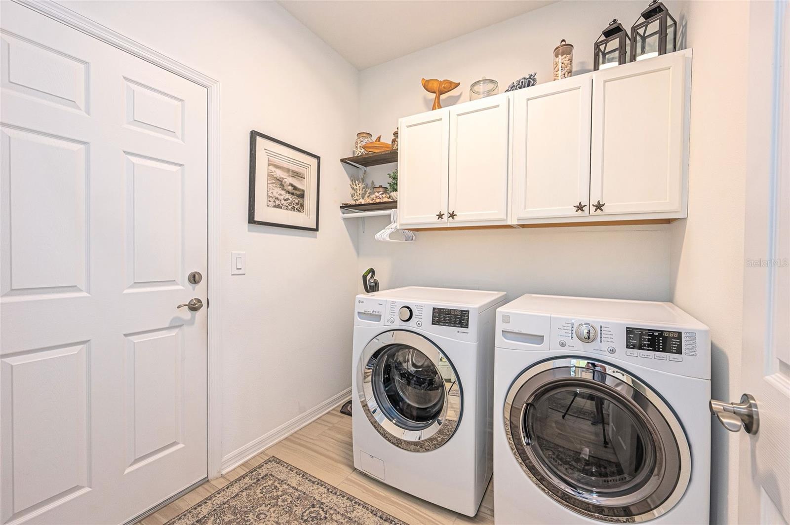 Welcome to this stunning move in ready energy efficient M/I home in the highly sought after gated enclave within Summerwoods. This impressive 3 BR/2BA home offers just over 1512 sq ft of meticulously designed living space with peaceful conservation views offering a serene outdoor escape. Why wait for new construction delays or be added to builders' waitlists, this gated section of Summerwoods consists of just over 142 homes and all construction is completed. As you enter the main foyer you’re greeted with upgraded gorgeous tile plank flooring throughout and a beautiful kitchen that is the centerpiece of this home. The modern kitchen is a chef’s delight and is perfectly designed for entertaining in mind with a large quartz island, beautiful backsplash to compliment the elegant quartz countertops, stainless steel appliances, 42” cabinets all while overlooking the dining space and great room. The great room has been fitted with beautiful coffered tray ceilings, recessed lighting with an upgraded dimmer switch and sliding glass doors that opens up to a peaceful and private outdoor living space. The large primary suite just off the great room has an en suite bathroom with his and her sinks, walk-in shower, separate toilet room, spacious walk-in closet and beautiful tray ceilings. The property features upgraded 2” blinds and 3 1/4” baseboards throughout, beautiful drapery, timeless light fixtures, ceiling fans and a well appointed laundry room with cabinets for extra storage. Enjoy seamless indoor-outdoor living with a fenced in backyard, newly installed shade sail awning, beautiful new landscaping in the front and back of the home and an upgraded French drain system. The garage has been equipped with a new epoxy floor, utility sink for convenience, hurricane shutters for extra peace of mind and an added overhead storage above the garage, perfect for storing holiday decor. Situated conveniently to I-75 and 301, this property offers quick access to white sandy beaches and nearby cities such as Bradenton, Sarasota, Tampa, and St Petersburg. The surrounding area of Parrish continues to grow with new dining options, shopping centers, excellent schools, and a future HCA 200-bed hospital with a new Publix shopping center. The community of Summerwoods features a resort-style pool, splash pad, dog park, pavilion and shaded nature and walking trails perfect for daily exercise. Don’t miss this opportunity to make this incredible Summerwoods home yours today.