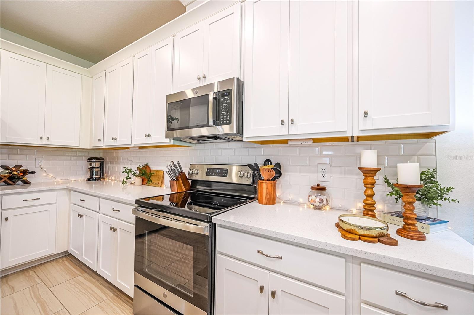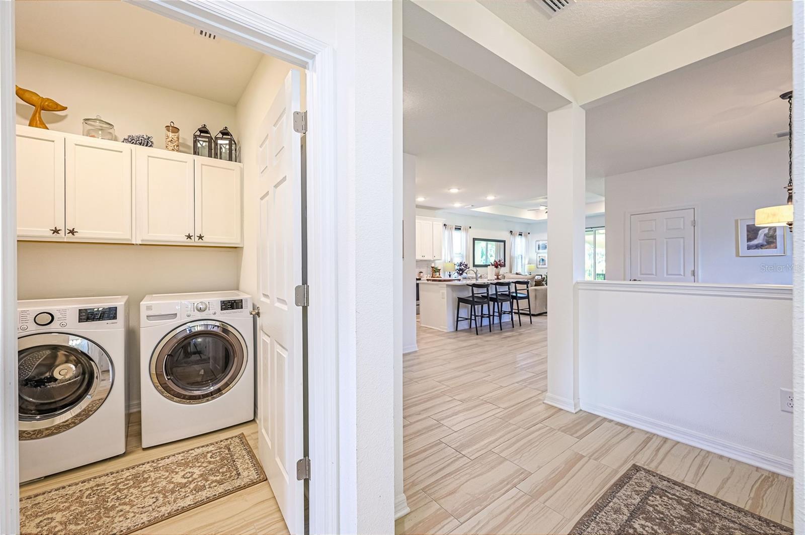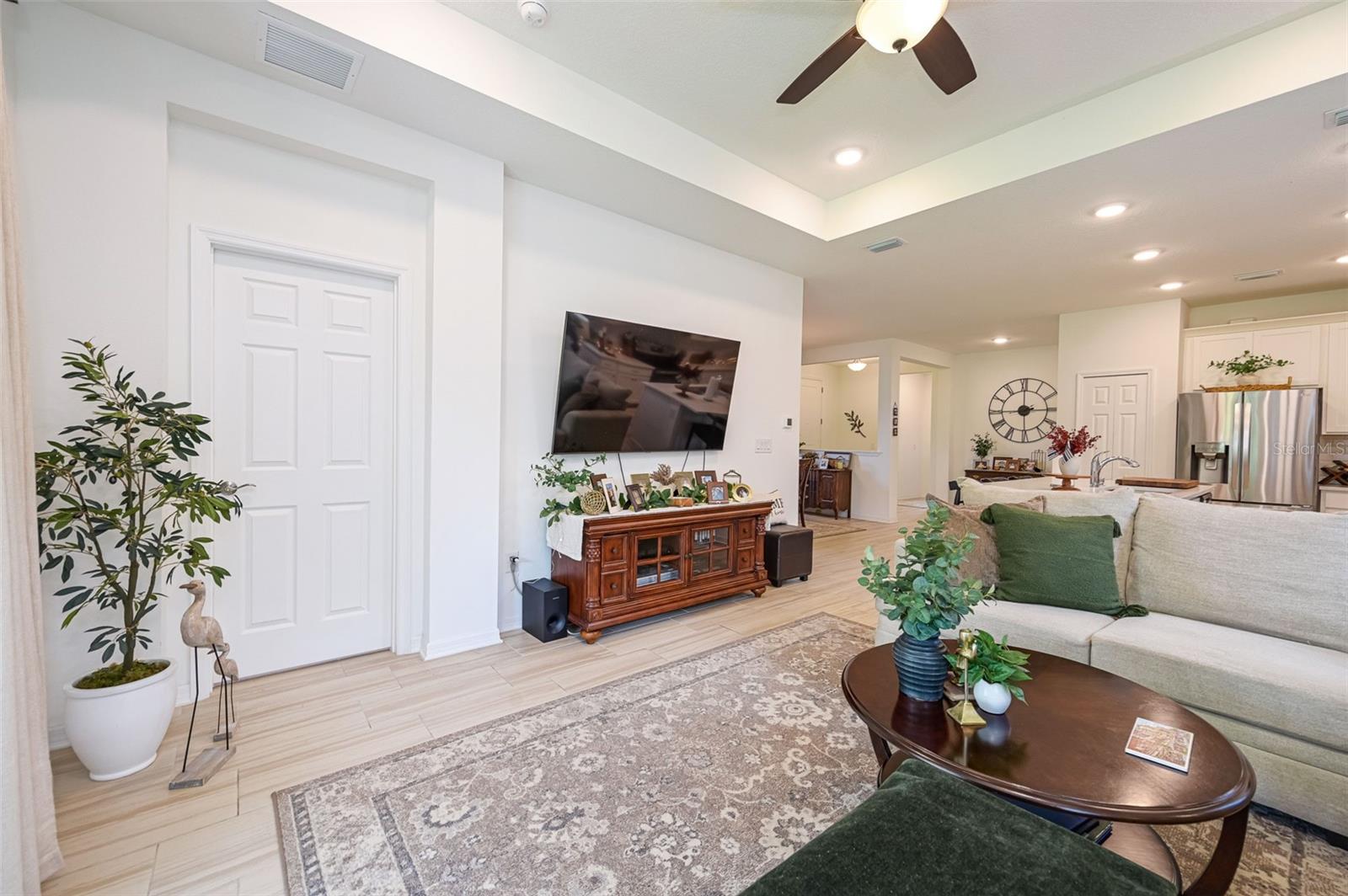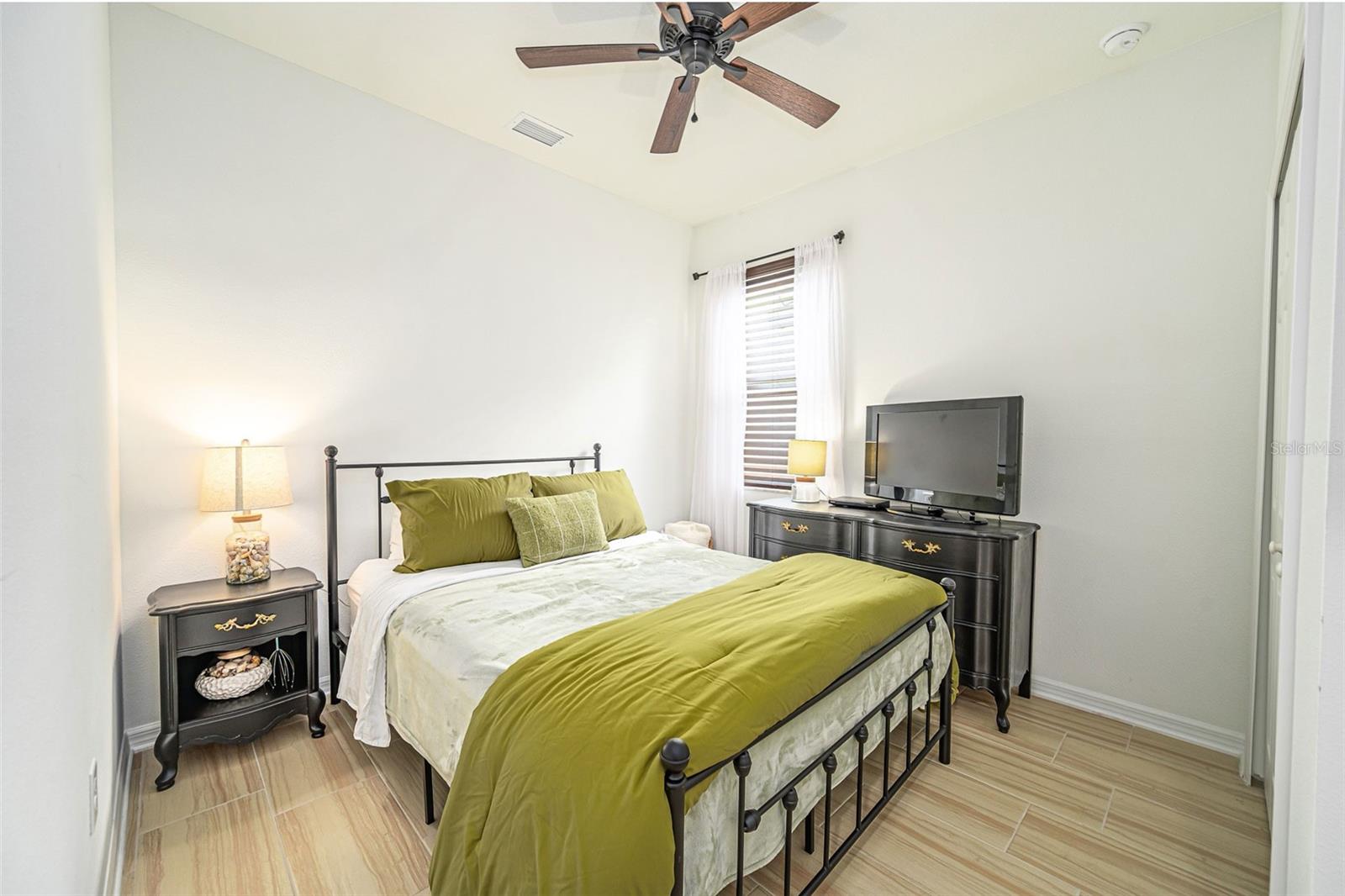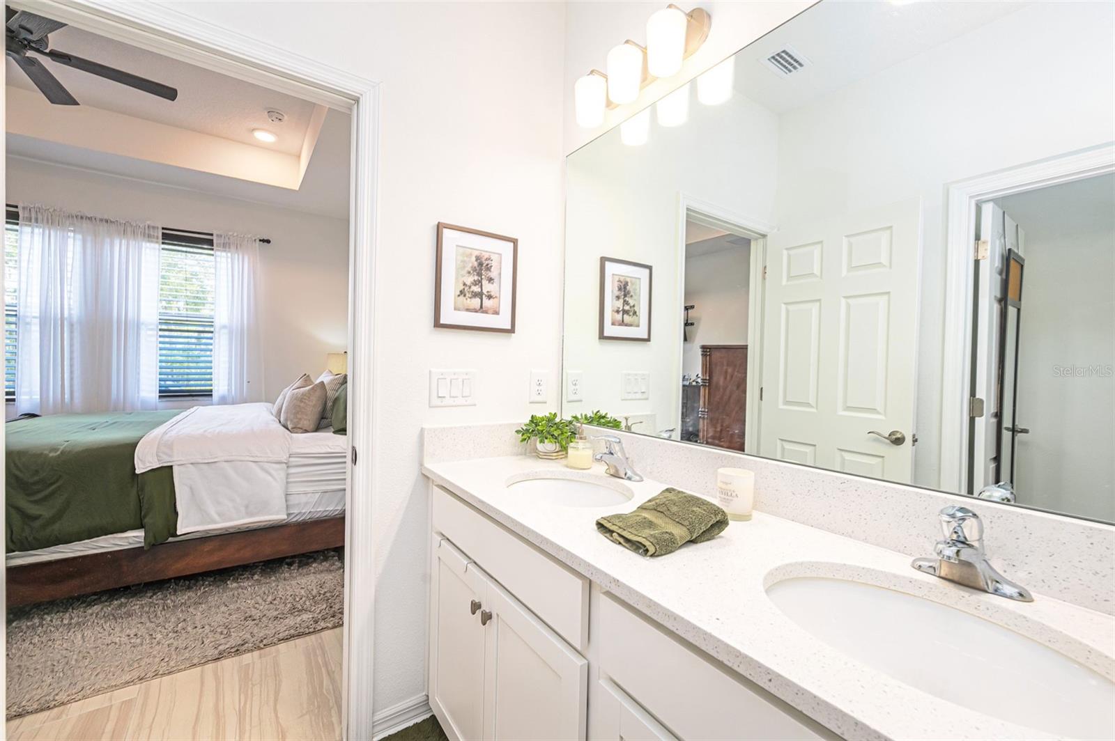 Welcome to this stunning move in ready energy efficient M/I home in the highly sought after gated enclave within Summerwoods. This impressive 3 BR/2BA home offers just over 1512 sq ft of meticulously designed living space with peaceful conservation views offering a serene outdoor escape. Why wait for new construction delays or be added to builders' waitlists, this gated section of Summerwoods consists of just over 142 homes and all construction is completed. As you enter the main foyer you’re greeted with upgraded gorgeous tile plank flooring throughout and a beautiful kitchen that is the centerpiece of this home. The modern kitchen is a chef’s delight and is perfectly designed for entertaining in mind with a large quartz island, beautiful backsplash to compliment the elegant quartz countertops, stainless steel appliances, 42” cabinets all while overlooking the dining space and great room. The great room has been fitted with beautiful coffered tray ceilings, recessed lighting with an upgraded dimmer switch and sliding glass doors that opens up to a peaceful and private outdoor living space. The large primary suite just off the great room has an en suite bathroom with his and her sinks, walk-in shower, separate toilet room, spacious walk-in closet and beautiful tray ceilings. The property features upgraded 2” blinds and 3 1/4” baseboards throughout, beautiful drapery, timeless light fixtures, ceiling fans and a well appointed laundry room with cabinets for extra storage. Enjoy seamless indoor-outdoor living with a fenced in backyard, newly installed shade sail awning, beautiful new landscaping in the front and back of the home and an upgraded French drain system. The garage has been equipped with a new epoxy floor, utility sink for convenience, hurricane shutters for extra peace of mind and an added overhead storage above the garage, perfect for storing holiday decor. Situated conveniently to I-75 and 301, this property offers quick access to white sandy beaches and nearby cities such as Bradenton, Sarasota, Tampa, and St Petersburg. The surrounding area of Parrish continues to grow with new dining options, shopping centers, excellent schools, and a future HCA 200-bed hospital with a new Publix shopping center. The community of Summerwoods features a resort-style pool, splash pad, dog park, pavilion and shaded nature and walking trails perfect for daily exercise. Don’t miss this opportunity to make this incredible Summerwoods home yours today.