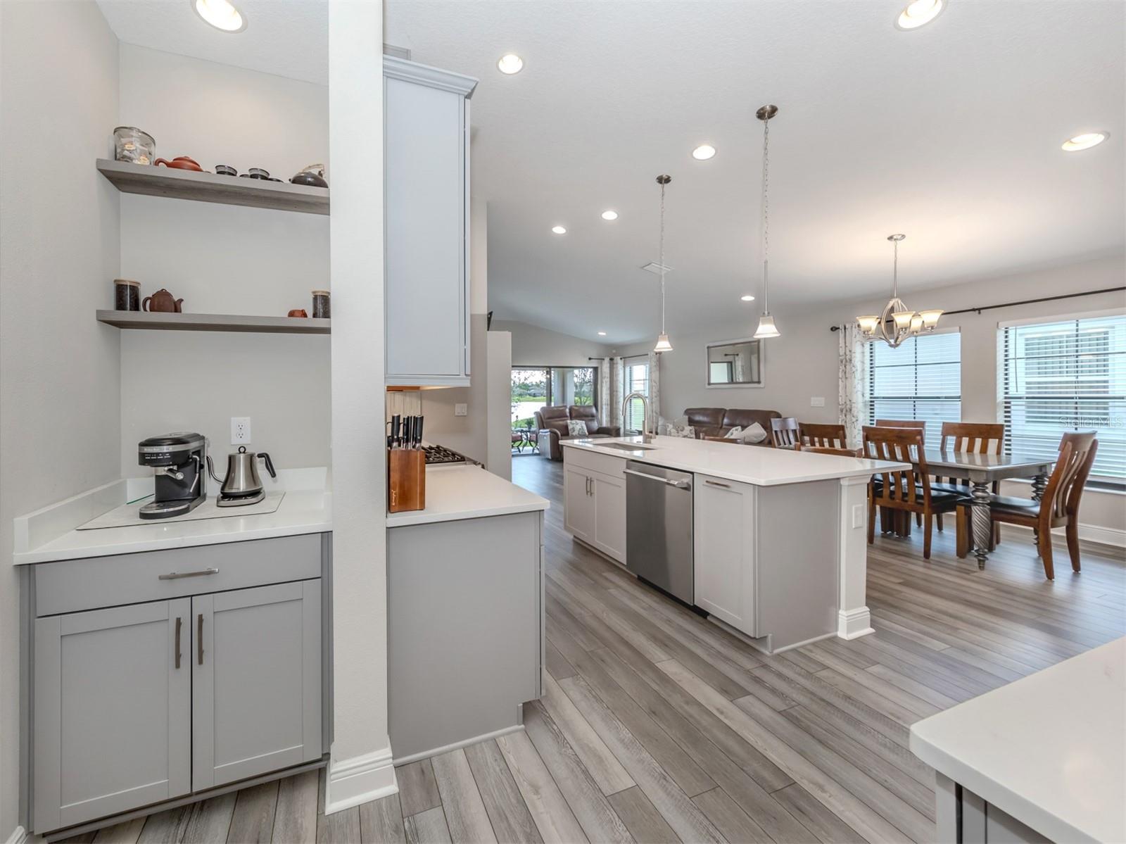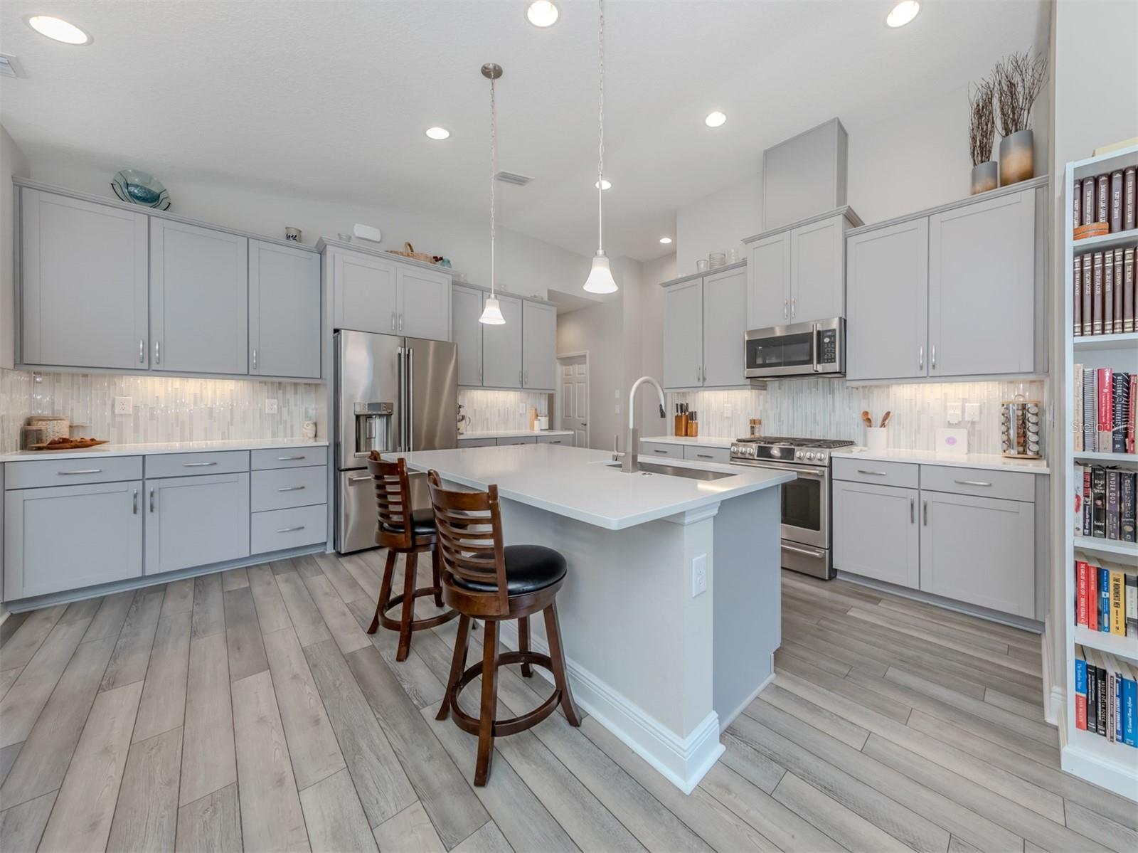 Amazing water and preserve views with nothing behind you and over 50K in upgrades and *****ASSUMABLE VA LOAN AT 4.75% WITH LENDER APPROVAL!!****** Lots of privacy, this stunningly maintained and eloquently appointed sun-filled villa lives so beautifully. This wonderful three-bedroom, two-bath home is designed for comfort and style, featuring a thoughtful split floor plan that enhances privacy and flow, on one of the best lots in Crosswind Point and shows like a model and includes high-end finishes. Go inside through the elegant glass door entry and be greeted by a spacious great room with built-in shelving which may be removed if buyers do not want them, and dining room ideal for family gatherings or cozy evenings. The heart of the home, the kitchen, boasts 42-inch wood cabinetry that provides ample storage, modern appliances, quartz countertops, breakfast bar, soft-close drawers and cabinetry, coffee bar, eloquent glass backsplash and under-counter lighting that make cooking a delight. Plus, a large walk-in pantry with frosted glass door ensures you will have plenty of space for all your culinary needs. Retreat to the spacious primary suite at back of the home with large windows and private en suite which includes, quartz countertops, dual sinks, makeup vanity, large glass shower, linen closet, private water closet and a large walk-in closet with custom shelving, ensuring organization is a breeze. The two additional bedrooms are in the rear of the home and near the second full-sized bath with quartz countertops, wood cabinetry and glass-enclosed shower, making this a private oasis for guests. With long water views right from your backyard, you’ll find tranquility and beauty in your outdoor space, ideal for morning coffees or sunset relaxation. The two-car garage completes this home. A maintenance-free living with low fees allows you to enjoy the Florida lifestyle. The air-conditioning system has been updated with an Air Knight purification system. This home offers full hurricane protection and no flood zone. The community of Crosswind Point offers scenic water and conservation views throughout the community with a pool and cabana amenity center. Near dining, shopping, medical, schools, U.S. 301, Interstate 75, parks, downtown St. Petersburg, Sarasota and Tampa.*** HOME WARRANTY FOR 1 YEAR INCLUDED***