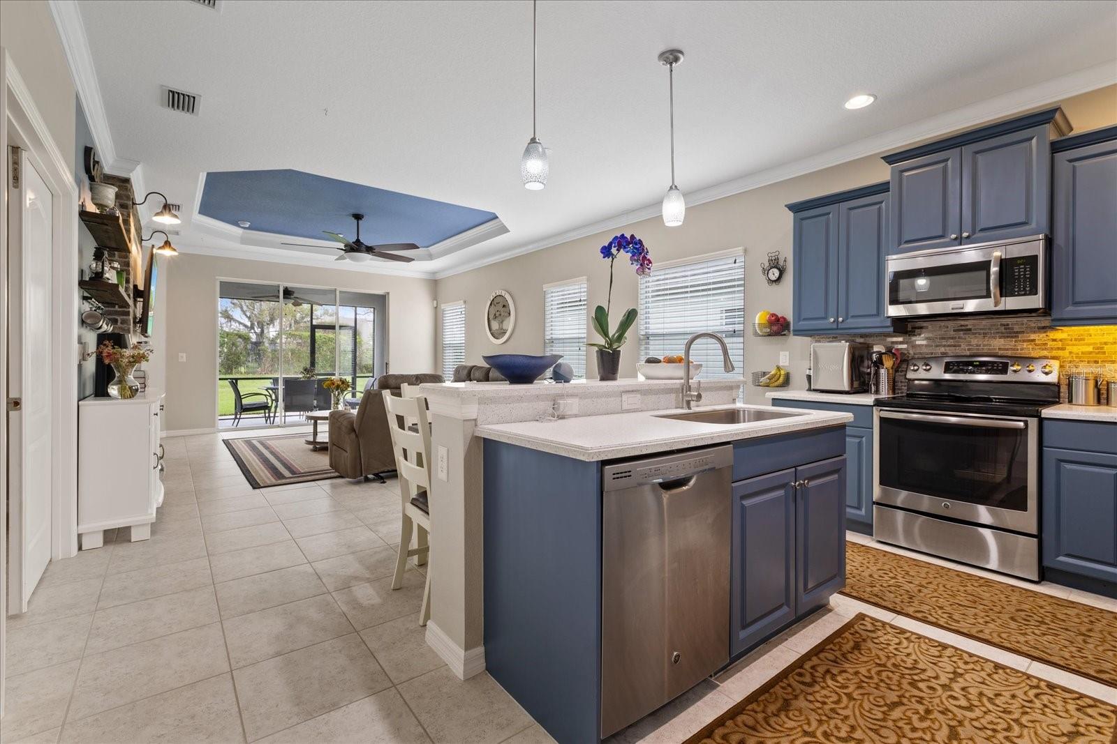 Shows Like a MODEL Home~Lovely Curve appeal, Gorgeous Upgrades, starting with a large front Porch that invites you in. As you enter the Home you will delight in the well organized floorplan. An Elegant Dining Room welcomes you in, followed by exciting news, a Split bedroom floor plan, in addition to a BONUS Room that can be used as an OFFICE/PLAYROOM or simply another bedroom. The Open kitchen creates a connection between the Kitchen and Family room. You will notice pleasant details such as a Decorative accent wall with an electric fireplace and tray ceilings throughout that give the place a MODERN Touch. As you step outside through the Tripple pocket sliding doors, you can Relax in the screened lanai, ideal for a cookout in the fully equipped Outdoor Kitchen. (Grill and Mini Cooler are included) Step into the backyard where you will find mature fruit trees such as Plantains, Sweet Potatoes and a Fig Tree. Meticulously maintained landscaping and sprinkler system in place with timer control. Situated in the exclusive Gated Community of Forest Creek. This sought after neighborhood offers high-end amenities to its residents, such as a large Resort-Style Pool and Hot Tub-Spa, a Fitness Center, a Clubhouse, Walking Trails, Dog Park, Playground, Dock over the Lake Views, and Lake Access for Fishing or Kayaking. Only 10 minutes to shopping, Easy access to I-75 and just under 30 minutes to the beautiful GULF BEACHES!! Home qualifies for USDA 100% Financing.