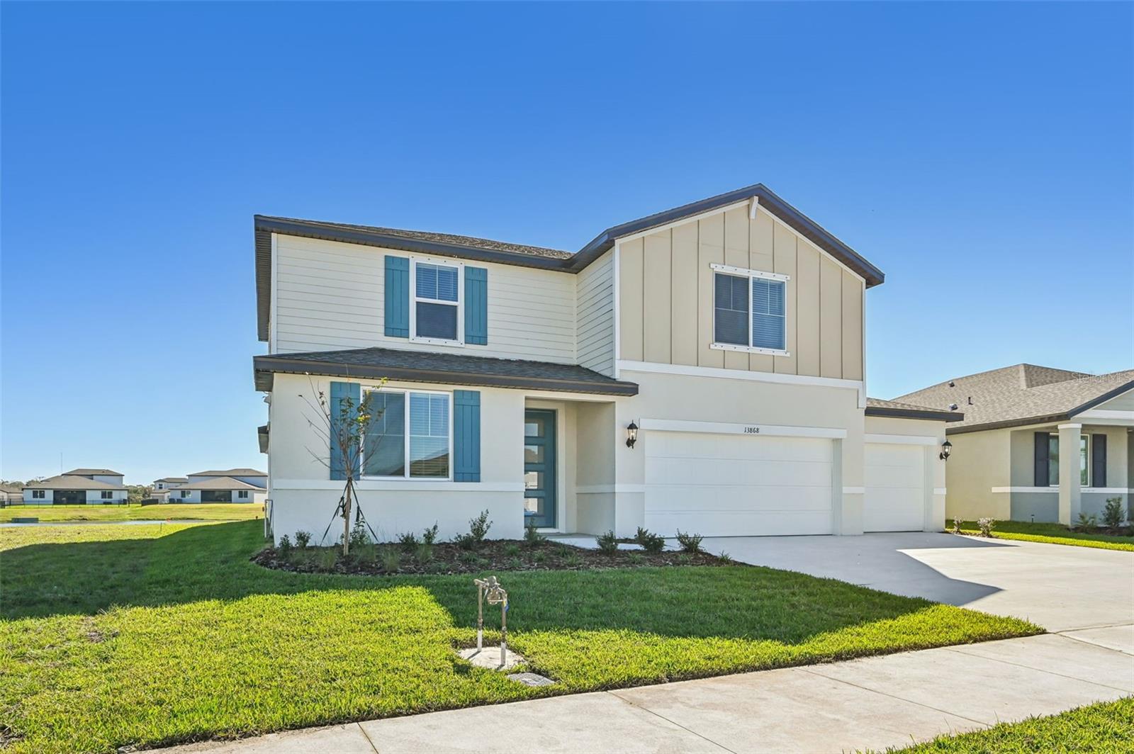 Brand new, energy-efficient home ready NOW! Pond view. Gourmet kitchen. Enjoy relaxing with your morning coffee on this home's covered lanai or host a game night in the large, upstairs game room. Primary suite boasts two walk-in closets and dual sinks. Use the downstairs flex space as a formal dining room or home office. Salt Meadows offers new single-family homes in Parrish, FL with a variety of floorplans, both single-story and two-story. Residents will enjoy resort-style amenities including a large community pool, clubhouse with fitness center, sports courts, playground and more. With close proximity to I-75, this community offers easy access to St. Pete, Bradenton, Sarasota and beautiful gulf coast beaches. Schedule a tour today. Each of our homes is built with innovative, energy-efficient features designed to help you enjoy more savings, better health, real comfort and peace of mind.