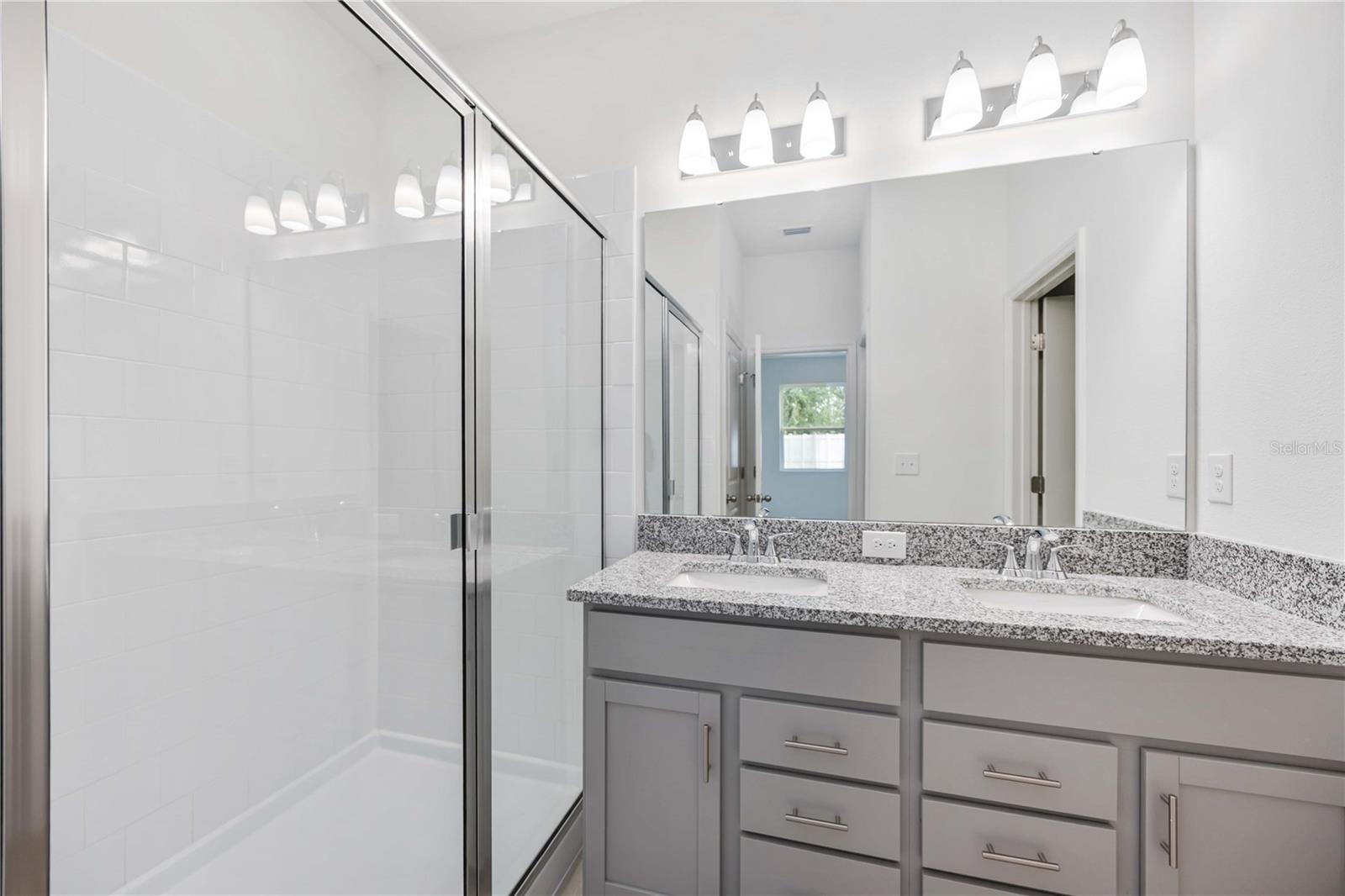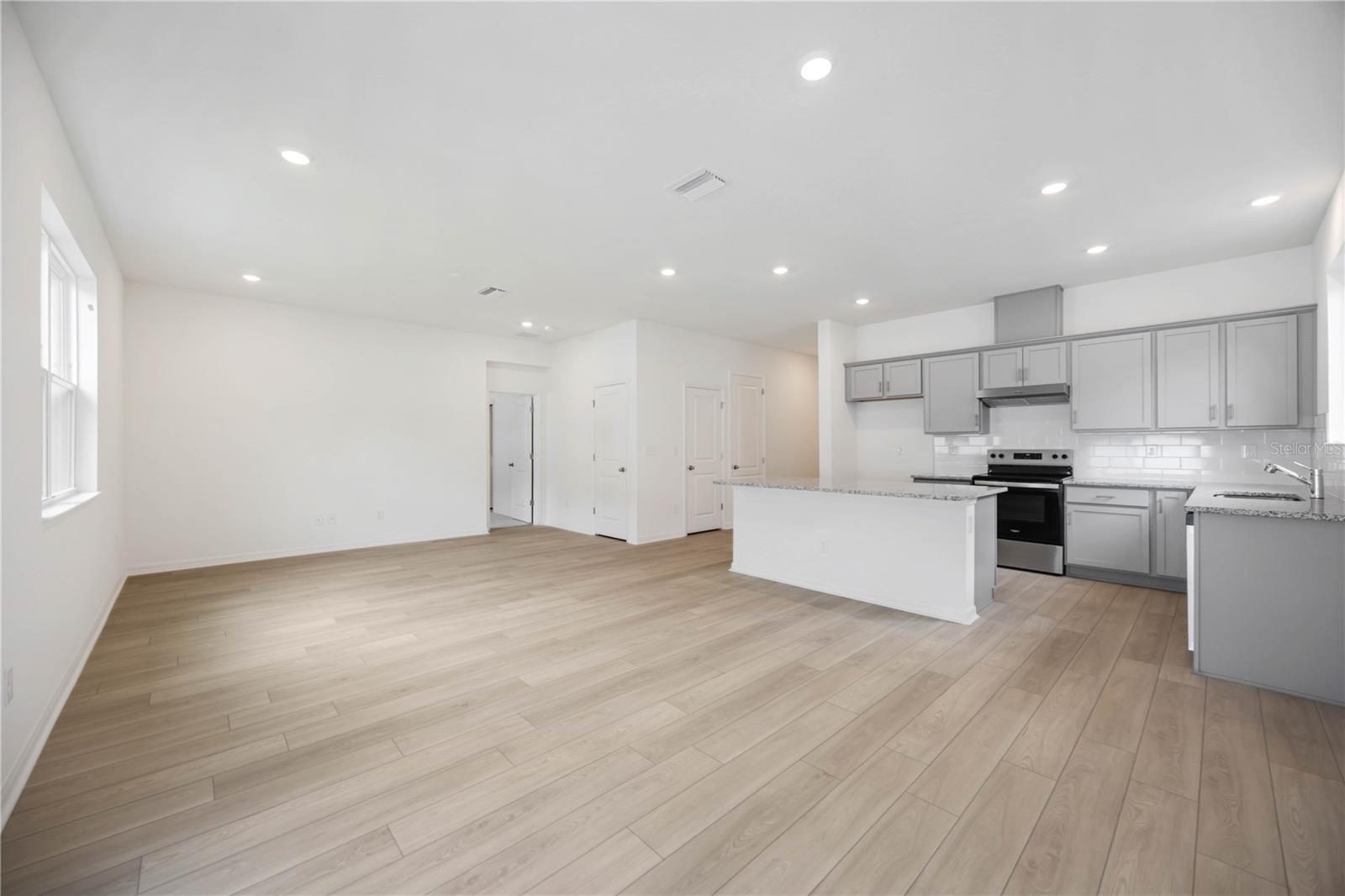 This alluring single-story house is ready for you to own. As you walk through the entryway, you will be greeted by the expansive great room and open kitchen. This open floor plan features vinyl plank flooring located in the great room and wet areas. The contemporary kitchen offers 36-in upper cabinets with crown molding, granite countertops, an ample pantry, and a stainless-steel Whirlpool® appliance package. Leading out from the great room is the covered patio, a perfect place to entertain guests. The secondary bedrooms and bath are located towards the front of the home, with the designated laundry room located down the hall for added convince. The primary bedroom is located towards the rear of the house, for added privacy. The primary bedroom with a connecting bath features an extensive walk-in closet, linen closet, a dual sink vanity with granite countertops, and a walk-in shower with tile surround. Community offers no CDD and low HOA.