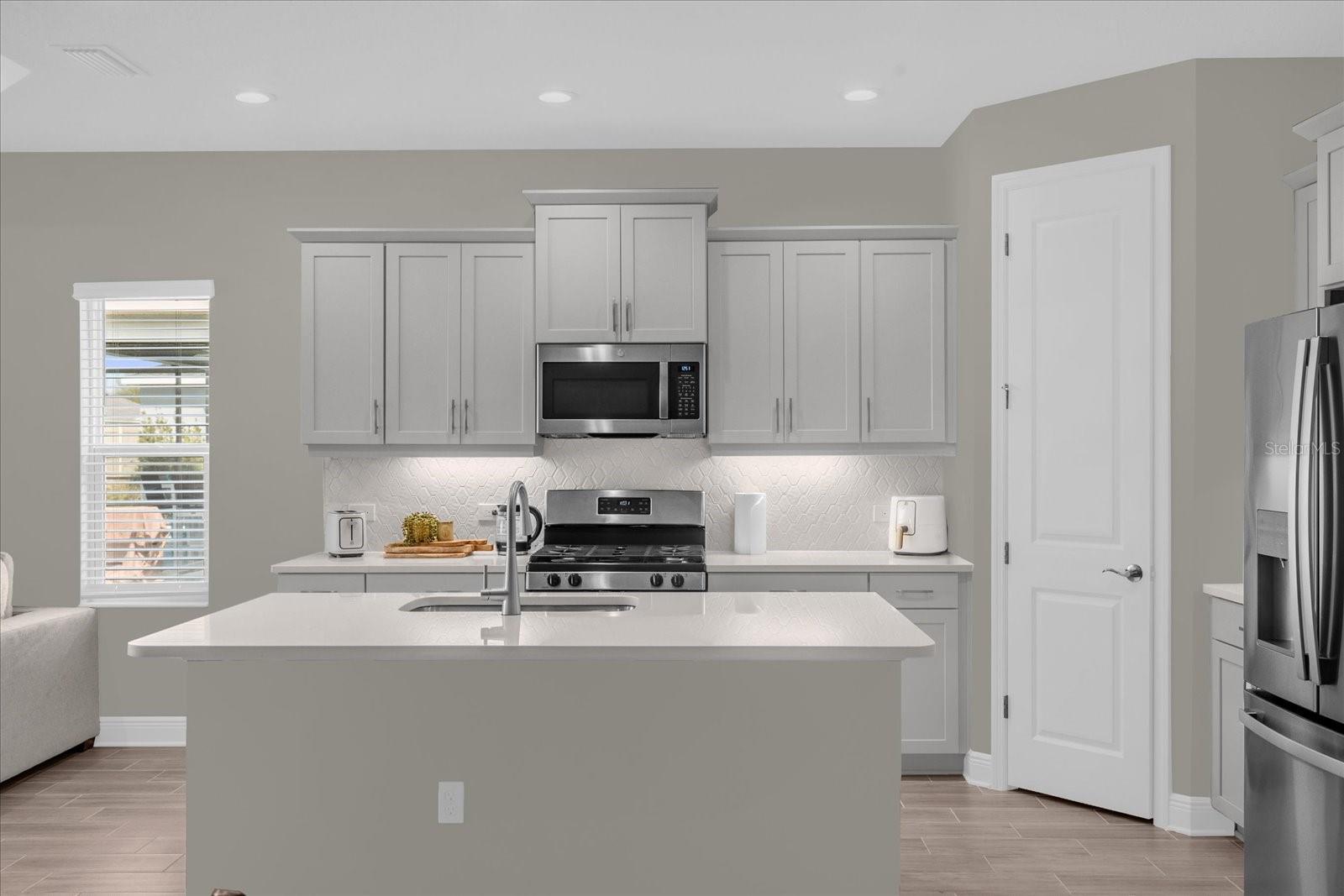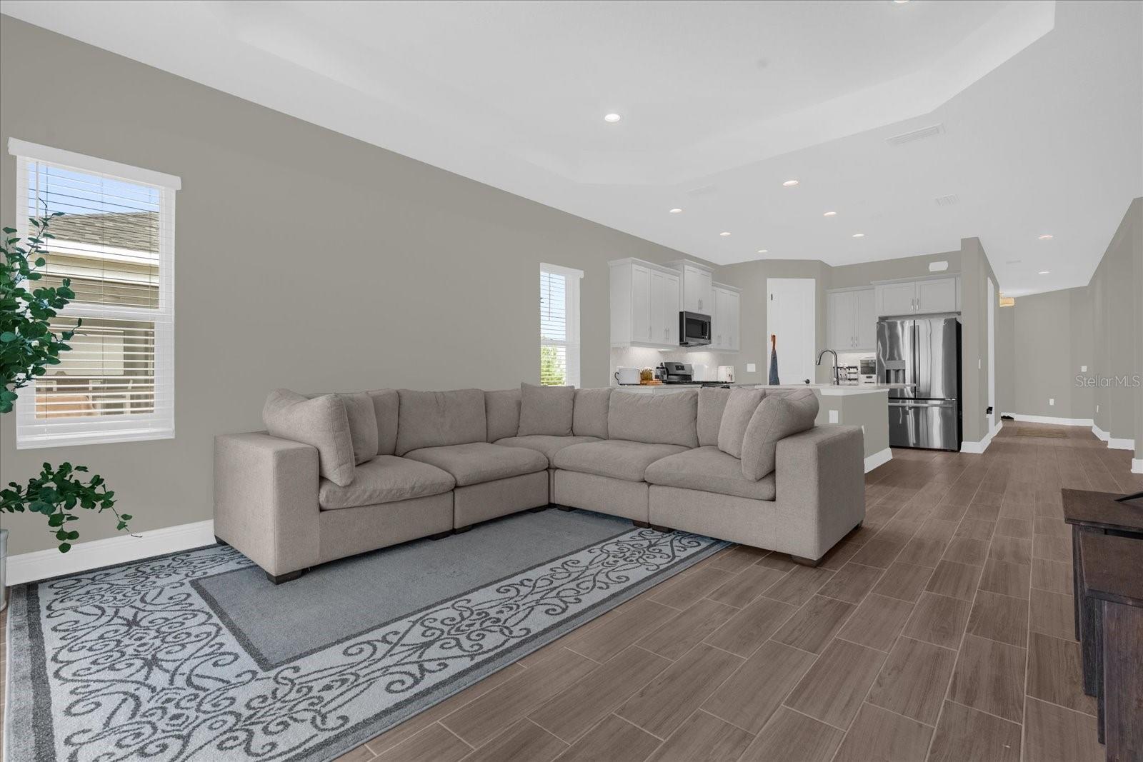 Step into a home that effortlessly blends style, comfort, and functionality—perfectly designed for the way you live today. This spacious 3-bedroom, 2-bath residence with a private office/den (featuring elegant French doors) offers the flexibility you need, whether you’re working from home, hosting guests, or creating your ideal retreat. From the moment you walk in, you’ll notice the elevated finishes that set this home apart—wood-like tile flooring flowing seamlessly in the common and wet areas, a stunning tray ceiling that adds dimension to the family room, and an abundance of natural light pouring in through the expansive 3-panel sliding glass doors. The heart of the home is the beautifully appointed kitchen, complete with a generous size walk in pantry, sleek quartz countertops that provide both durability and modern appeal—perfect for everyday living and entertaining alike. Step outside and unwind in your oversized screened lanai, creating the ideal space for morning coffee, weekend gatherings, or simply enjoying Florida living year-round. The epoxied garage adds both style and practicality, giving you a clean, polished space for storage or hobbies. Located in a sought-after gated community with NO CDD, you’ll enjoy access to resort-style amenities including pickleball courts, a clubhouse, community center, dog parks, and a sparkling resort-style pool—bringing leisure and lifestyle right to your doorstep. Schedule your private showing today and experience it for yourself.