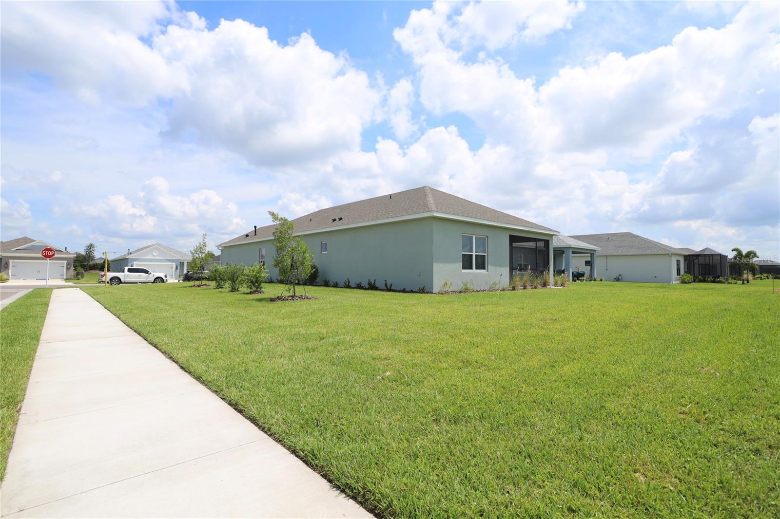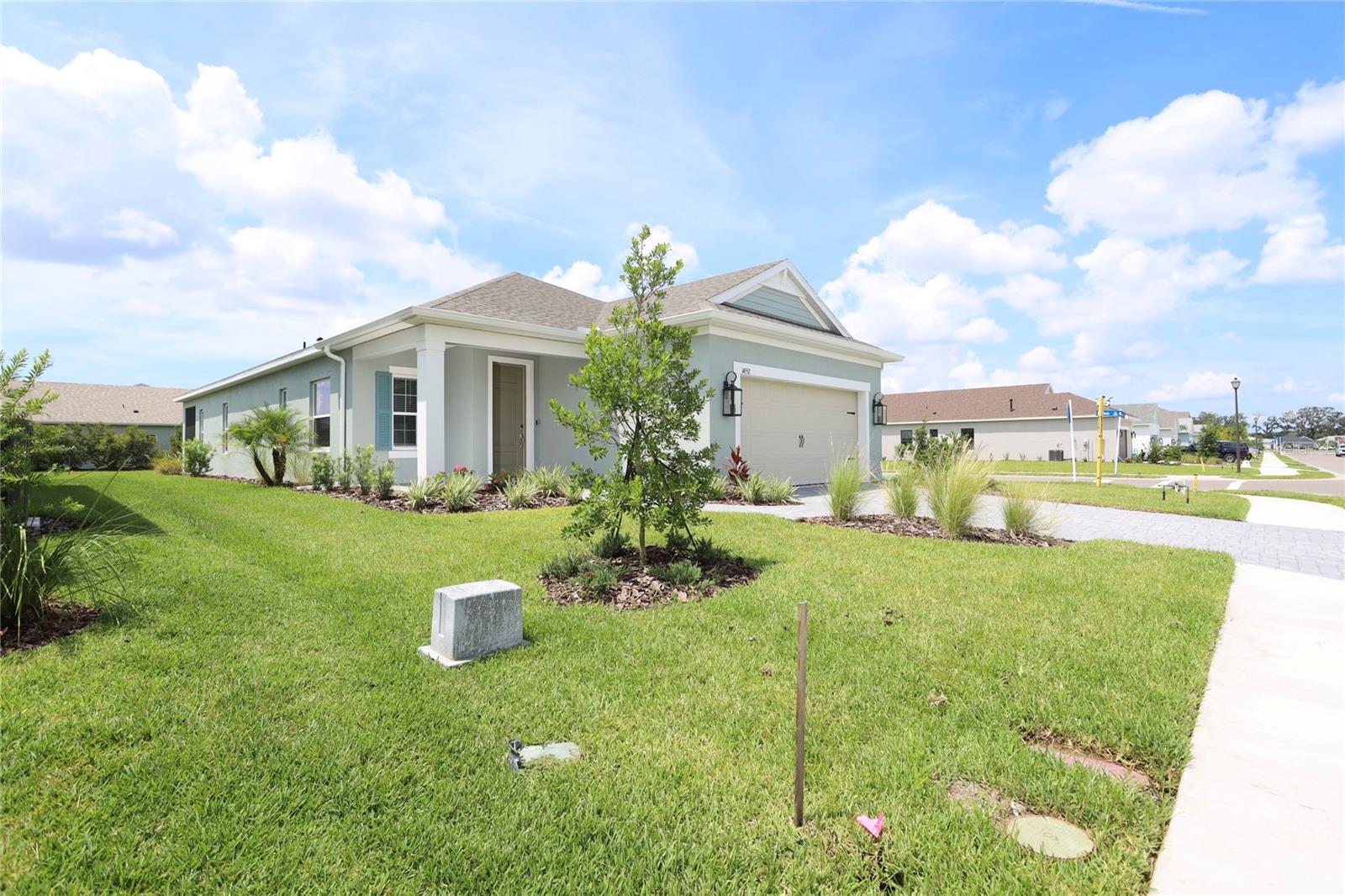 This newly built home on a corner lot is beautifully designed and move-in ready, with several unique updates that set it apart. The paved driveway leads to a well-painted garage, and both the garage and the rest of the home are constructed with insulated cinderblocks for improved heating and cooling efficiency. Inside, you’ll find thoughtful features such as an indoor laundry room with a base cabinet for extra storage. The screened-in lanai, with its paver floor, offers a relaxing view of the water, perfect for enjoying your morning coffee. The gray pavers continue along the driveway and entrance path, enhancing the home’s curb appeal. The two-car garage boasts plenty of space for storage and additional cabinets. Located in the Canoe Creek community, just moments away from your home, you’ll have access to a scenic walking path, a beautiful pool, spa, and fitness center—providing plenty of opportunities for relaxation and enjoyment. Schedule your private showing today, and imagine yourself in this stunning, future-perfect home. The screened-in lanai, with its paver floor, offers a relaxing view of the water, perfect for enjoying your morning coffee. The gray pavers continue along the driveway and entrance path, enhancing the home’s curb appeal. The two-car garage boasts plenty of space for storage and additional cabinets. Located in the Canoe Creek community, just moments away from your home, you’ll have access to a scenic walking path, a beautiful pool, spa, and fitness center—providing plenty of opportunities for relaxation and enjoyment. Schedule your private showing today, and imagine yourself in this stunning, future-perfect home.