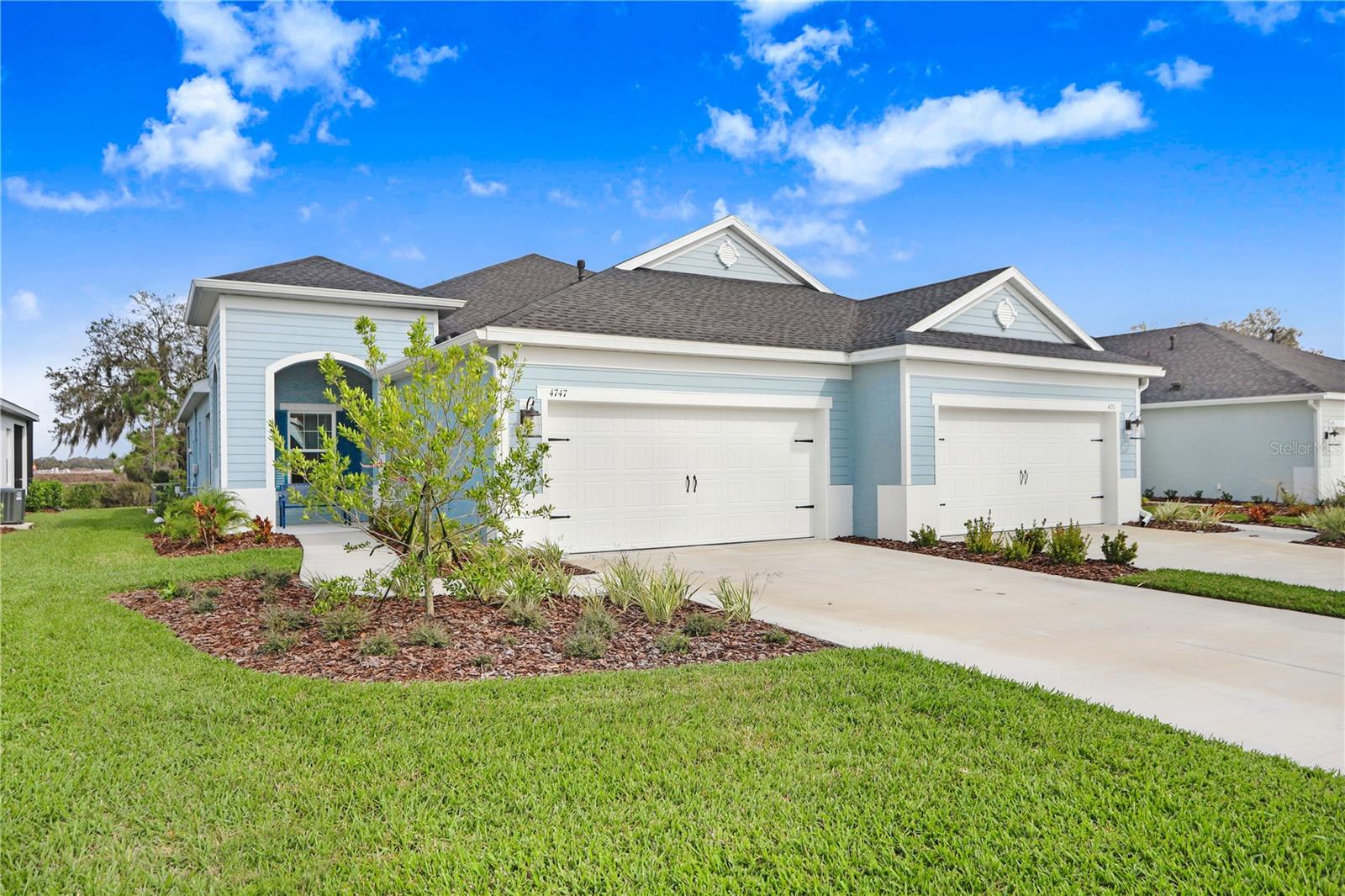 Welcome to this stunning villa property built in the New Neal Community, Canoe Creek in Parrish, Florida. No need to wait for your home to be built, this spacious property is a single story that offers a perfect blend of comfort and space. Designed with the utmost attention to detail. As you enter, you'll be greeted by a bright and open floor plan, featuring high ceilings and large windows that fill the home with natural light throughout. The living area is thoughtfully designed for both relaxation and entertainment, providing plenty of space for gathering with family and friends. The kitchen is a chef's dream, boasting modern appliances, high-end finishes, and ample counter space. The separate dining area is perfect for hosting dinner parties, enjoying family meals or even ideal for a home office. The Primary Suite is a true retreat nestled in the back of the home, offering a spacious bedroom, a walk-in closet, and a luxurious en-suite bathroom with split vanities. The additional bedroom is located in the front of the home, giving your guests plenty of privacy. As you step outside to the backyard oasis, you'll find full pocket sliders leading onto a large, covered patio overlooking a beautifully landscaped yard. This outdoor space is perfect for morning sunrises & sunsets, grilling or just somewhere to unwind. This brand-New Neal Community is known for its exceptional amenities and lifestyle. From their resort-style swimming pool/spa, well-equipped fitness center, pickleball courts, dog park, and spacious clubhouse with a lifestyle director who plans weekly fun community activities, you'll be sure to have plenty to do. The property is also conveniently located near top-rated schools, shopping centers, and dining options. Property is also available For Rent. Schedule your private showing today. Welcome Home!