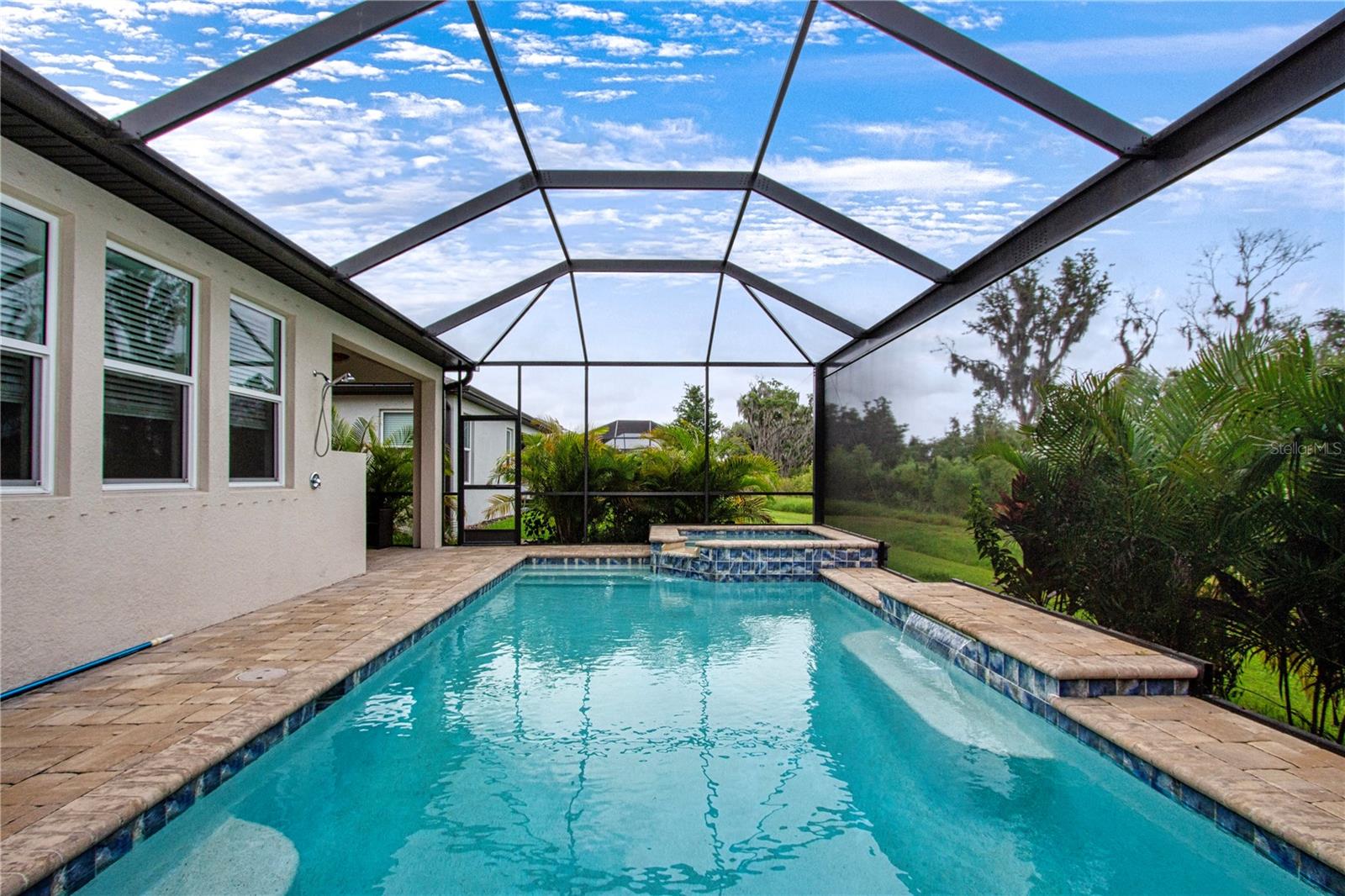 One or more photo(s) has been virtually staged. Welcome to the upscale craftsman styled Calusa model with 4 bedrooms 3 full baths 2 car garage and glistening pool that overlooks a protected conservation area for additional PRIVACY without the expense, located in the Gated Cove at Twin Rivers RIVERFRONT Community with an Old-Florida style natural scenery that sits alongside of the MANATEE RIVER As you walk up a brick paver walkway you will be greeted by mature landscaping. Walk into luxury when you walk through a grand entrance way with a wide foyer and open floor plan. The 8-foot interior doors and tray ceilings throughout the home adds extra height and elevation to enhance the space, creating a classy look and feel. 3RD BEDROOM WITH EN SUITE BATHROOM is perfect for making guests feel comfortable and right at home. The laundry room off the main area, with LG washer and dryer offers extra cabinetry, and utility sink. The back of the home highlights the owner's suite, with a LARGE BATH TUB with DUAL VANITIES AND GRANITE COUNTERS, an ENCLOSED SHOWER, and an EXPANSIVE WALK IN CLOSET. With an OPEN CONCEPT KITCHEN a large CENTER ISLAND has a breakfast bar with a SINGLE OPEN SINK AND CUSTOM SEMI PRO DECK MOUNT KOHLER KITCHEN FAUCET that offers EXTRA PREP AREAS. Granite counters and stainless-steel appliances enhance the stylish cabinetry. The breakfast nook has a view through the sliding glass doors of the GLISTENING SPA AND POOL. You’ll find an OUTDOOR KITCHEN with STONE PAVERS that is also equipped with an OUTDOOR SHOWER. You will enjoy countless hours relaxing by the pool and watching nature through the seamless screened in pool cage for an uninterrupted view of the lovely CONSERVATION backdrop nature provides. This home also has SMARTSHEILD Base Home Structured Wiring. SMART FEATURES that allow you the security and convenience to opening the garage door via your phone to seeing who your guests are before you open the door. The RIVERFRONT community of THE COVE AT TWIN RIVERS is a community where you can take your family canoeing, KAYAKING,FISHING AND BOATING There are playgrounds, a soccer field, a basketball court, a beach volleyball court, hiking trails, a boardwalk and COMMUNITY BOAT RAMP. Located in the village of Parrish, close to I-75 and a quick commute from Tampa, St. Petersburg, Sarasota, and Bradenton. Also seen with its own episode of HGTV’s ‘House Hunters’ Do not miss this unique opportunity, SCHEDULE A PRIVATE SHOWING TODAY! FLOOD INSURANCE TRANSFERRABLE ONLY $746 PER YEAR AND COULD QUALIFY FOR LOMA TO BE EXEMPTED FROM HAVING TO CARRY FLOOD INSURANCE!!!