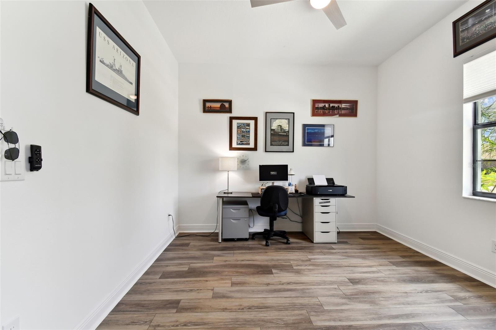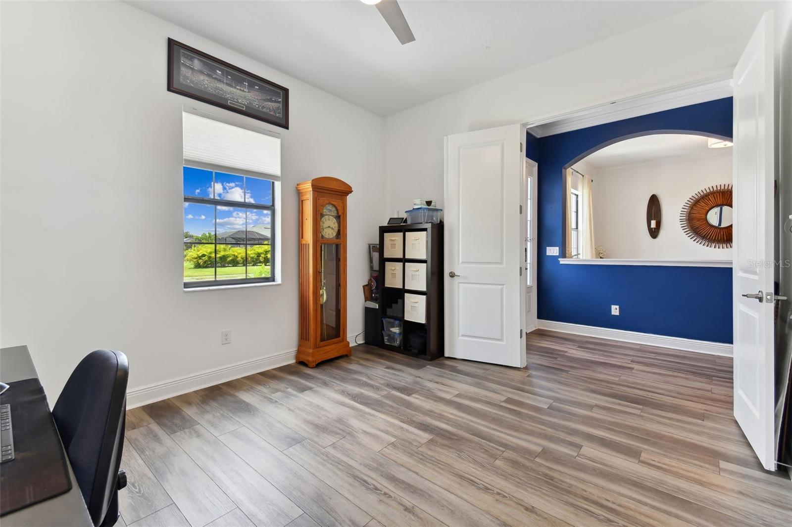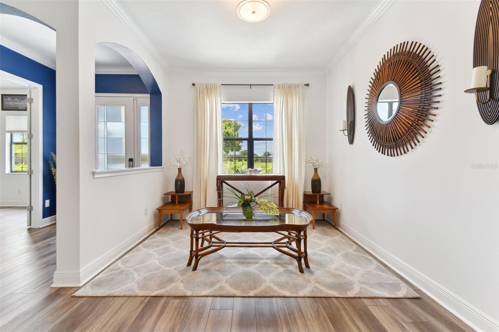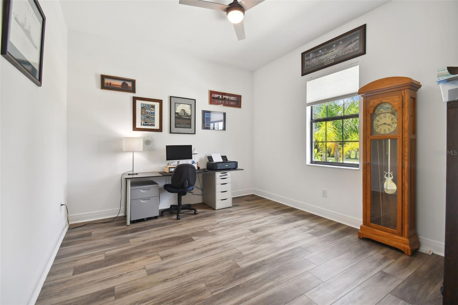 This stunning 3 bedroom, 3 bathroom **PLUS Office/4th Bedroom***home located in the sought after community of Cross Creek! This move-in ready home is almost brand new (built in 2021) and is filled with premium upgrades. The stunning exterior boasts an oversized .24 acre lot with an immaculately manicured front and backyard, 3 car garage, screened back patio with covered seating and a jacuzzi hot tub! The interior features soaring ceilings, large living spaces, a luxurious owner’s retreat, 2 additional bedrooms, office/den, upgraded light fixtures, crown molding, split bedroom layout, quartz countertops, upgraded ceiling fans and much more. This home also features continuous plank wood-look luxury vinyl flooring adding warmth and elegance. Attached is the private 3 car garage that features extra storage, laundry sink and epoxy floors. The spacious great room offers high ceiling, in-ceiling surround sound speakers, recessed lighting, crown molding, lighted ceiling fan, and sliding stacking glass lanai doors. Prepare a feast in the gourmet kitchen any chef can appreciate! Outfitted with an extraordinary center island, recessed lighting, extended white and oak wood cabinetry, stainless appliances, natural gas stove, quartz countertop and under mount sink. The private owner’s retreat just off the great room, draws you in to relax and unwind. The luxurious bath offers a walk-in glass roman shower, upgraded fixtures, dual vanity, separate water closet and a large walk-in closet. This home also features a secondary owners suite with ensuite bath, guest room and a full hallway guest bathroom. Enjoy the tranquil lake view from the front yard or escape to the covered and screened patio complete with, modern edison lighting, ceiling fans and a relaxing jacuzzi. Patio is pre-plumbed with water and natural gas for a summer kitchen so you can elevate your outdoor living and Hurricane Windows!!! The premier community of Cross Creek is furnished with a beautiful pavilion with resort style swimming pool, basketball court, playground and lakes. This amazing home is just minutes from the Fort Hamer Bridge, Lakewood Ranch and University Town Center Mall (UTC)! The nearest beaches are Anna Maria Island, St Pete, Siesta Key. The nearest airports are SRQ, TPA, PIE. It is also close to great schools, dining, shopping and I-75 yet perfectly tucked away from the hustle and bustle. Come enjoy all Cross Creek has to offer, welcome home…