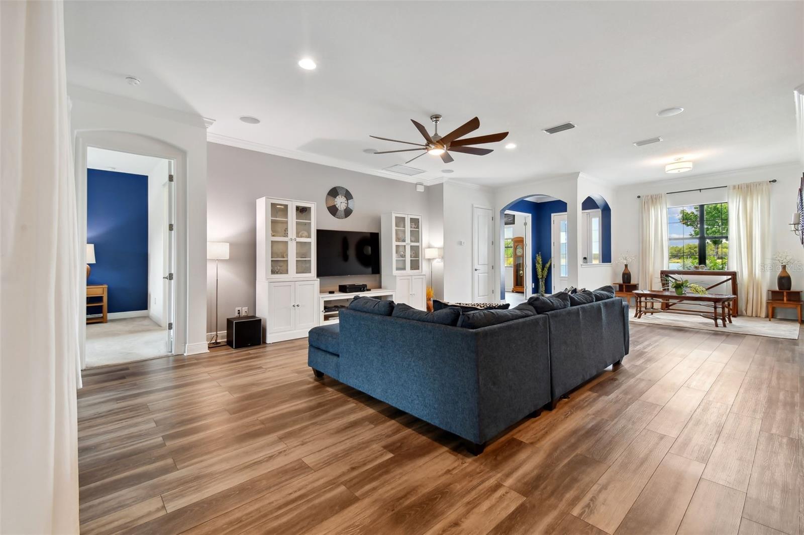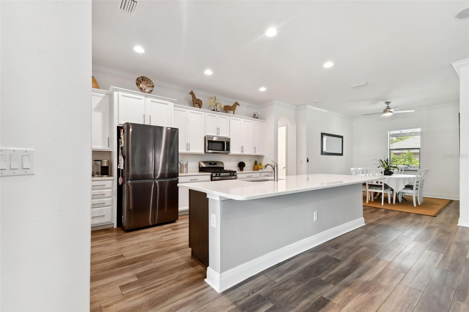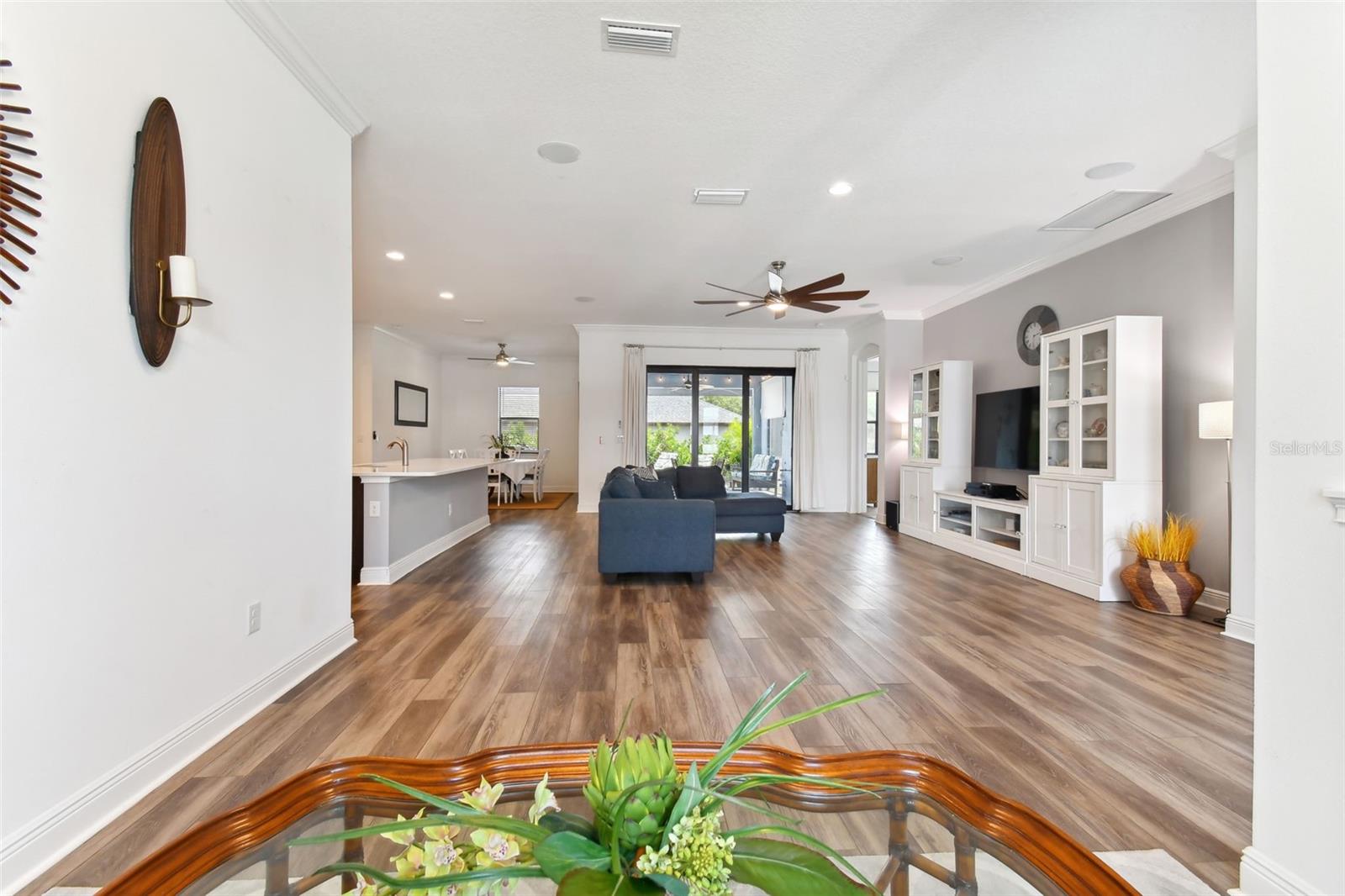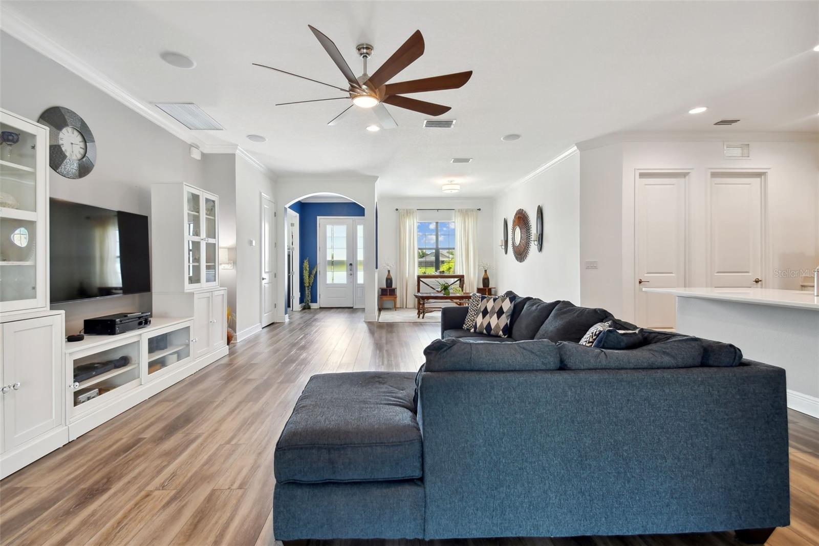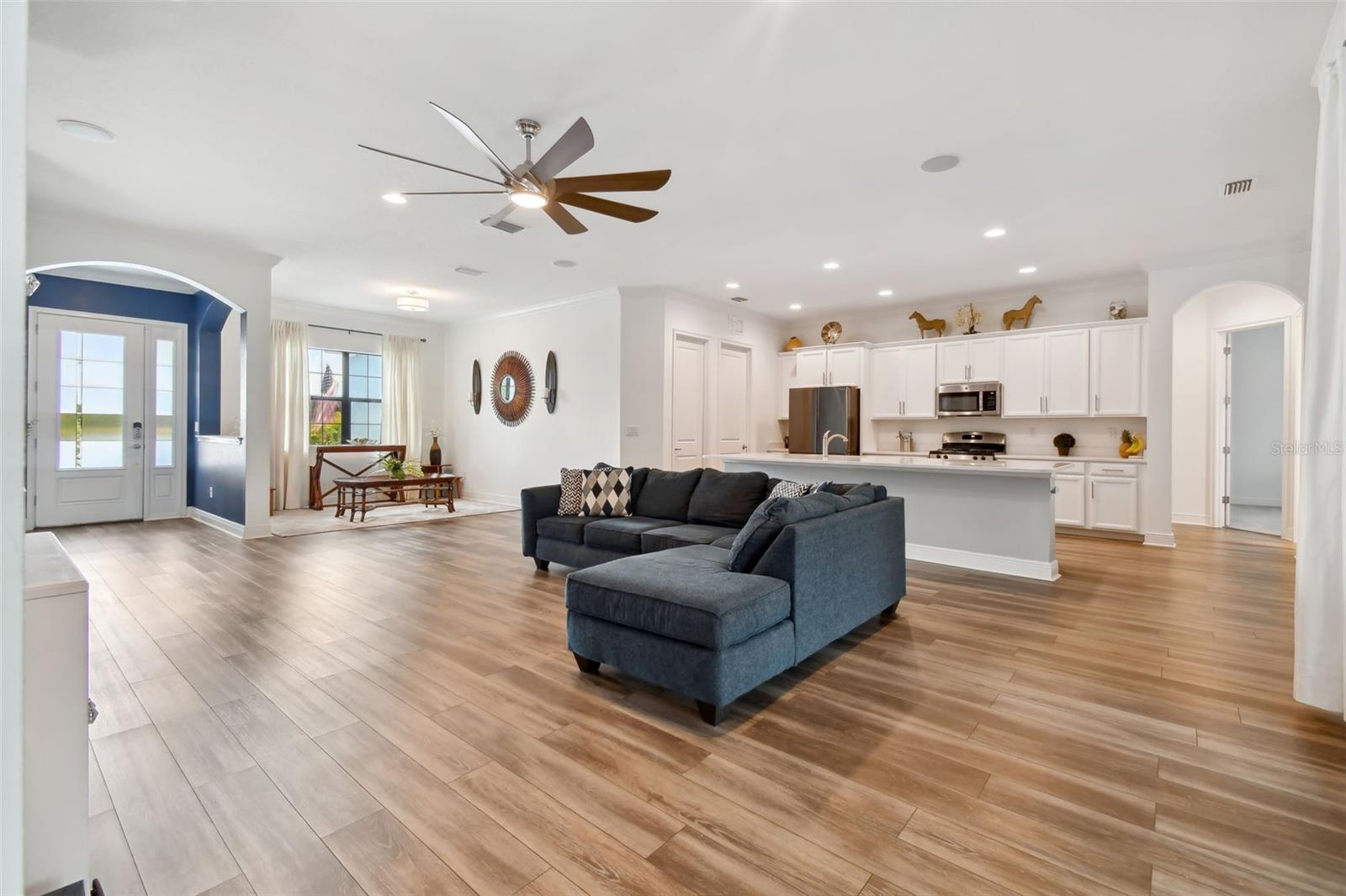 This stunning 3 bedroom, 3 bathroom **PLUS Office/4th Bedroom***home located in the sought after community of Cross Creek! This move-in ready home is almost brand new (built in 2021) and is filled with premium upgrades. The stunning exterior boasts an oversized .24 acre lot with an immaculately manicured front and backyard, 3 car garage, screened back patio with covered seating and a jacuzzi hot tub! The interior features soaring ceilings, large living spaces, a luxurious owner’s retreat, 2 additional bedrooms, office/den, upgraded light fixtures, crown molding, split bedroom layout, quartz countertops, upgraded ceiling fans and much more. This home also features continuous plank wood-look luxury vinyl flooring adding warmth and elegance. Attached is the private 3 car garage that features extra storage, laundry sink and epoxy floors. The spacious great room offers high ceiling, in-ceiling surround sound speakers, recessed lighting, crown molding, lighted ceiling fan, and sliding stacking glass lanai doors. Prepare a feast in the gourmet kitchen any chef can appreciate! Outfitted with an extraordinary center island, recessed lighting, extended white and oak wood cabinetry, stainless appliances, natural gas stove, quartz countertop and under mount sink. The private owner’s retreat just off the great room, draws you in to relax and unwind. The luxurious bath offers a walk-in glass roman shower, upgraded fixtures, dual vanity, separate water closet and a large walk-in closet. This home also features a secondary owners suite with ensuite bath, guest room and a full hallway guest bathroom. Enjoy the tranquil lake view from the front yard or escape to the covered and screened patio complete with, modern edison lighting, ceiling fans and a relaxing jacuzzi. Patio is pre-plumbed with water and natural gas for a summer kitchen so you can elevate your outdoor living and Hurricane Windows!!! The premier community of Cross Creek is furnished with a beautiful pavilion with resort style swimming pool, basketball court, playground and lakes. This amazing home is just minutes from the Fort Hamer Bridge, Lakewood Ranch and University Town Center Mall (UTC)! The nearest beaches are Anna Maria Island, St Pete, Siesta Key. The nearest airports are SRQ, TPA, PIE. It is also close to great schools, dining, shopping and I-75 yet perfectly tucked away from the hustle and bustle. Come enjoy all Cross Creek has to offer, welcome home…