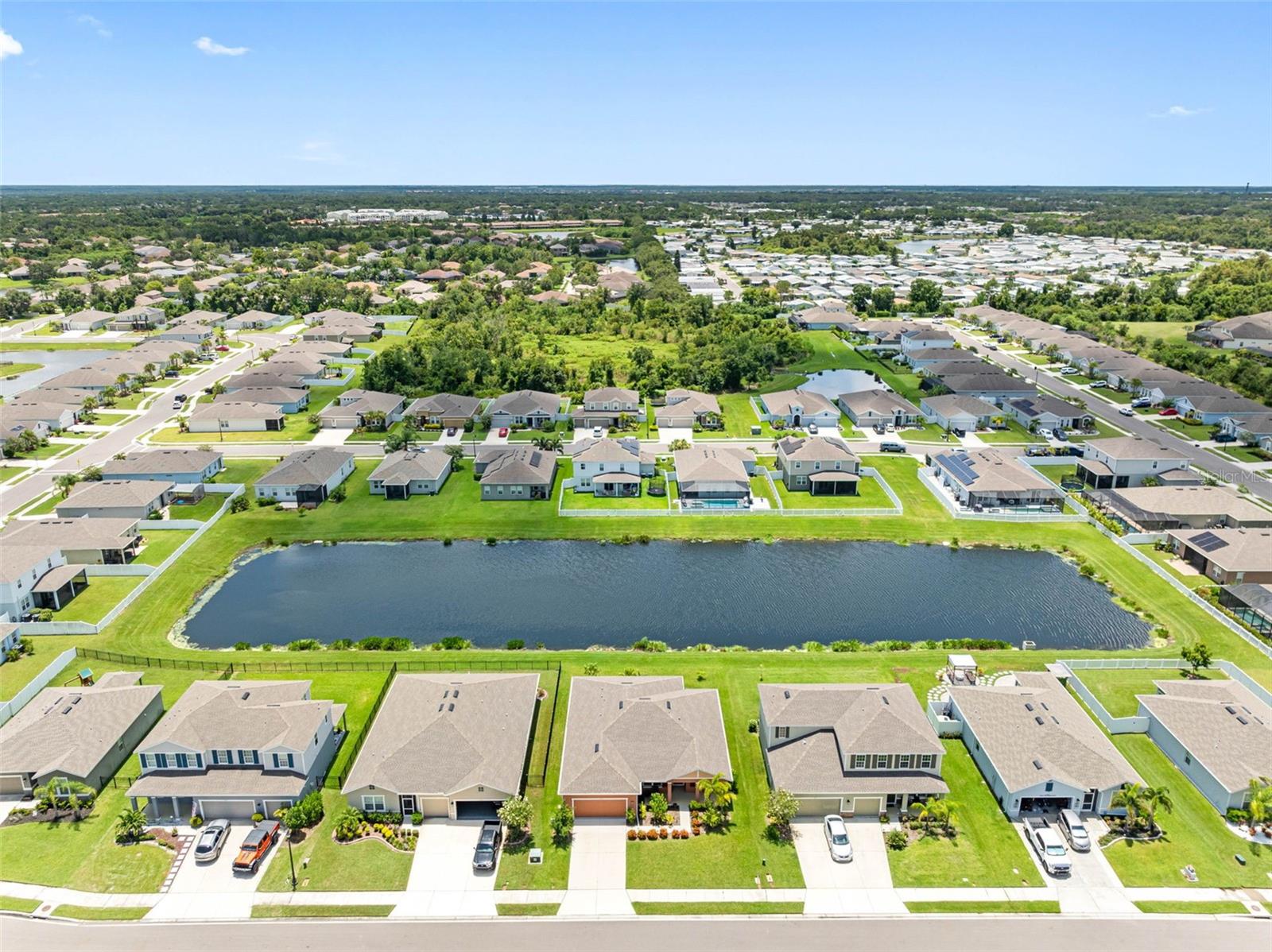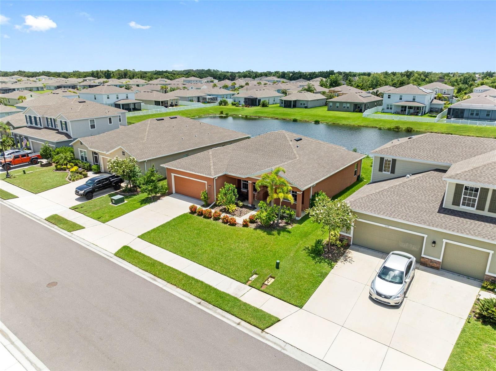 A beauty on a lakefront water lot, enjoy a magnificent water view from your kitchen, family room and the masterbed. This is a must see! A well thought Open Floor Plan features high ceilings, modern kitchen-living room and family combo, a cozy master retreat with an amazing lakeview, enclosed lanai and front porch for you to stay comfy. The home is better than new, was built in 2020, the owners barely lived in it. The home boasts 4 bedrooms 2 bathrooms, 2144 sqft under air, a dream kitchen with island, stone countertops, backsplash and high quality cabinets plus an amazing lakeview through the sliding doors and windows. The master retreat room features double sinks, stone tops, walk-in shower, walk-in close and built-in shelves. Owners upgraded floors, cabinets and added the water treatment system. Located in the Willow Bend Community, community has low HOA, No CDD, many amenities including pool, playground, recreational area and walking trails. Parrish is a fast growing area, everything is near by, Ellenton Premium Outlets just a few miles away, nearby shopping mall, grocery stores, restaurants and beaches. Tampa, St. Pete and Sarasota within a few miles drive. This home will make you say WOW, come claim this your dream home today. Move-In Ready