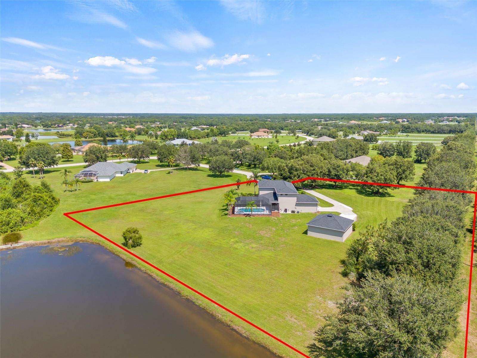 Welcome to the exclusive Foxbrook community, where luxurious living seamlessly blends with privacy and nature. This home is high and dry and did not sustain any damage during the recent storms. Nestled in the heart of Manatee County, Florida, this recently renovated custom built 5-bedroom, 5 bath pool estate sits on 2+ sprawling acres. This home invites you to relax and enjoy the beautiful views and privacy. When entering the home, you will appreciate the soaring ceilings with abundant windows flooding the space with natural light. The newly remodeled kitchen begs to entertain with its spacious quartz countertops, generous new sleek cabinetry and state of the art stainless steel GE appliances. The refrigerator is a Profile Smart French Door Refrigerator with Fingerprint Resistant Stainless Steel. Smart Convection Range. Dishwasher is also fingerprint Resistant. Over the Range Microwave is Stainless Steel with Sensor Cooking The pride of quality workmanship in the renovation is appreciated in every detail. The home showcases meticulous craftsmanship with it's updated lighting, new ceiling fans, and unique mosaic tiling in the primary bath. You'll be amazed at the two primary parlors with private en suites. One of the second floor bedrooms features it's own private spacious balcony. New roof in 2024 with a 10 year transferable warranty. 30 x 14 Pool/spa remodeled/resurfaced and retiled with new heater/chiller. Pool cage is newly re-screened. New updated house vacuum system equipment. Air conditioning has been recently serviced. This grand estate rests at the end of a cul de sac backing to a nature preserve and farm and boasts unlimited space for entertainment, storage, 2 horses, toys and recreation. Additional highlights include impressive amount of parking with two garages, including a coveted detached extra-large 900 Sq Ft workshop. Another attraction to this community is the highly rated schools and community programs. Close to beaches, shopping, dining, entertainment, marinas, golf, live music, hospitals, and more! Don’t miss the chance to own this extraordinary, completely renovated estate in the sought-after Foxbrook community. Schedule your showing today and experience the exceptional lifestyle that awaits you!***THIS HOME DID NOT FLOOD AND IS NOT IN A FLOOD ZONE!
