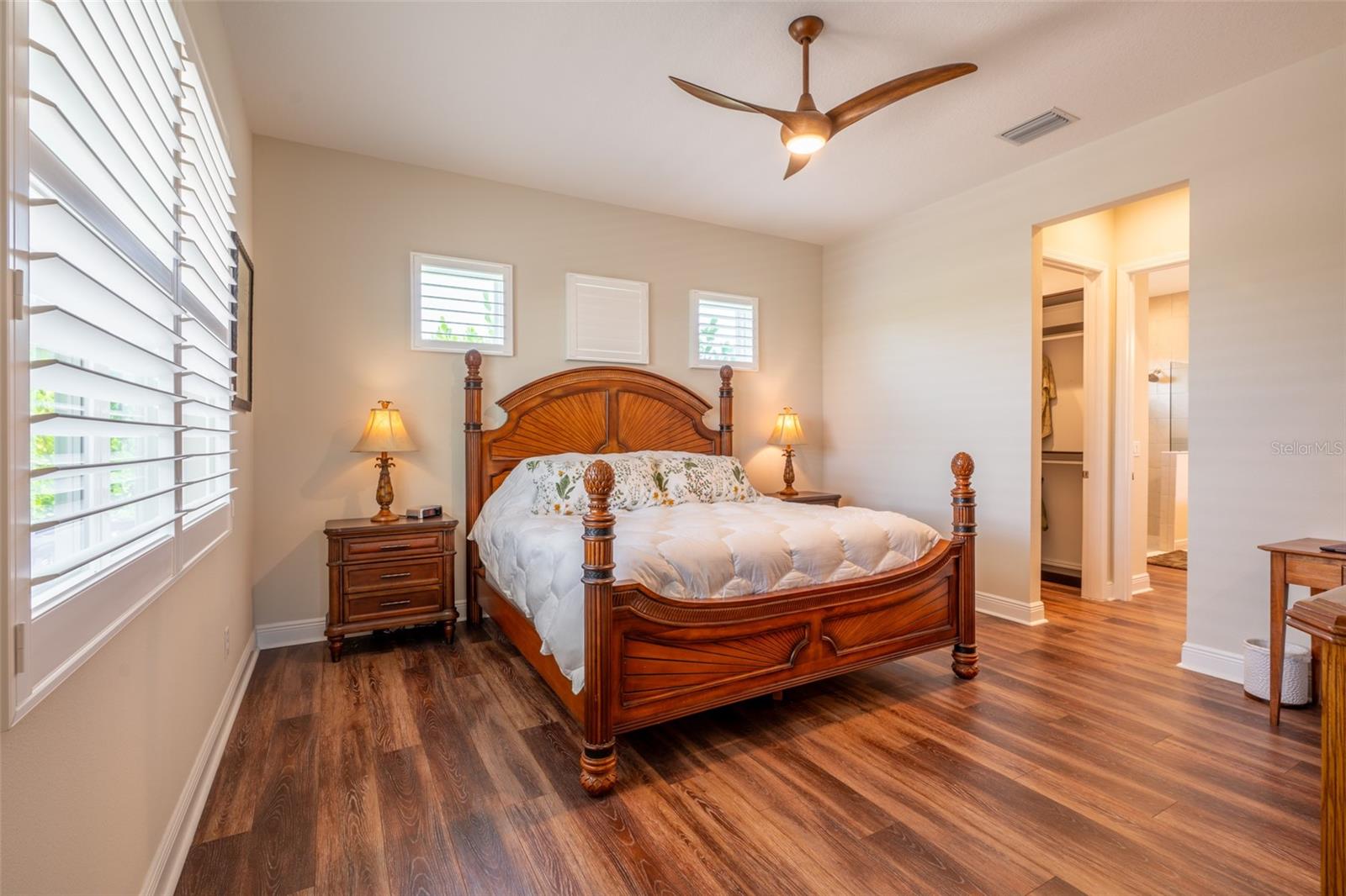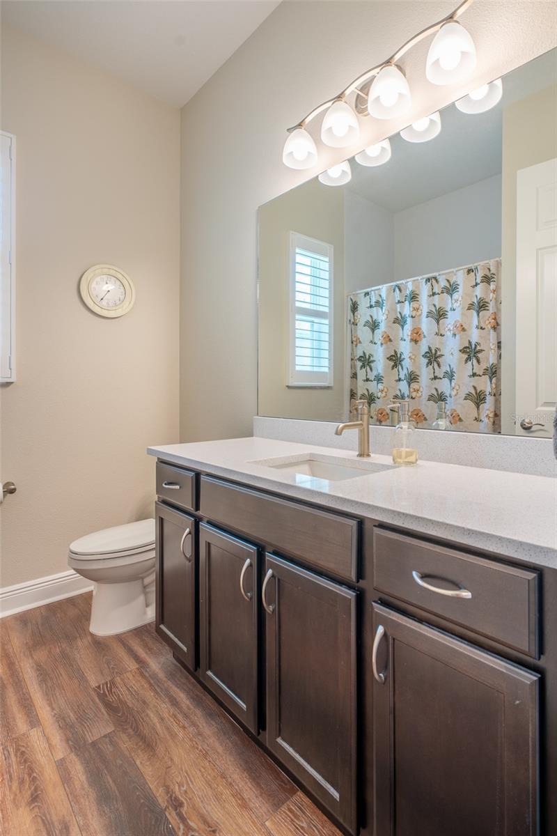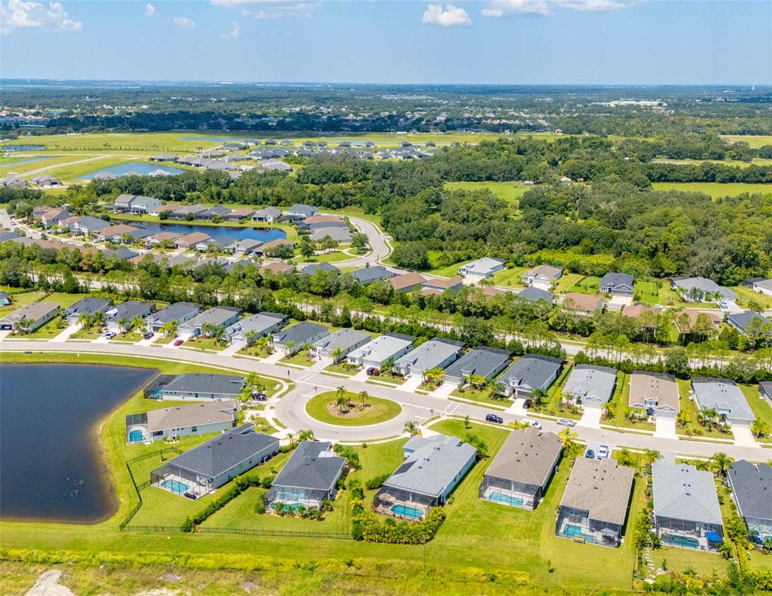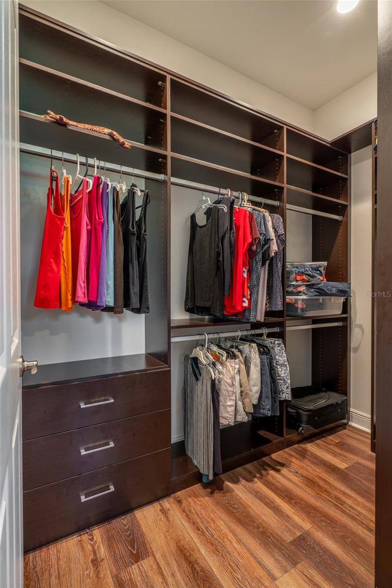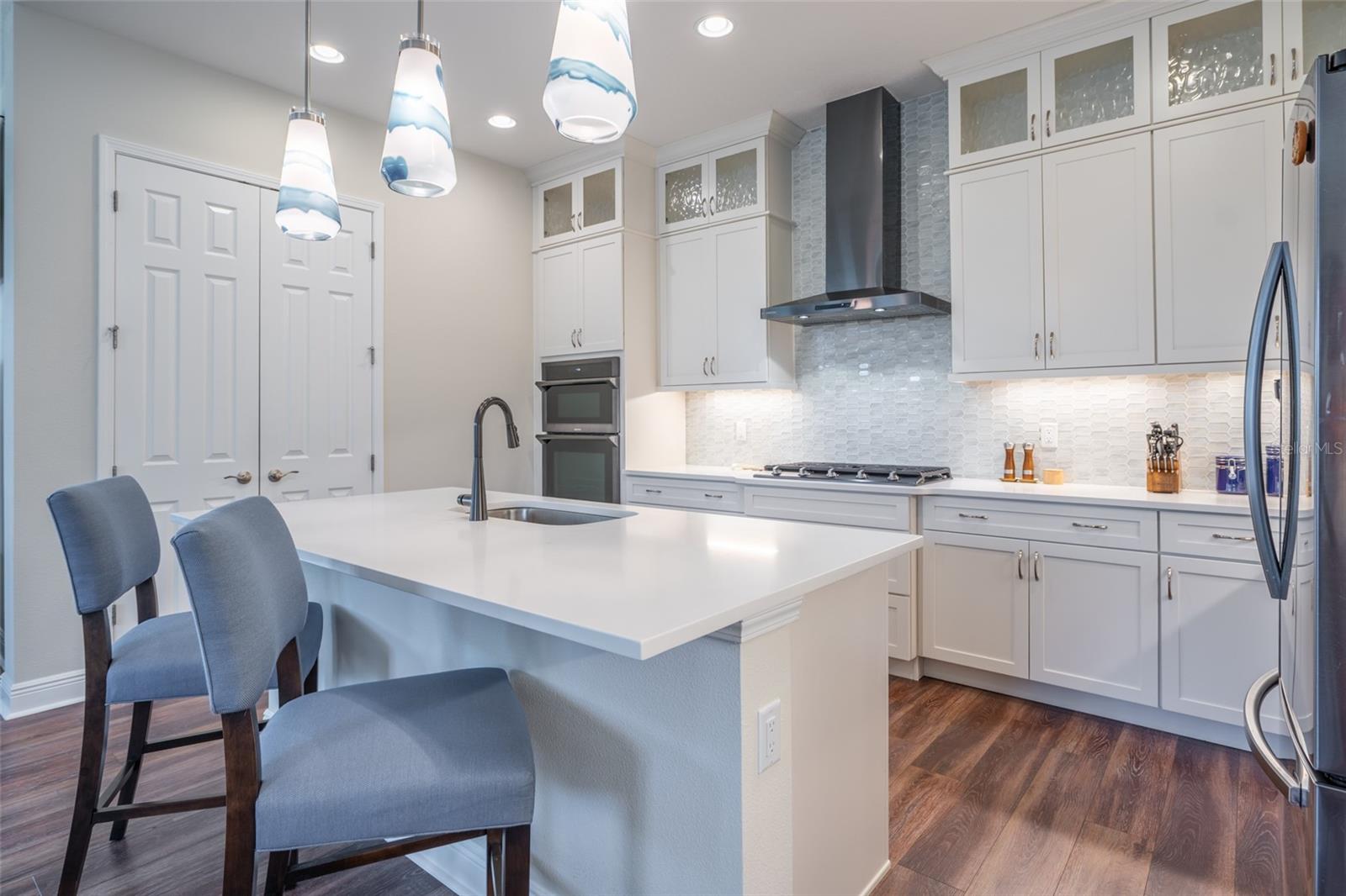 THIS STUNNING POOL HOME HAS IT ALL! Loaded with many upgrades & exquisite attention to detail throughout this home are sure to impress even the pickiest buyers. You will fall in love with the home as you enter and admire the long foyer complete with LUXURY VINYL flooring leading into great room and open kitchen. The high ceilings, open space and triple sliding glass doors allow maximum space value and natural light. The GOURMET KITCHEN offers many upgrades such as Quartz counter tops, Stainless Steel appliances, gas cooktop, custom hood vent, built-in microwave & oven, glass tile backsplash, and full dry bar cabinetry. Breakfast bar with decorative pendant lights add a touch of elegance. Spacious living room has triple sliding glass door with Hunter Douglas motorized Luminette. Walk out to the extended covered lanai and admire the gleaming SALT WATER POOL (heated with solar panels) that provides the perfect setting. No expense was spared on the mature tropical landscaped yard methodically designed to provide maximum amount privacy & relaxation. The Primary bedroom/bath is phenomenal with great lighting, built-in custom closets, luxury double shower with upgraded fixtures, tile extended to ceiling for a finished look & dual sinks. Plantation shutters grace all the windows throughout the home. All light fixtures and ceiling fans are top notch & modern. This home sits on larger lot (.33 acres) with long driveway on cul-de-sac and is beautifully landscaped for exceptional curb appeal. Parrish is a growing area offering excellent schools, shopping & not far from some of the nicest beaches in FL. Community offers resort style pool, playground, dog park & basketball courts. THIS GEM IS A MUST SEE AND TRULY MOVE-IN READY!! **NO FLOOD INSURANCE REQUIRED**