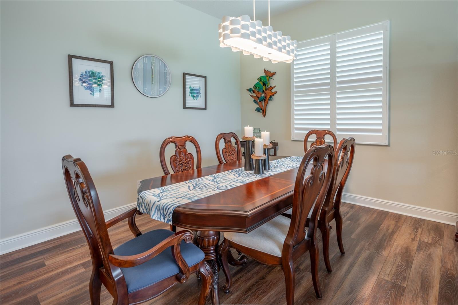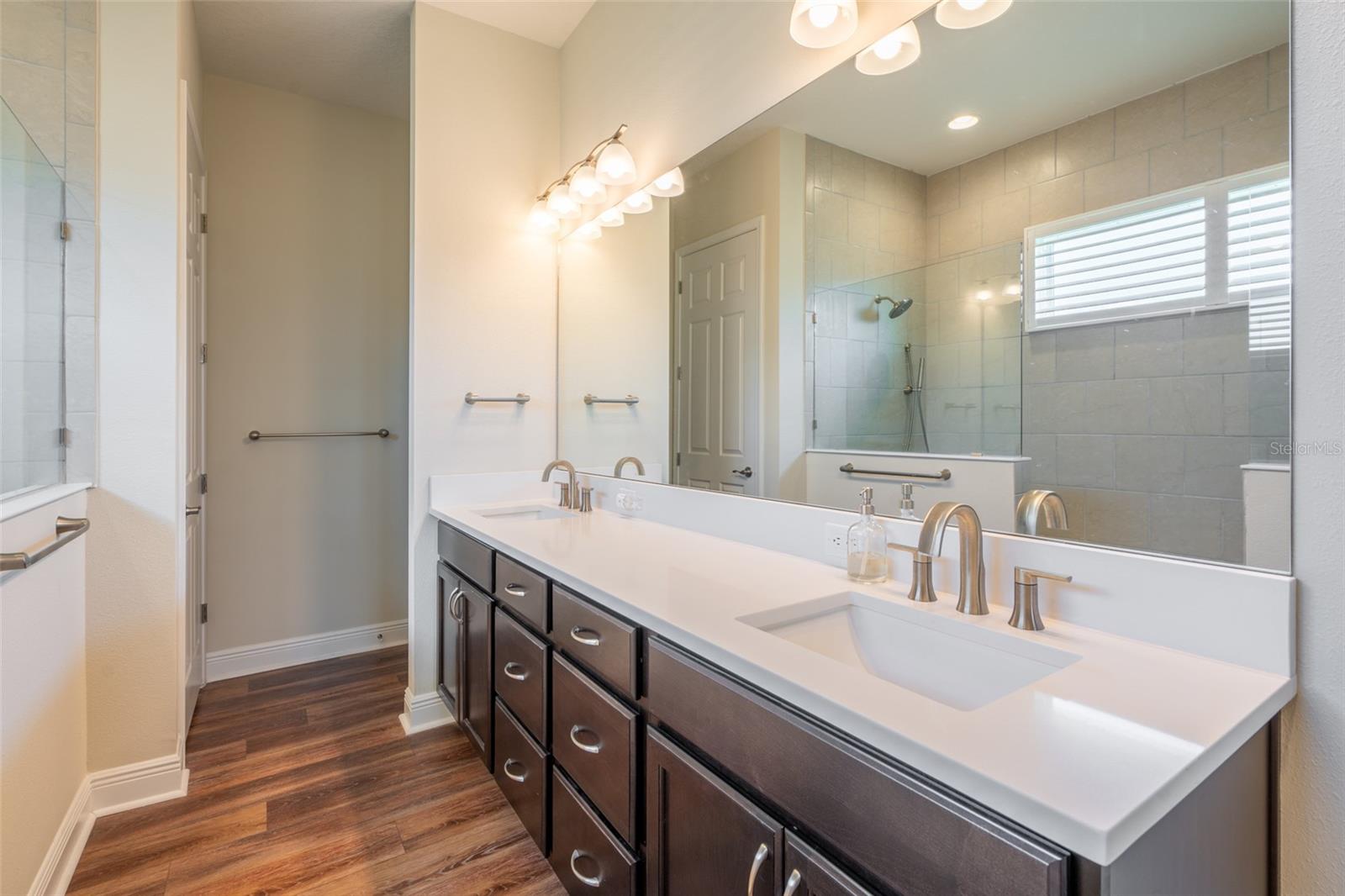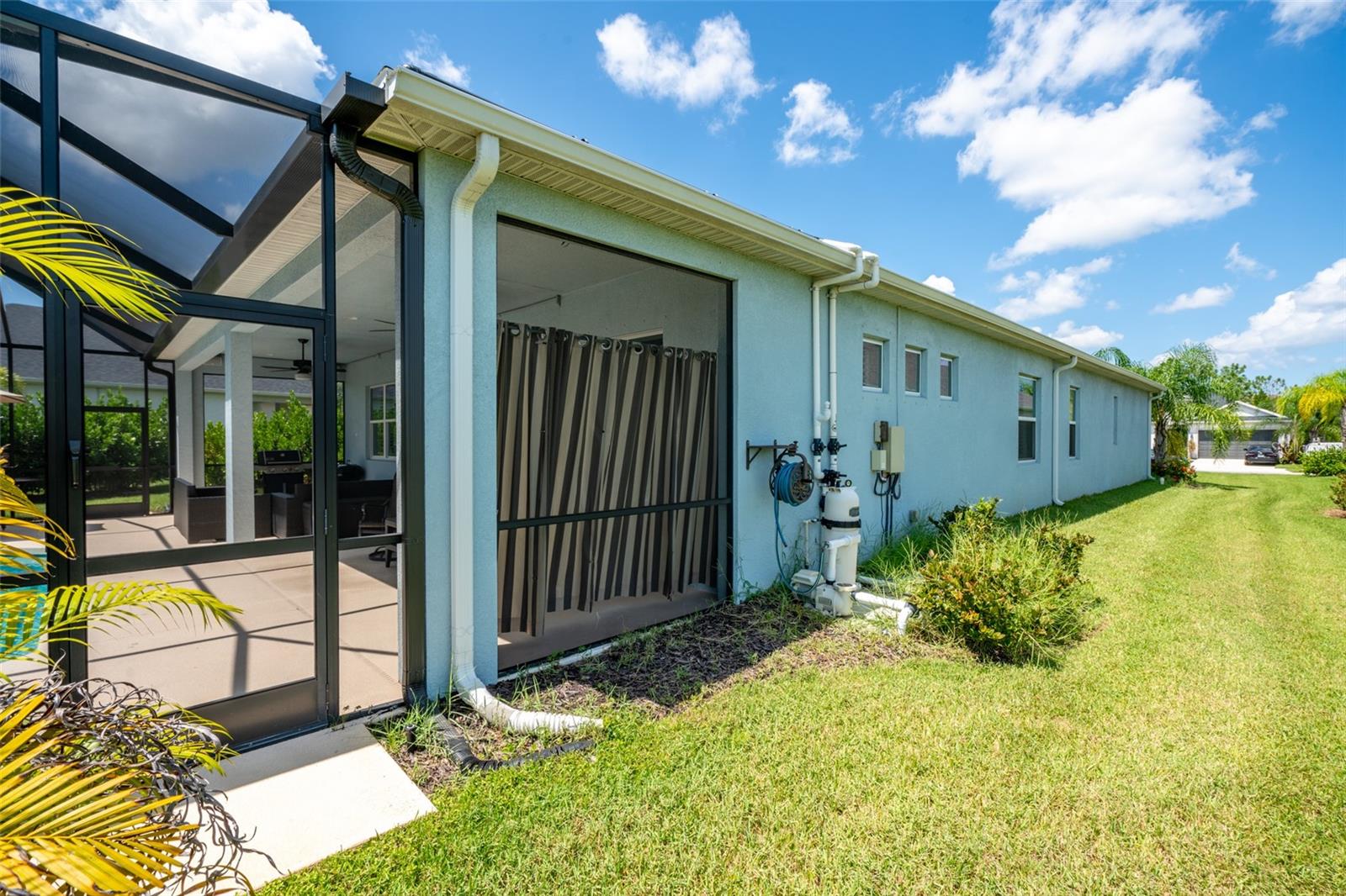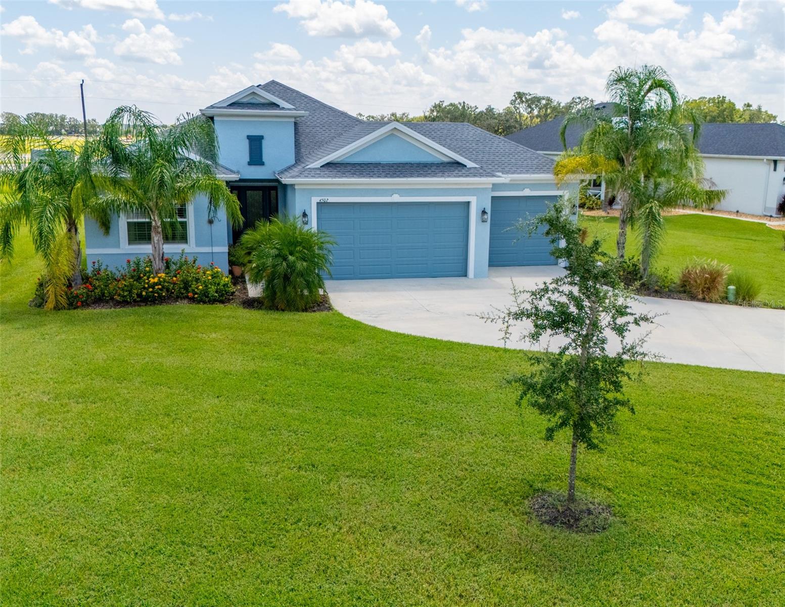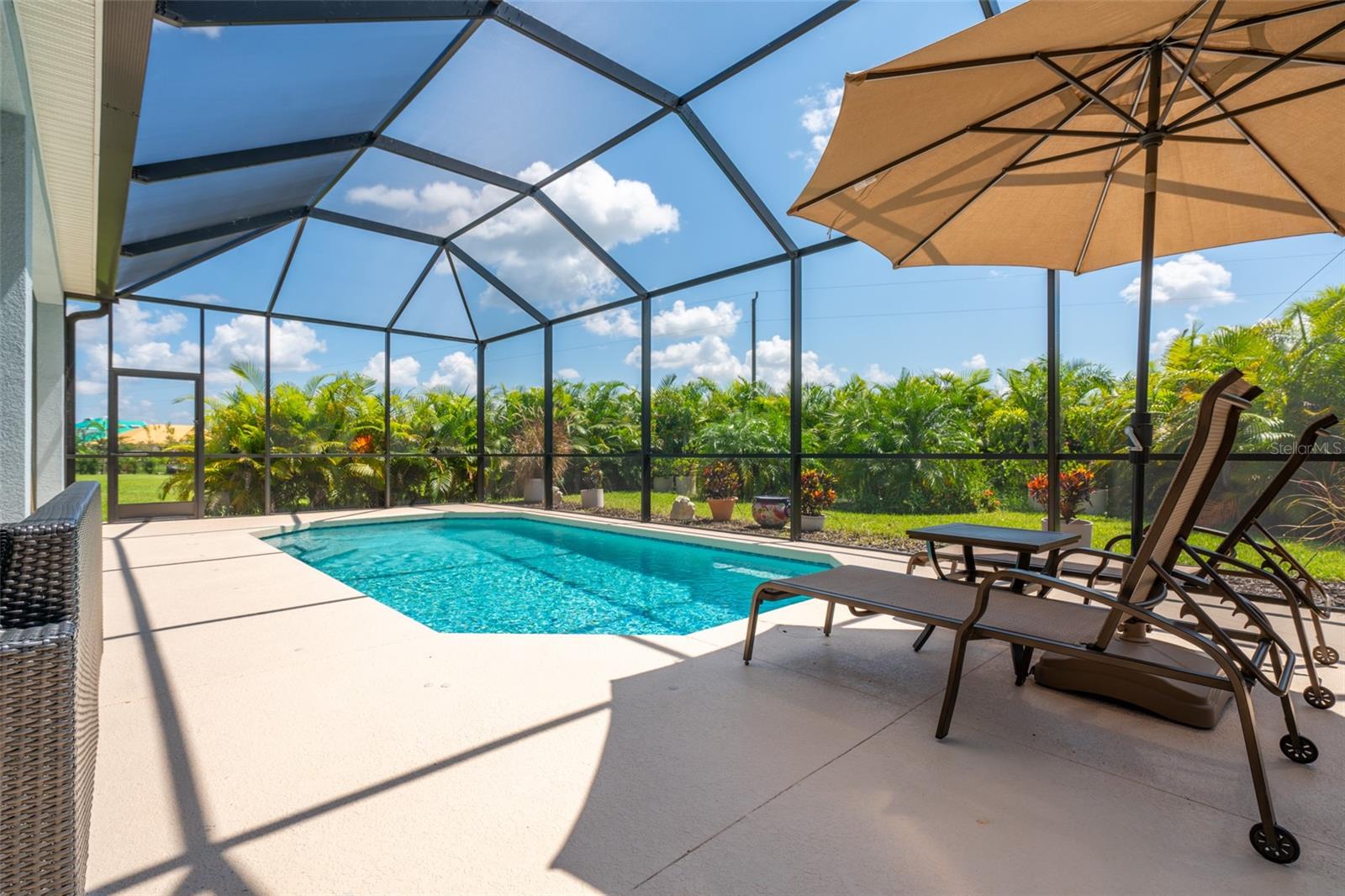 THIS STUNNING POOL HOME HAS IT ALL! Loaded with many upgrades & exquisite attention to detail throughout this home are sure to impress even the pickiest buyers. You will fall in love with the home as you enter and admire the long foyer complete with LUXURY VINYL flooring leading into great room and open kitchen. The high ceilings, open space and triple sliding glass doors allow maximum space value and natural light. The GOURMET KITCHEN offers many upgrades such as Quartz counter tops, Stainless Steel appliances, gas cooktop, custom hood vent, built-in microwave & oven, glass tile backsplash, and full dry bar cabinetry. Breakfast bar with decorative pendant lights add a touch of elegance. Spacious living room has triple sliding glass door with Hunter Douglas motorized Luminette. Walk out to the extended covered lanai and admire the gleaming SALT WATER POOL (heated with solar panels) that provides the perfect setting. No expense was spared on the mature tropical landscaped yard methodically designed to provide maximum amount privacy & relaxation. The Primary bedroom/bath is phenomenal with great lighting, built-in custom closets, luxury double shower with upgraded fixtures, tile extended to ceiling for a finished look & dual sinks. Plantation shutters grace all the windows throughout the home. All light fixtures and ceiling fans are top notch & modern. This home sits on larger lot (.33 acres) with long driveway on cul-de-sac and is beautifully landscaped for exceptional curb appeal. Parrish is a growing area offering excellent schools, shopping & not far from some of the nicest beaches in FL. Community offers resort style pool, playground, dog park & basketball courts. THIS GEM IS A MUST SEE AND TRULY MOVE-IN READY!! **NO FLOOD INSURANCE REQUIRED**