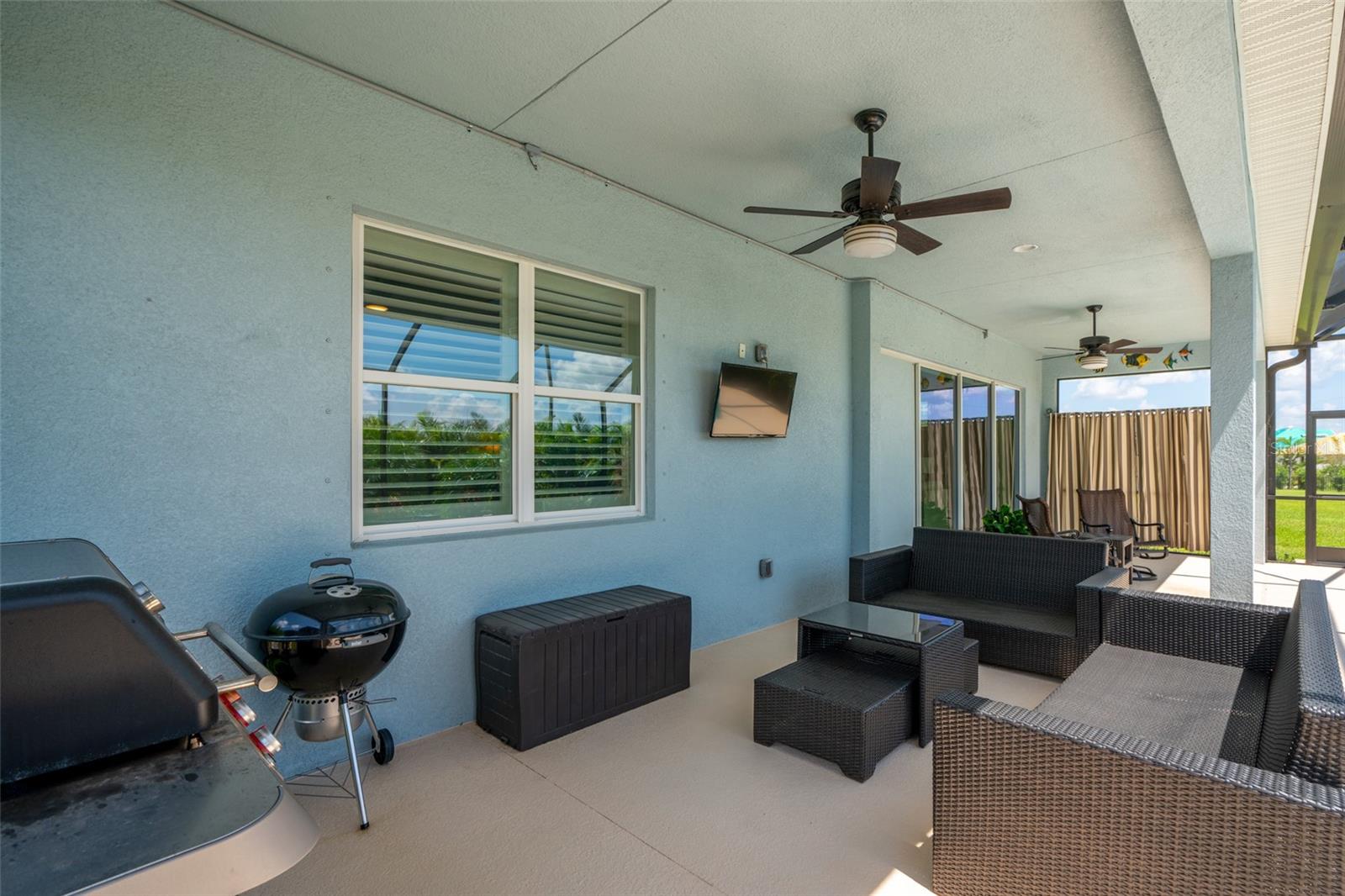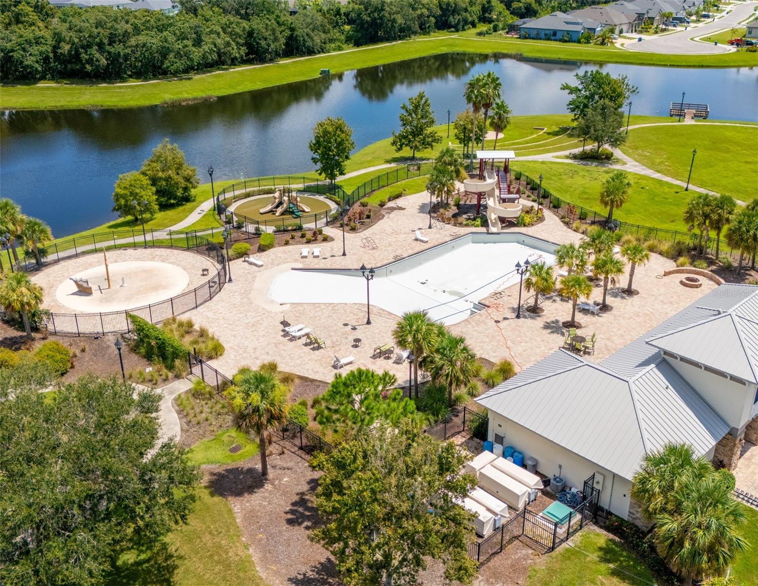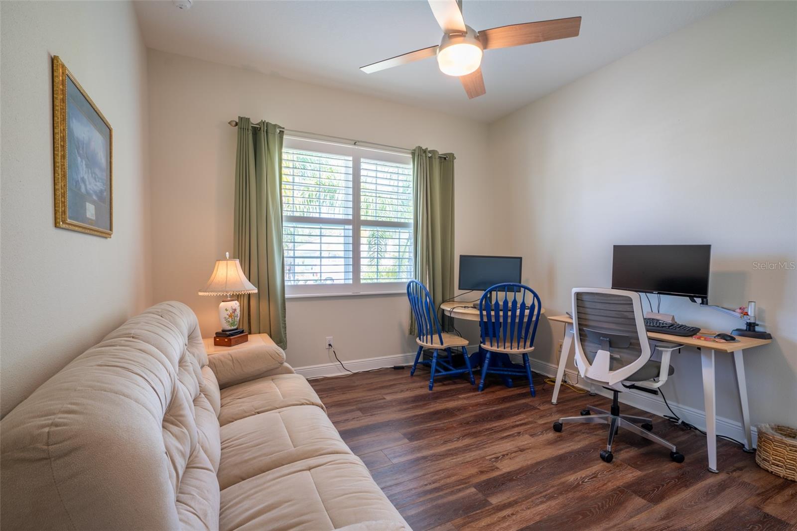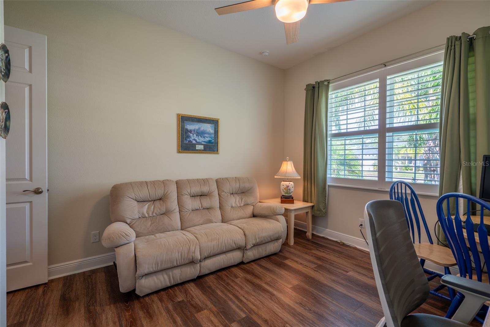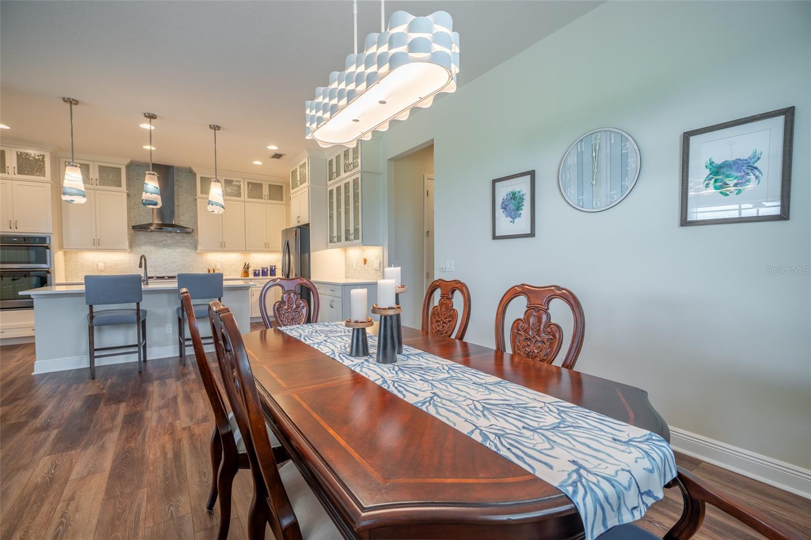 THIS STUNNING POOL HOME HAS IT ALL! Loaded with many upgrades & exquisite attention to detail throughout this home are sure to impress even the pickiest buyers. You will fall in love with the home as you enter and admire the long foyer complete with LUXURY VINYL flooring leading into great room and open kitchen. The high ceilings, open space and triple sliding glass doors allow maximum space value and natural light. The GOURMET KITCHEN offers many upgrades such as Quartz counter tops, Stainless Steel appliances, gas cooktop, custom hood vent, built-in microwave & oven, glass tile backsplash, and full dry bar cabinetry. Breakfast bar with decorative pendant lights add a touch of elegance. Spacious living room has triple sliding glass door with Hunter Douglas motorized Luminette. Walk out to the extended covered lanai and admire the gleaming SALT WATER POOL (heated with solar panels) that provides the perfect setting. No expense was spared on the mature tropical landscaped yard methodically designed to provide maximum amount privacy & relaxation. The Primary bedroom/bath is phenomenal with great lighting, built-in custom closets, luxury double shower with upgraded fixtures, tile extended to ceiling for a finished look & dual sinks. Plantation shutters grace all the windows throughout the home. All light fixtures and ceiling fans are top notch & modern. This home sits on larger lot (.33 acres) with long driveway on cul-de-sac and is beautifully landscaped for exceptional curb appeal. Parrish is a growing area offering excellent schools, shopping & not far from some of the nicest beaches in FL. Community offers resort style pool, playground, dog park & basketball courts. THIS GEM IS A MUST SEE AND TRULY MOVE-IN READY!! **NO FLOOD INSURANCE REQUIRED**