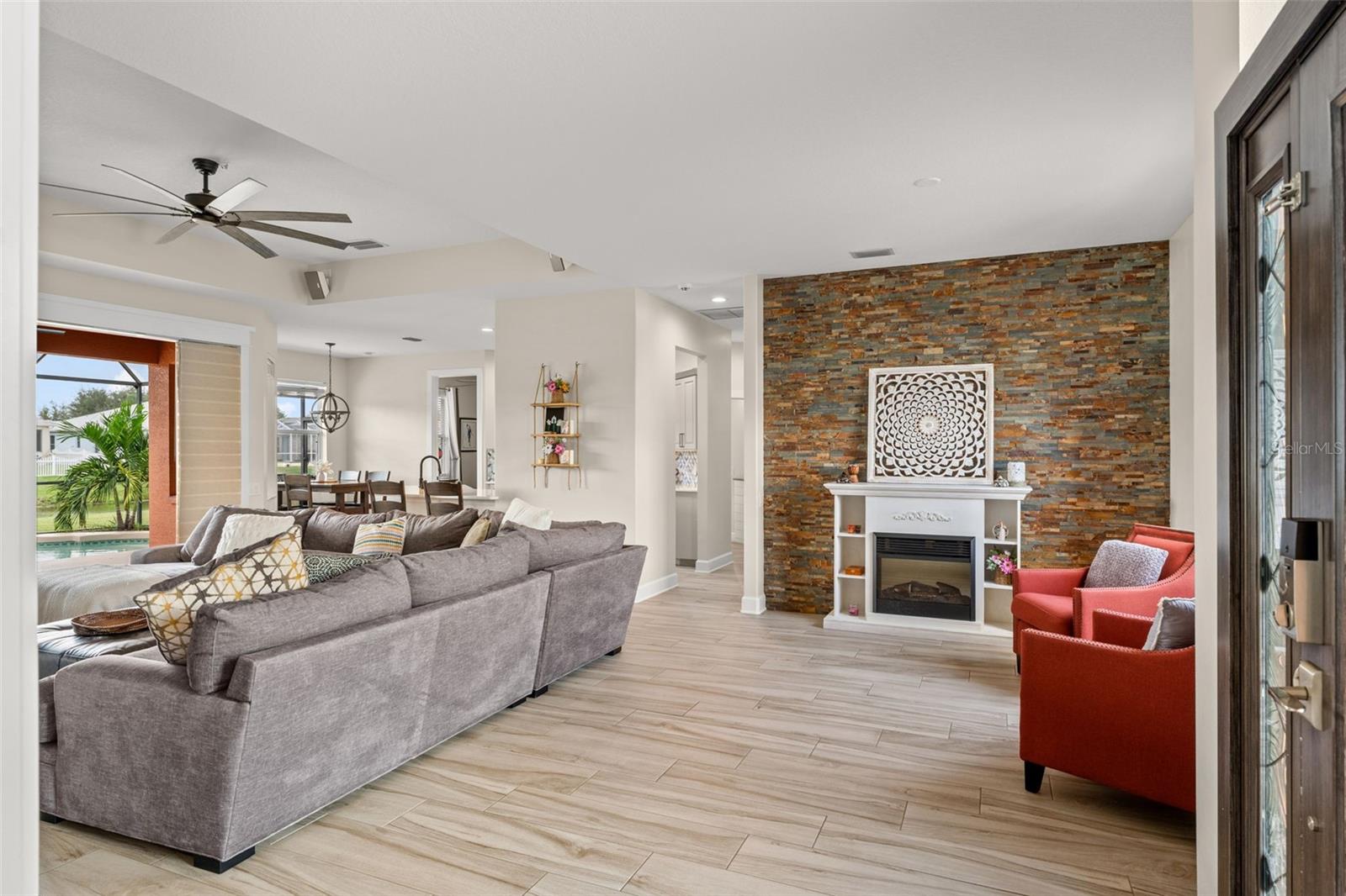 Welcome home!! Introducing a stunning new home on the market in the highly sought-after community, Chelsea Oaks.Boasting three bedrooms, two full bathrooms, and additional office space - this home has been completely transformed and is ready to welcome its next family. Located in a gated community, the property sits on a spacious lot with a picturesque pond view, tucked away in a quiet cul-de-sac! From the moment you step inside the home the attention to detail is evident. Featuring elegant porcelain wood plank tile flooring throughout, complemented by recessed lighting. The newly renovated kitchen is a chef’s dream, featuring high-end stainless-steel appliances, a spacious island with a built-in charging port, under-cabinet lighting, luxurious quartz countertop and under mount granite sink kitchen. The master bedroom offers generous dimensions, allowing for ample space for relaxation and tranquility. Step into your ensuite bathroom, where you'll find a large walk-in shower equipped with rain shower head and stunning tile work, creating a spa-like atmosphere for your daily routines. The thoughtfully designed space includes dual vanities that provide both functionality and style. You will enjoy countless evening outside enjoying your pond view, sparkling pool, and cozy sitting area, this backyard is not just a retreat; it’s a place where memories are made, and relaxation is guaranteed. Embrace the outdoor lifestyle you've always dreamed of! Added upgrades to the home include:A/C replaced in February 2018, ensuring comfort ,including a tankless water heater from 2020. Roof was also replaced in 2021! Parrish is known for being a family-friendly area with an excellent school district. The home also offers quick access to major highways, placing Tampa and Sarasota less than an hour away. A new shopping center is being developed nearby, making this home even more appealing. With low interest rates, this exceptional property won’t stay on the market for long!