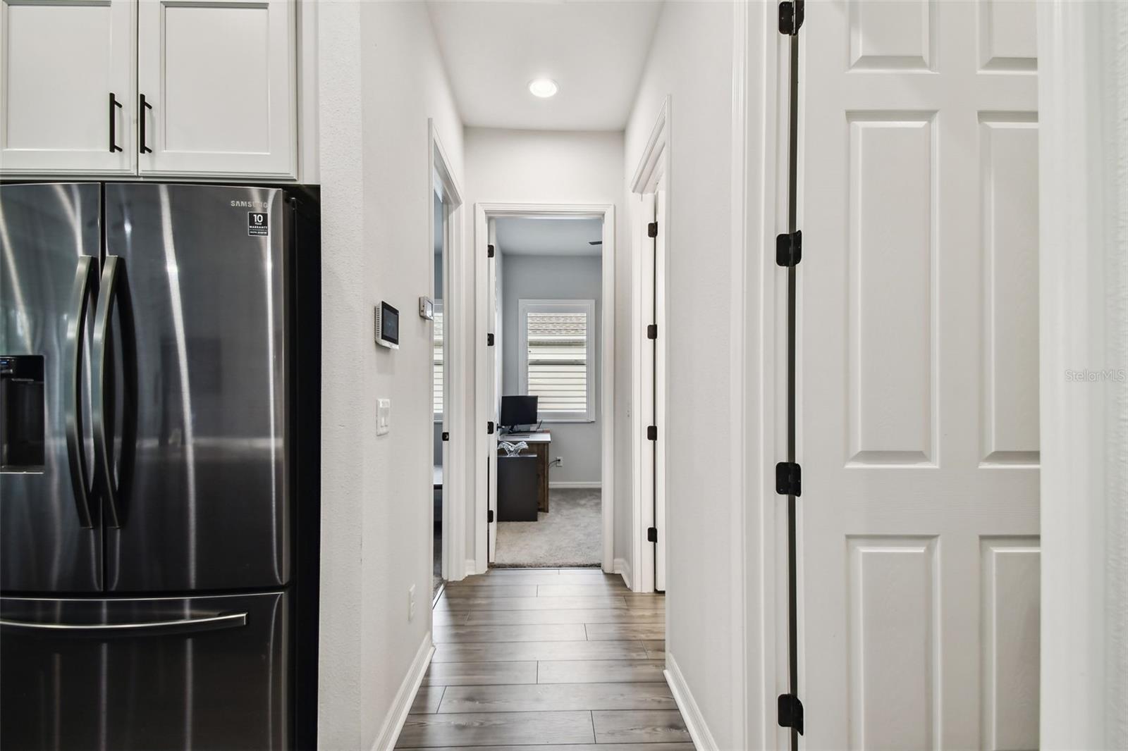 Step into this beautifully maintained, FURNISHED home. Featuring 10-foot ceilings and premium finishes throughout, it has everything! The kitchen is equipped with high end Samsung appliances, including a gas stove. Enjoy filtered drinking water with a Culligan water softener system that adds a touch of luxury. The open-concept living area seamlessly extends to a screened-in lanai, with views of the spacious fenced backyard. Recently refreshed landscaping enhances the home’s curb appeal. Owner to leave behind security system with cameras. This property is a must-see!