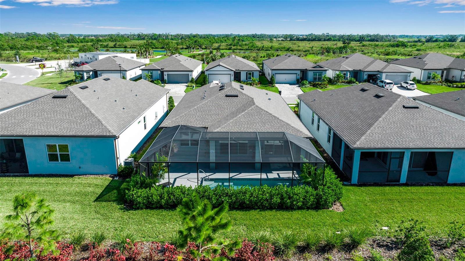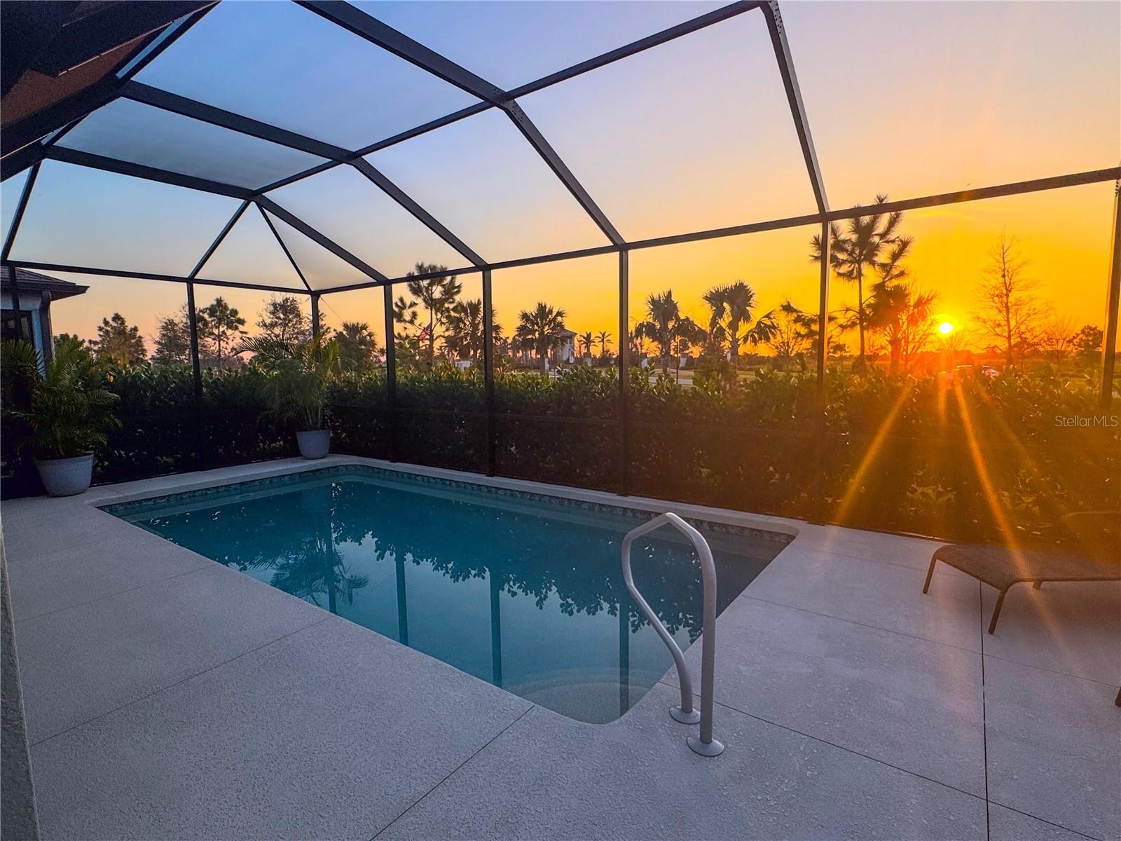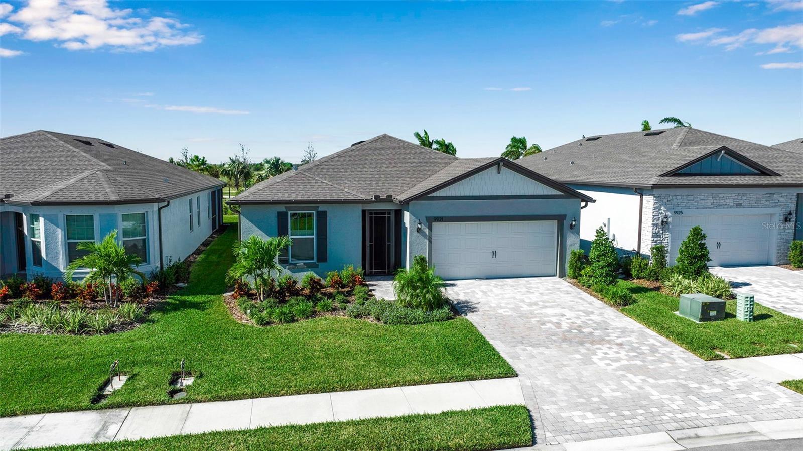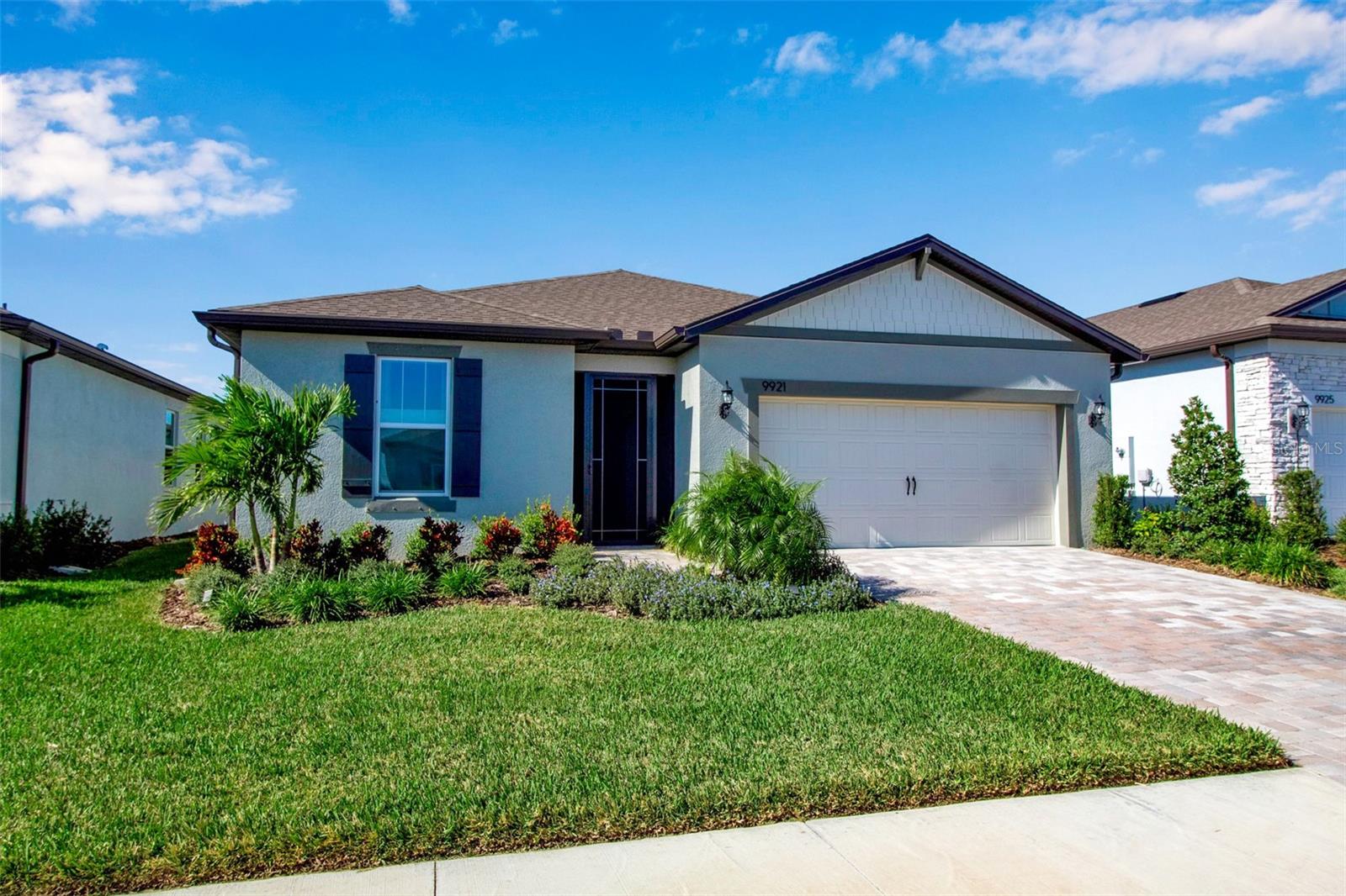 HIGHLY MOTIVATED SELLERS HAVE ASKED ME TO FIND THE NEW OWNERS! FURNITURE, ALMOST NEW GOLF CART, GAS GENERATOR AND GRILL ARE NEGOTIABLE! The Prosperity floorplan is A beautifully designed TWO BEDROOM PLUS DEN home, featuring a heated SALT WATER HEATED pool and western orientation, is ready for its new owners and offers the perfect blend of style, comfort, and convenience. Best of all, it can close quickly! Key Features: No Carpet Anywhere: Luxury plank flooring flows seamlessly throughout the home, creating a modern and easy-to-maintain living space. Abundant Natural Light: 8-foot sliders in the café and gathering room fill the home with light and frame breathtaking sunset views. Outdoor Oasis: The lanai, complete with retractable storm screens, overlooks a heated pool surrounded by lush tropical landscaping, creating a private retreat for relaxation and entertaining. Upgraded Details: Grout has been sealed, ceiling fans are installed throughout, and all appliances, including the washer and dryer, convey with the home. Energy Efficiency: The insulated garage stays cool year-round, perfect for hobby enthusiasts, and includes a gas generator hookup (generator available for separate purchase). Community Perks: Located on one of the friendliest streets in Del Webb BayView, residents enjoy regular gatherings and an active, social lifestyle. The community offers resort-style amenities, including a full-service restaurant, fitness center, pickleball, and more. Why Choose This Home? As a pristine resale, all warranty work is complete, and closing costs are significantly lower than buying new. This home is your opportunity to experience the quintessential Florida lifestyle with ease and affordability. Don’t miss out on this spectacular pool home—schedule your showing today!