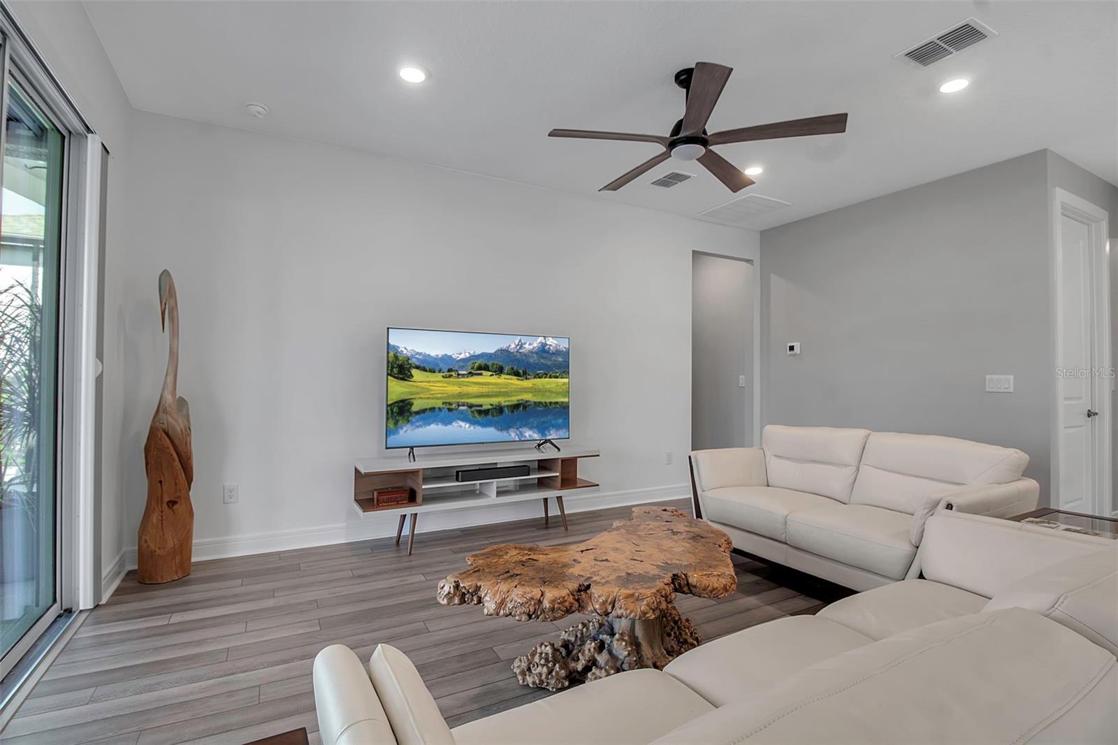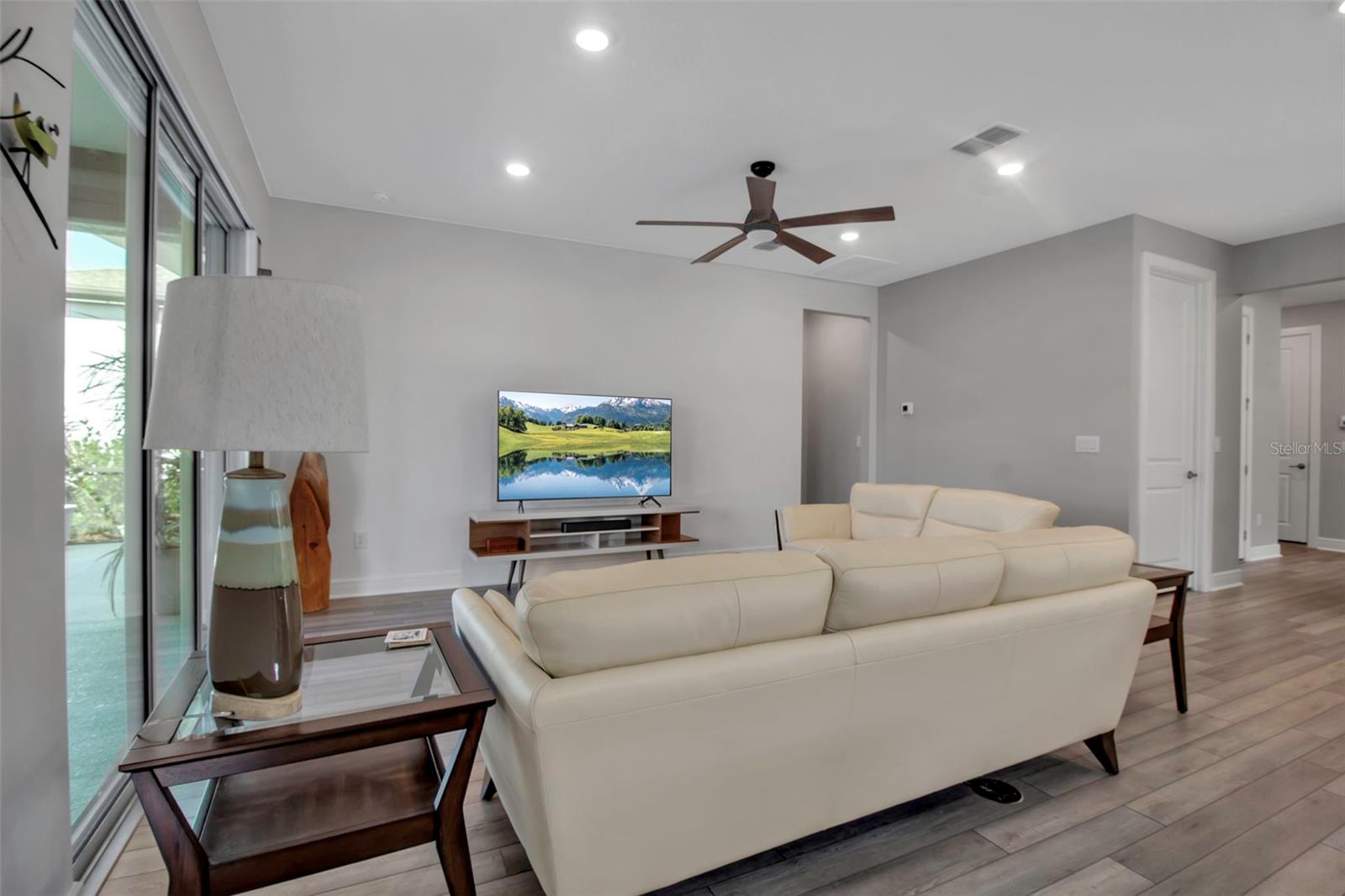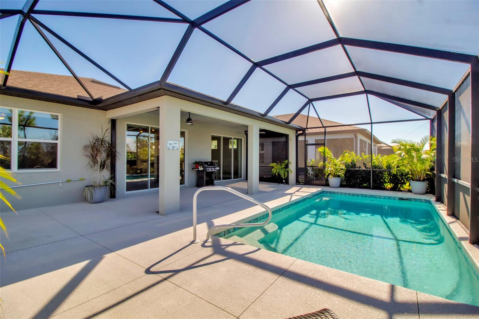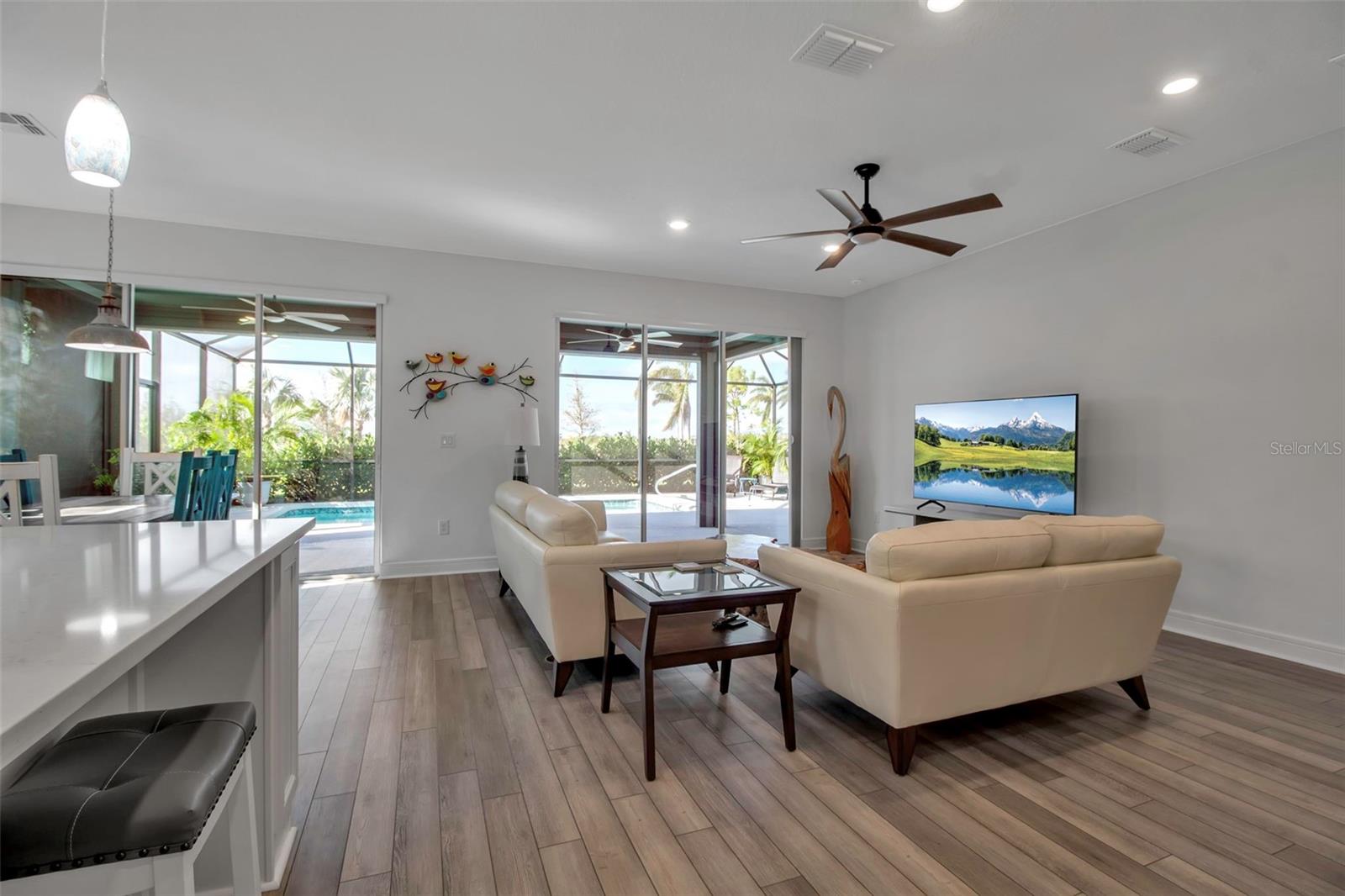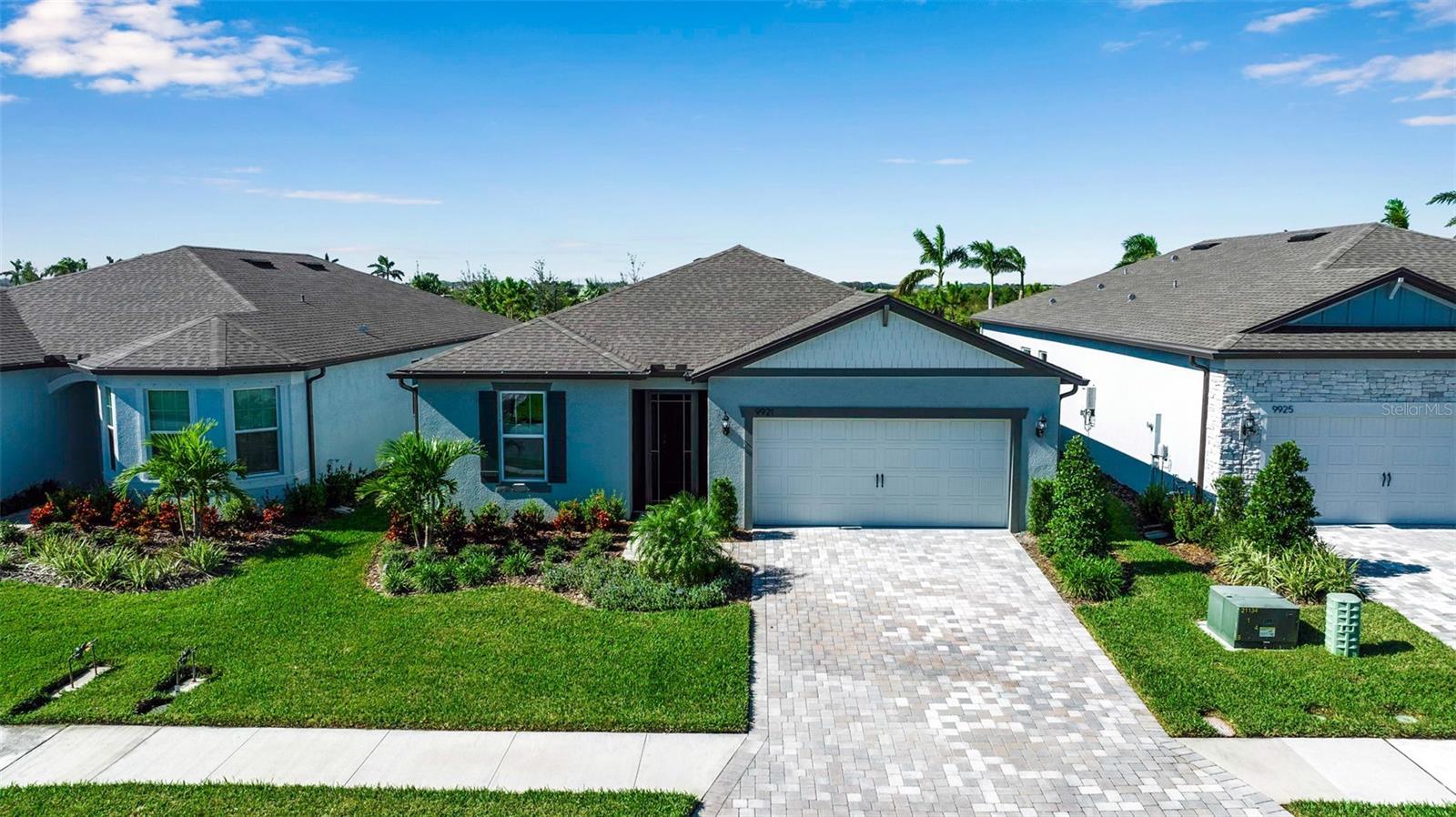 HIGHLY MOTIVATED SELLERS HAVE ASKED ME TO FIND THE NEW OWNERS! FURNITURE, ALMOST NEW GOLF CART, GAS GENERATOR AND GRILL ARE NEGOTIABLE! The Prosperity floorplan is A beautifully designed TWO BEDROOM PLUS DEN home, featuring a heated SALT WATER HEATED pool and western orientation, is ready for its new owners and offers the perfect blend of style, comfort, and convenience. Best of all, it can close quickly! Key Features: No Carpet Anywhere: Luxury plank flooring flows seamlessly throughout the home, creating a modern and easy-to-maintain living space. Abundant Natural Light: 8-foot sliders in the café and gathering room fill the home with light and frame breathtaking sunset views. Outdoor Oasis: The lanai, complete with retractable storm screens, overlooks a heated pool surrounded by lush tropical landscaping, creating a private retreat for relaxation and entertaining. Upgraded Details: Grout has been sealed, ceiling fans are installed throughout, and all appliances, including the washer and dryer, convey with the home. Energy Efficiency: The insulated garage stays cool year-round, perfect for hobby enthusiasts, and includes a gas generator hookup (generator available for separate purchase). Community Perks: Located on one of the friendliest streets in Del Webb BayView, residents enjoy regular gatherings and an active, social lifestyle. The community offers resort-style amenities, including a full-service restaurant, fitness center, pickleball, and more. Why Choose This Home? As a pristine resale, all warranty work is complete, and closing costs are significantly lower than buying new. This home is your opportunity to experience the quintessential Florida lifestyle with ease and affordability. Don’t miss out on this spectacular pool home—schedule your showing today!