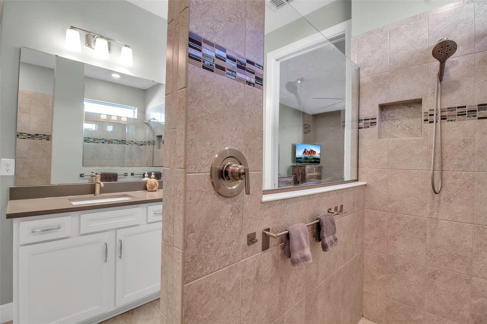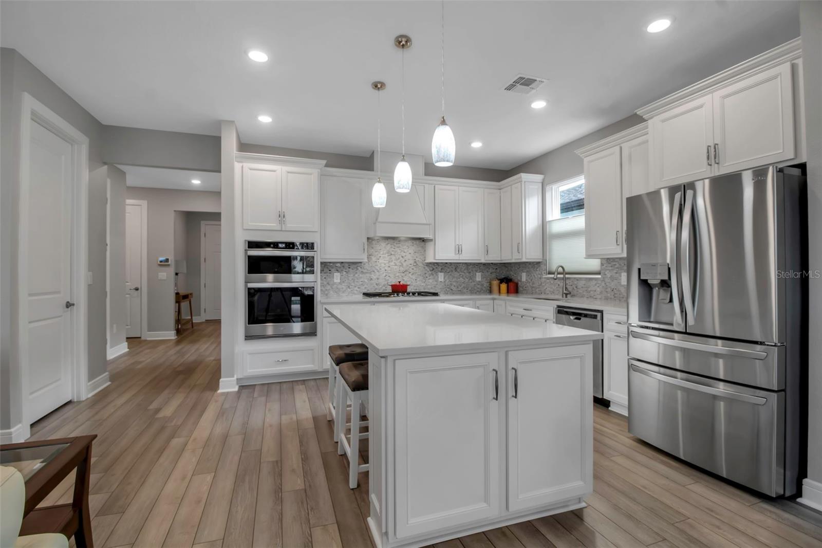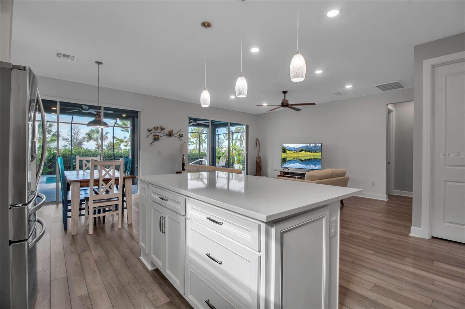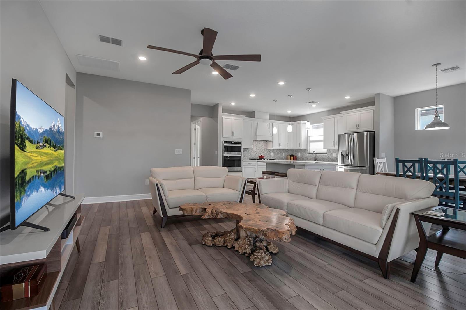 HIGHLY MOTIVATED SELLERS HAVE ASKED ME TO FIND THE NEW OWNERS! FURNITURE, ALMOST NEW GOLF CART, GAS GENERATOR AND GRILL ARE NEGOTIABLE! The Prosperity floorplan is A beautifully designed TWO BEDROOM PLUS DEN home, featuring a heated SALT WATER HEATED pool and western orientation, is ready for its new owners and offers the perfect blend of style, comfort, and convenience. Best of all, it can close quickly! Key Features: No Carpet Anywhere: Luxury plank flooring flows seamlessly throughout the home, creating a modern and easy-to-maintain living space. Abundant Natural Light: 8-foot sliders in the café and gathering room fill the home with light and frame breathtaking sunset views. Outdoor Oasis: The lanai, complete with retractable storm screens, overlooks a heated pool surrounded by lush tropical landscaping, creating a private retreat for relaxation and entertaining. Upgraded Details: Grout has been sealed, ceiling fans are installed throughout, and all appliances, including the washer and dryer, convey with the home. Energy Efficiency: The insulated garage stays cool year-round, perfect for hobby enthusiasts, and includes a gas generator hookup (generator available for separate purchase). Community Perks: Located on one of the friendliest streets in Del Webb BayView, residents enjoy regular gatherings and an active, social lifestyle. The community offers resort-style amenities, including a full-service restaurant, fitness center, pickleball, and more. Why Choose This Home? As a pristine resale, all warranty work is complete, and closing costs are significantly lower than buying new. This home is your opportunity to experience the quintessential Florida lifestyle with ease and affordability. Don’t miss out on this spectacular pool home—schedule your showing today!