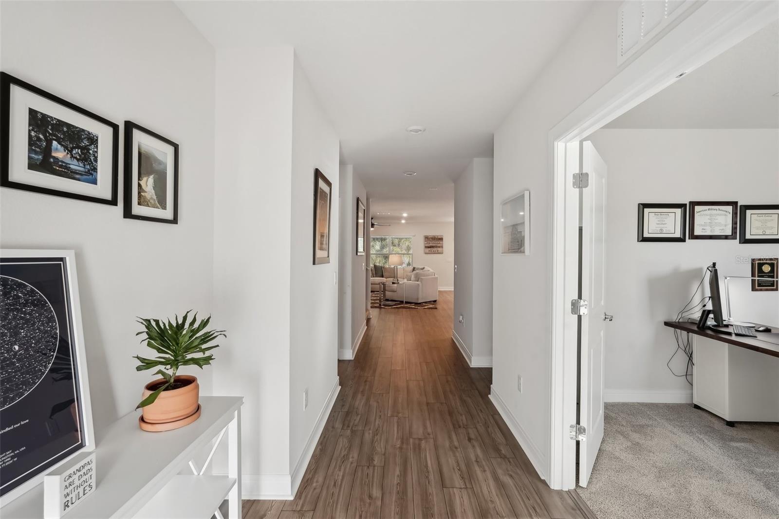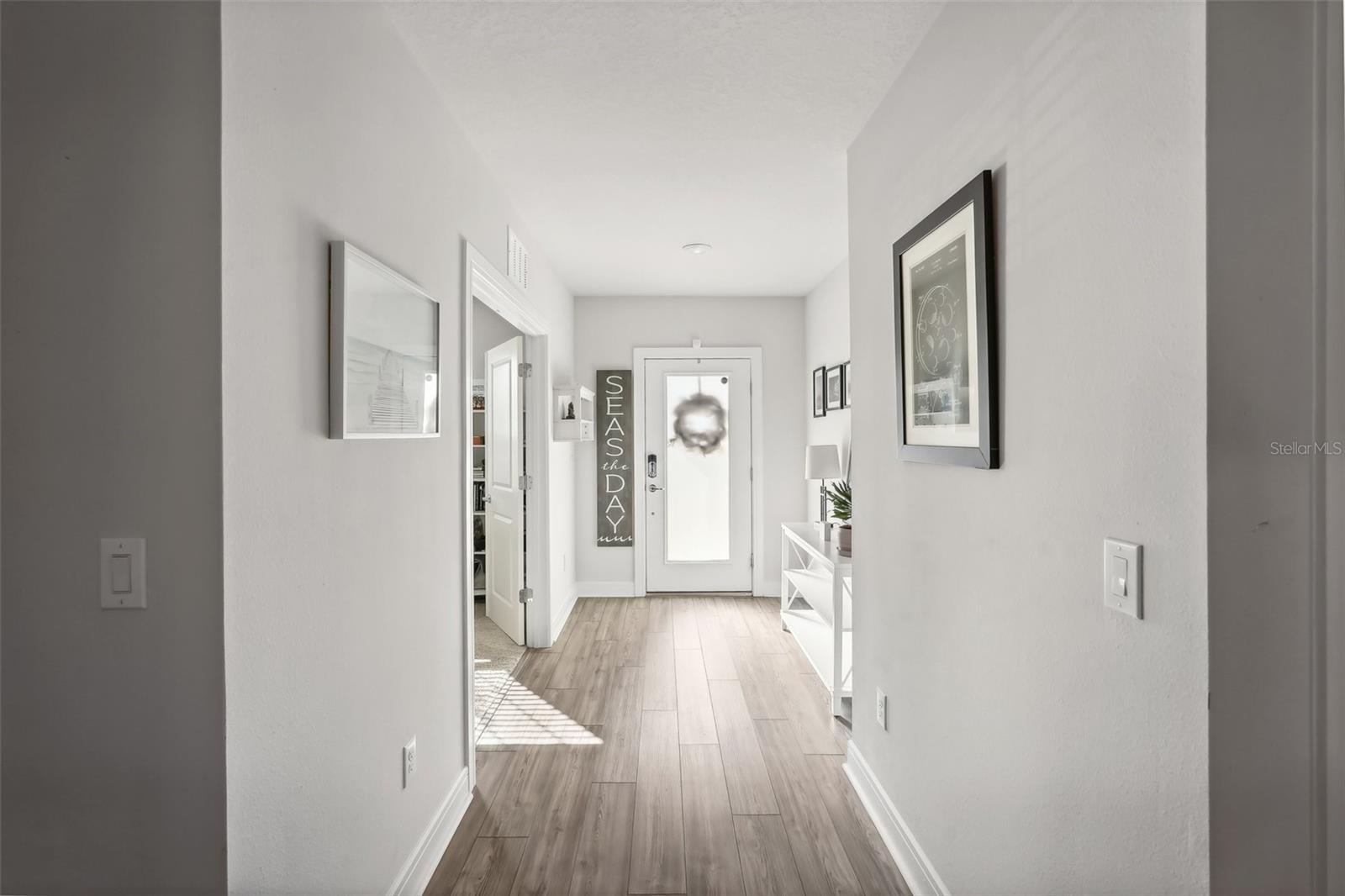 Not only is this home absolutely immaculate, but it also comes with an ASSUMABLE VA LOAN at 3.25%. The current monthly payment is ~$2800.00 including taxes, Principal & Interest and Homeowners insurance. You do not need to be a Veteran to qualify for this assumption! This stunning home features the sought-after Wakefield floor plan, designed to provide all the space and modern amenities you've been looking for. The designer kitchen boasts a center island with a large single-bowl sink, sleek stone gray cabinets, quartz countertops, a 3"x6" subway tile backsplash, and stainless steel appliances. Matching stone gray cabinets and quartz countertops continue into the bathrooms, which are equipped with comfort-height commodes, dual sinks, and a walk-in shower in the primary bath. The Primary Suite is conveniently located on the main level, ensuring privacy and ease of access. Enjoy stylish and durable LVP flooring in the main living areas, tile in the bathrooms and laundry room, and plush carpet in the bedrooms. This home makes exceptional use of space with a downstairs office, an oversized loft, walk-in closets in all bedrooms, a convenient laundry room, and storage under the stairs. Step outside to a beautifully upgraded extended paver patio overlooking serene wooded preserve views. Additional highlights include window blinds throughout, a Smart Home system with Wi-Fi control for the sprinkler system, garage door, and thermostat, as well as a Ring security camera system for added peace of mind. This home perfectly combines functionality, style, and modern living. Seller is willing to sell this home FURNISHED for the right offer. Reach out for more details.
